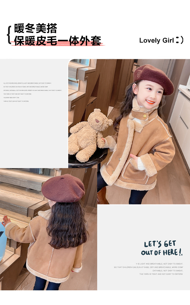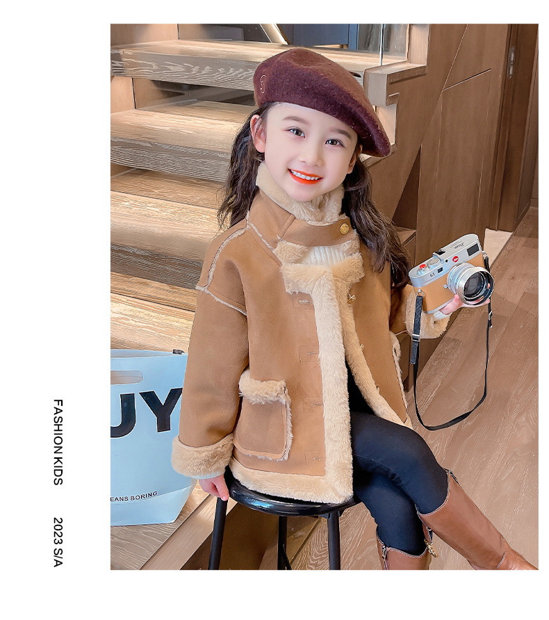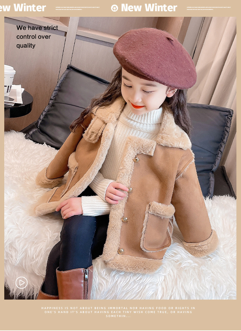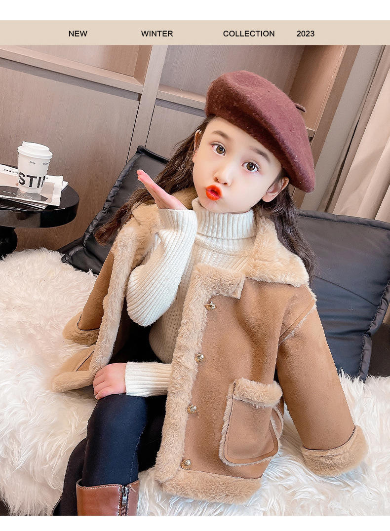 Верхняя одежда для девочек, меховая интегрированная, новинка 2025 года, бархатная утолщенная детская верхняя одежда, модная детская зимняя верхняя одежда
