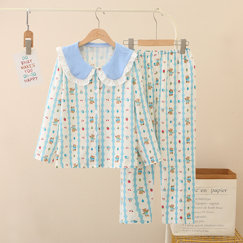Корейская детская одежда Весенний и Осенний детский набор домашней одежды Летний длинный рукав пижамы женский повседневная домашняя одежда для девочек оптом