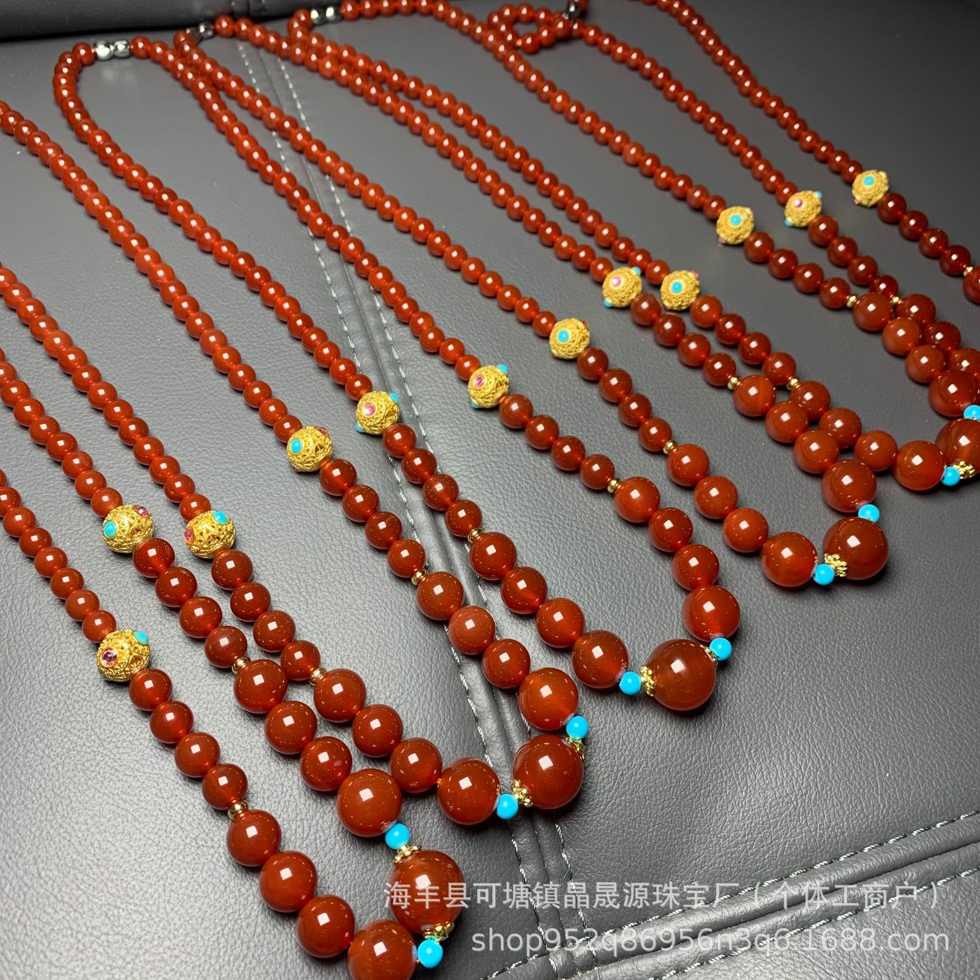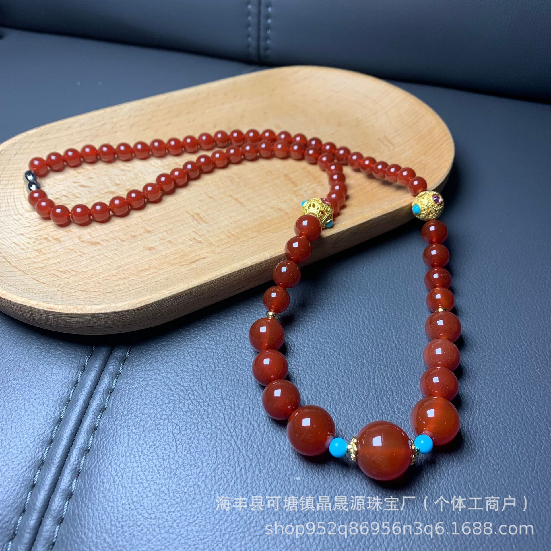 新中式天然红玛瑙项链女本命年玉髓玛瑙多圈锁骨链复古批发直播款 批发量越大价格越低,可供直播间长期合作,欢迎来电私聊