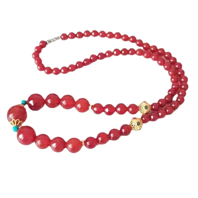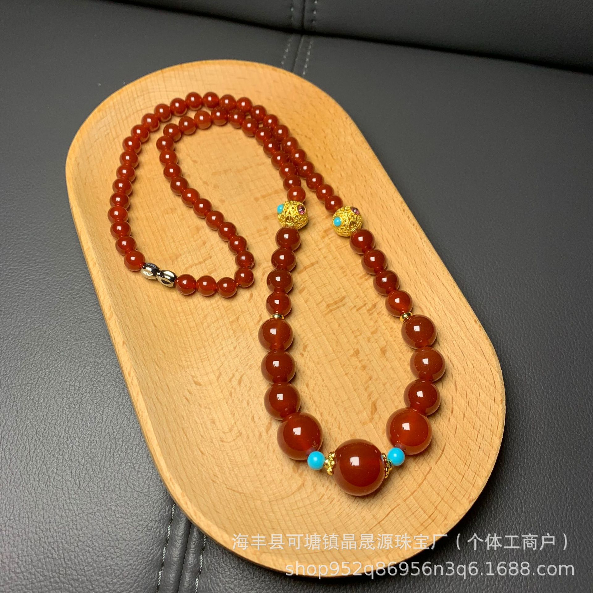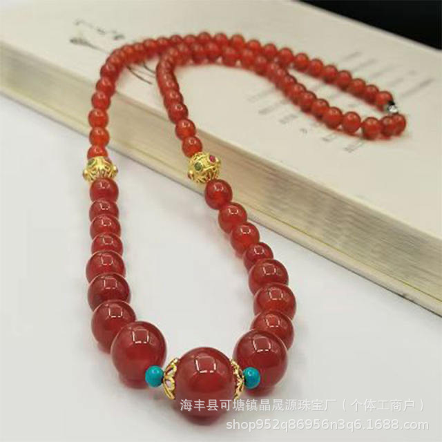 Новый китайский стиль натуральный красный агат ожерелье женский натальный год халцедон агат многолистая цепочка ключицы ретро оптом в прямом эфире
