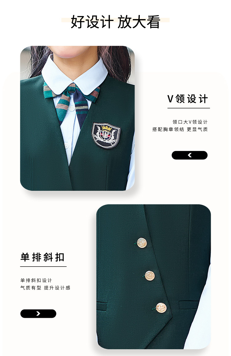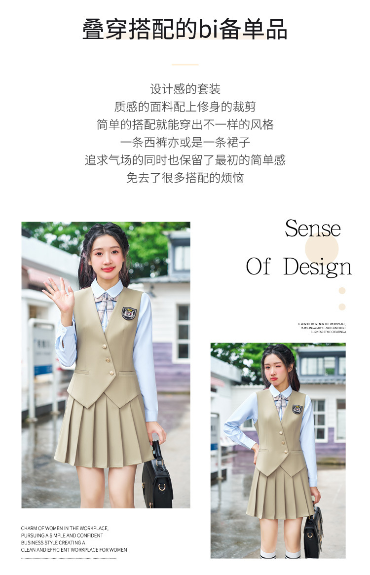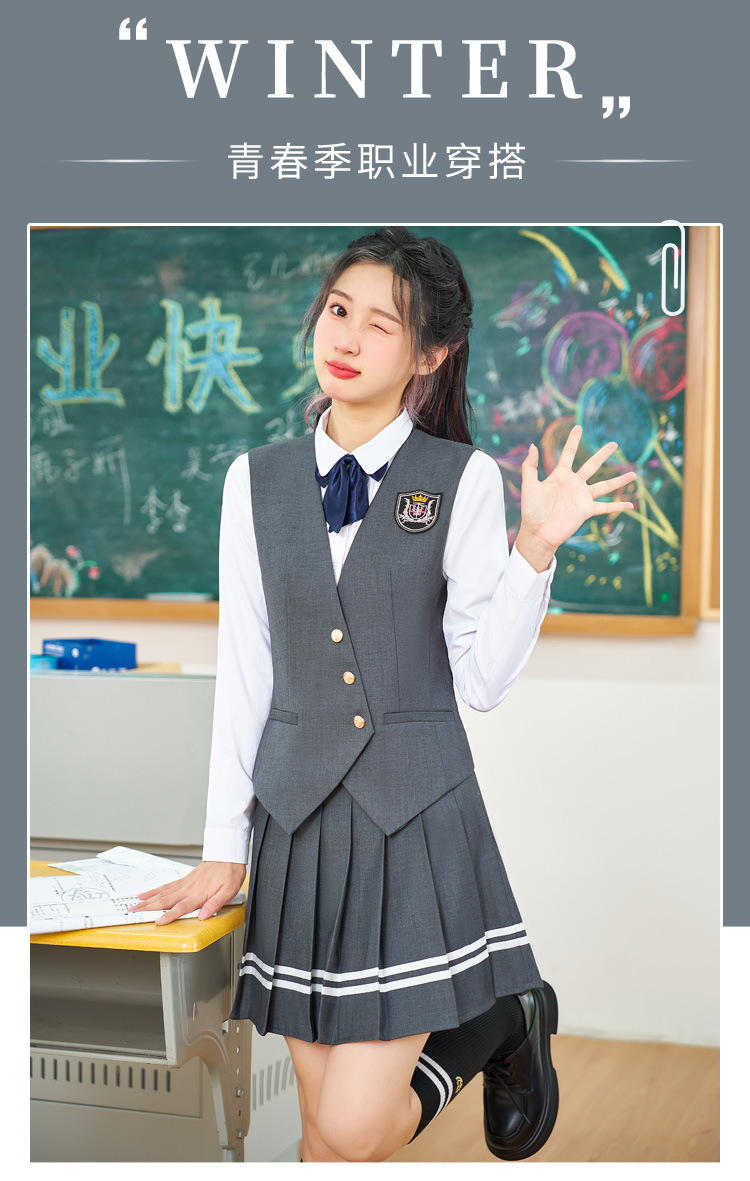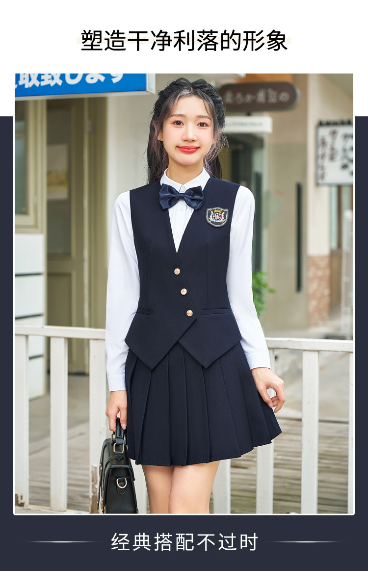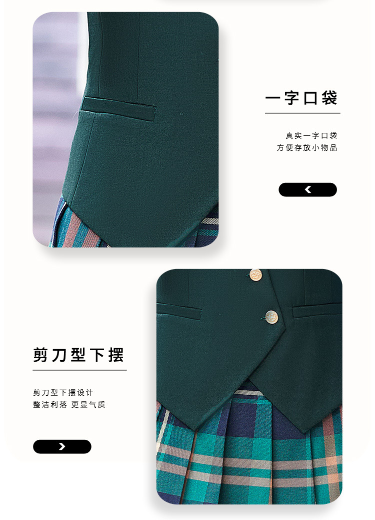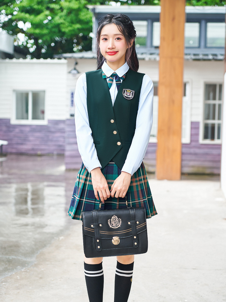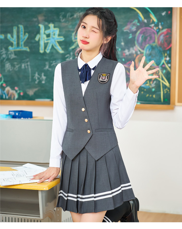 Цельный жилет темно-синего цвета; Одиночный серый жилет; Одинарный жилет цвета хаки; Один темно-зеленый жилет; Темно-синий жилет + темно-синяя юбка А01; Темно-синий жилет + темно-синяя юбка А03; Серый жилет + серая юбка А01; Серый жилет + серая юбка А03; Жилет хаки + юбка цвета хаки А03; Темно-зеленый жилет + зеленая клетчатая юбка А02.; Темно-зеленый жилет + зеленая юбка А03; Цельная белая рубашка 608.; Цельная синяя рубашка 608.