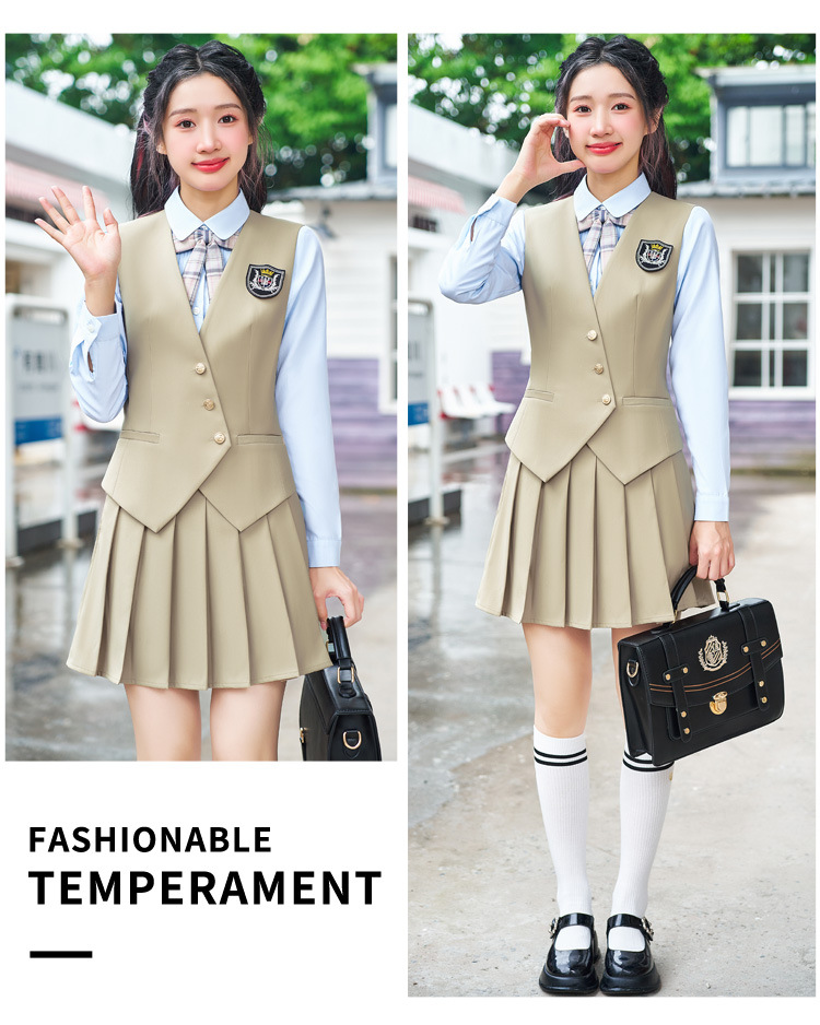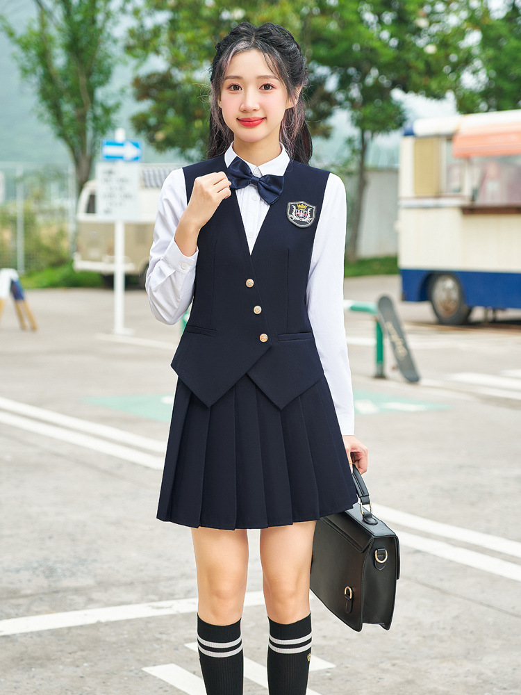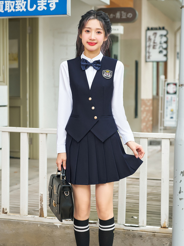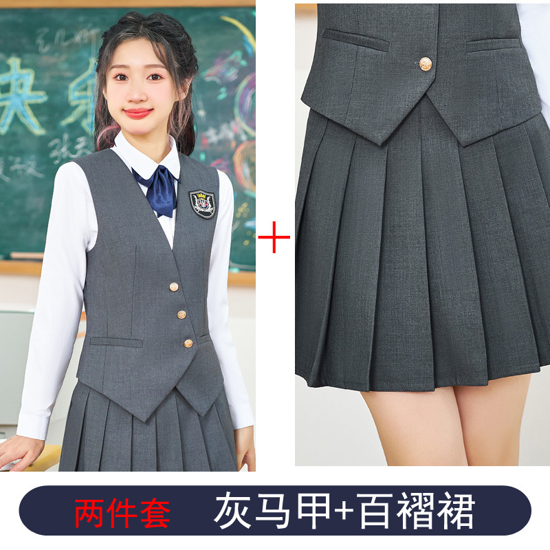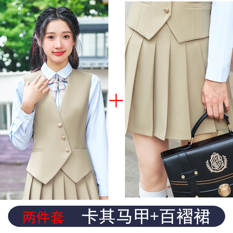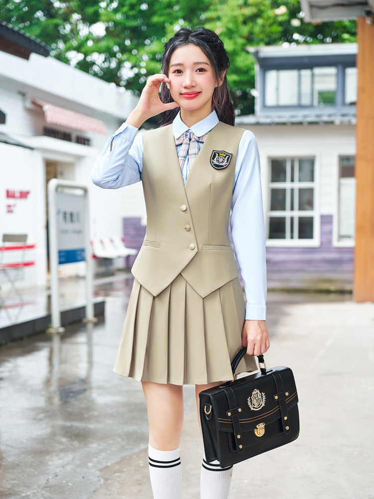 Профессиональный костюм с жилеткой и короткой юбкой для женщин, весенне-осенний наряд для воспитателей детского сада и студентов, юбка в стиле преппи с плиссировкой, униформа JK, рабочая одежда