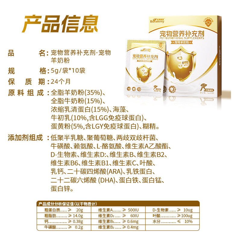 Сухое козье молоко [5гХ10 пакетов] в коробке; Сухое козье молоко для домашних животных [5 г] в одиночном пакете