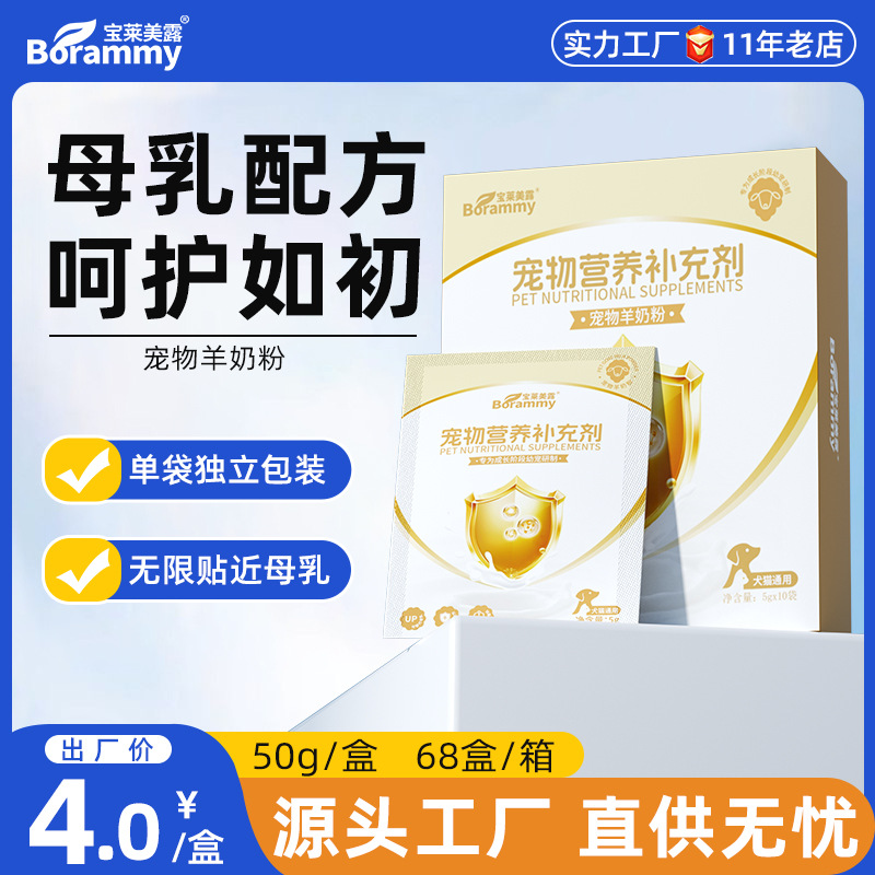 Сухое козье молоко Baolai Melu для кошек и щенков, 5 г * 10 пакетиков, универсальное питание для кошек и собак
