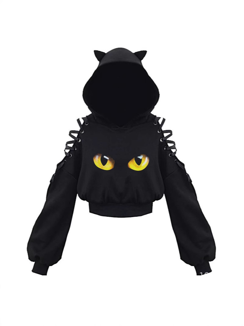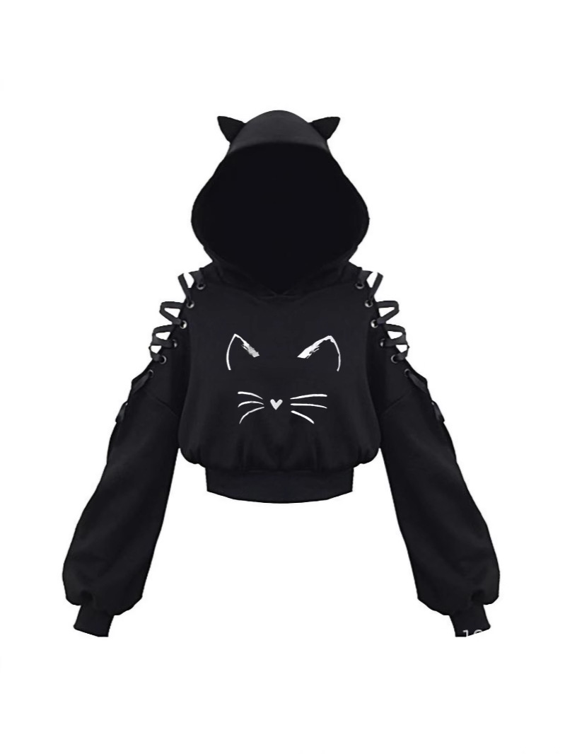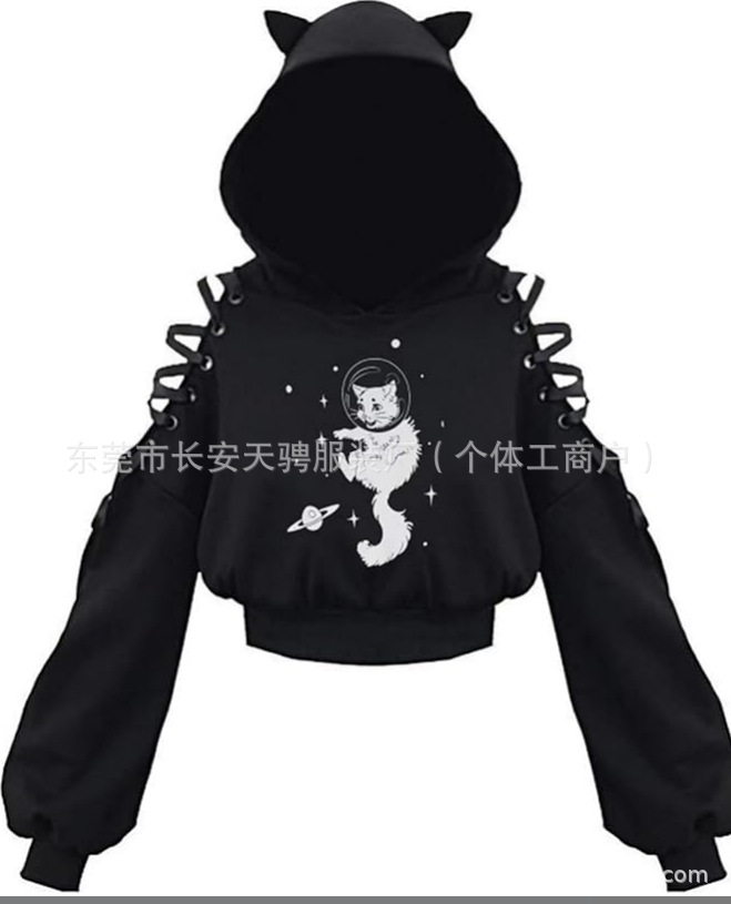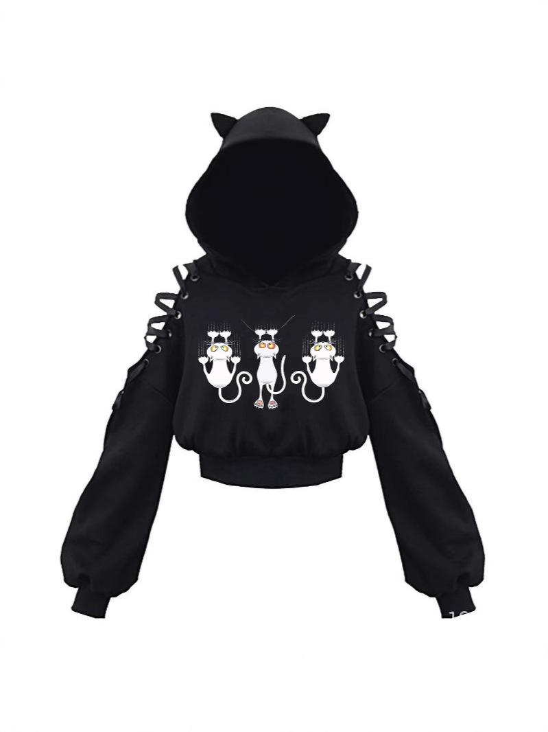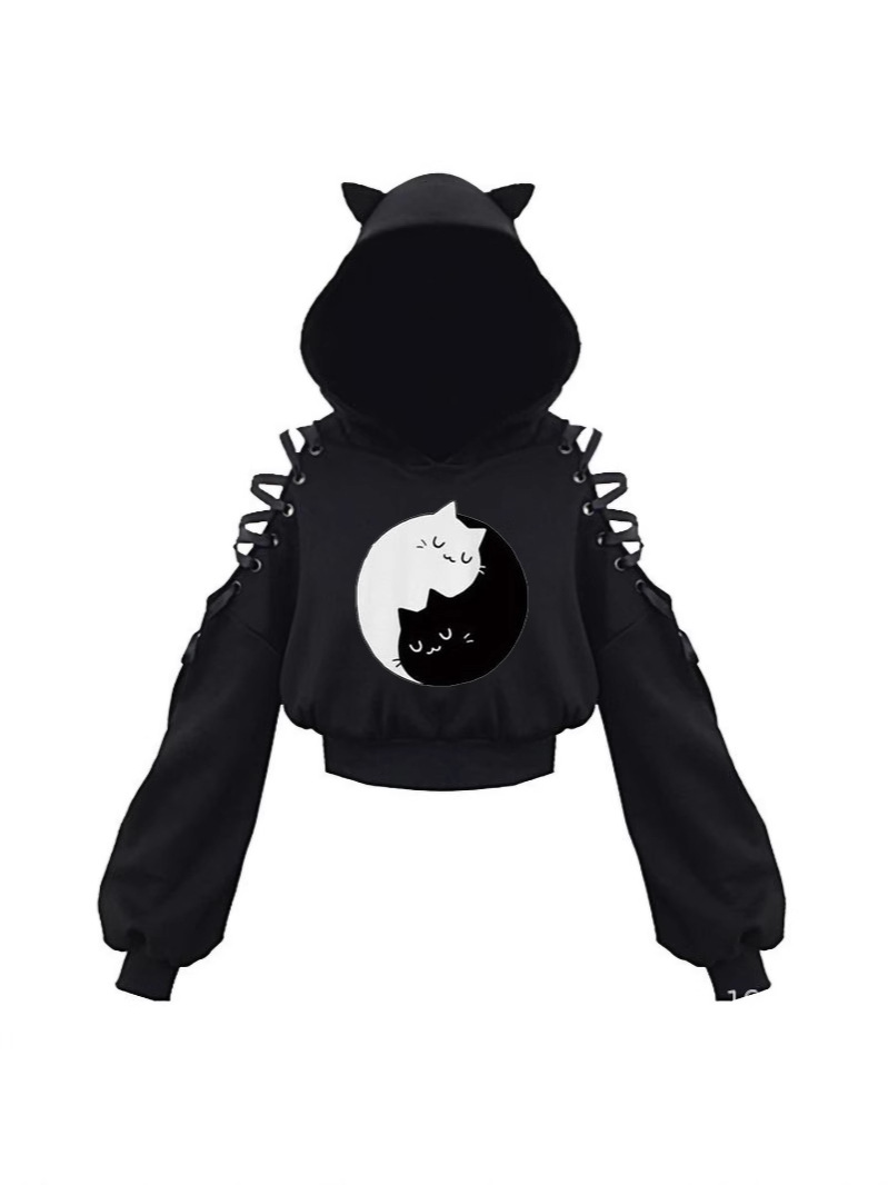 2024 новый длинный рукав черно-белый кот японский аниме милый кот уши пупок свитер сексуальный хип-хоп женский костюм