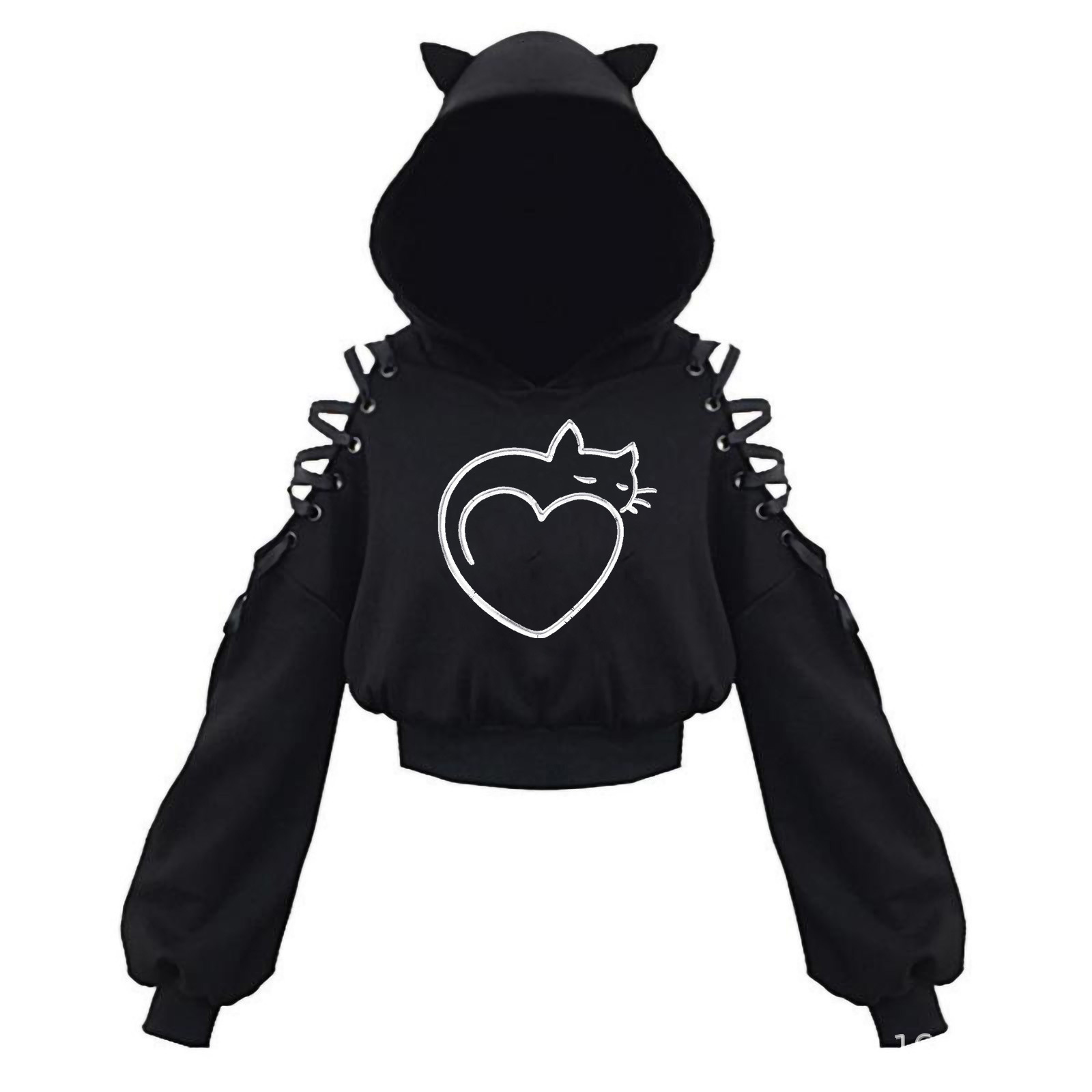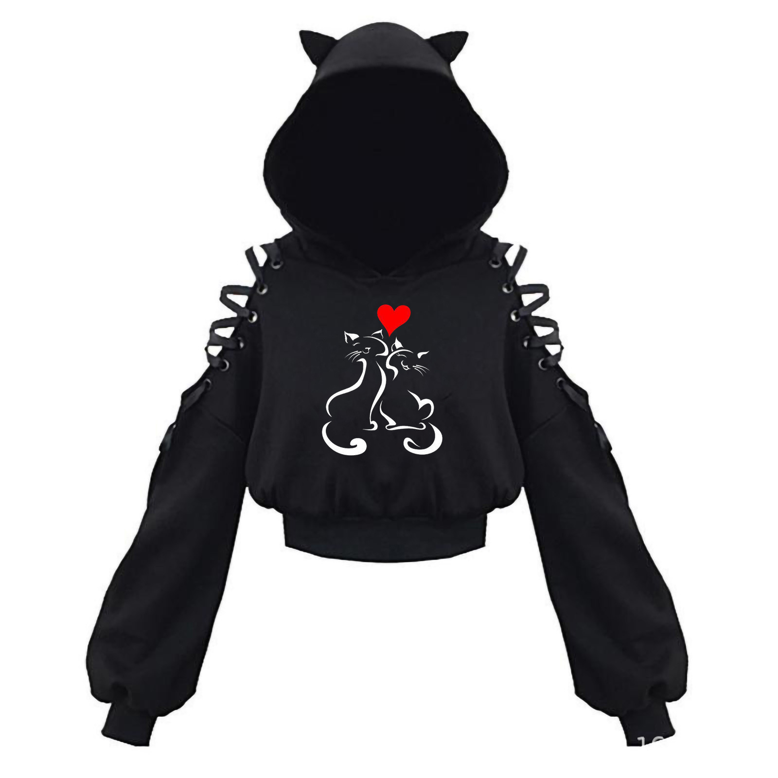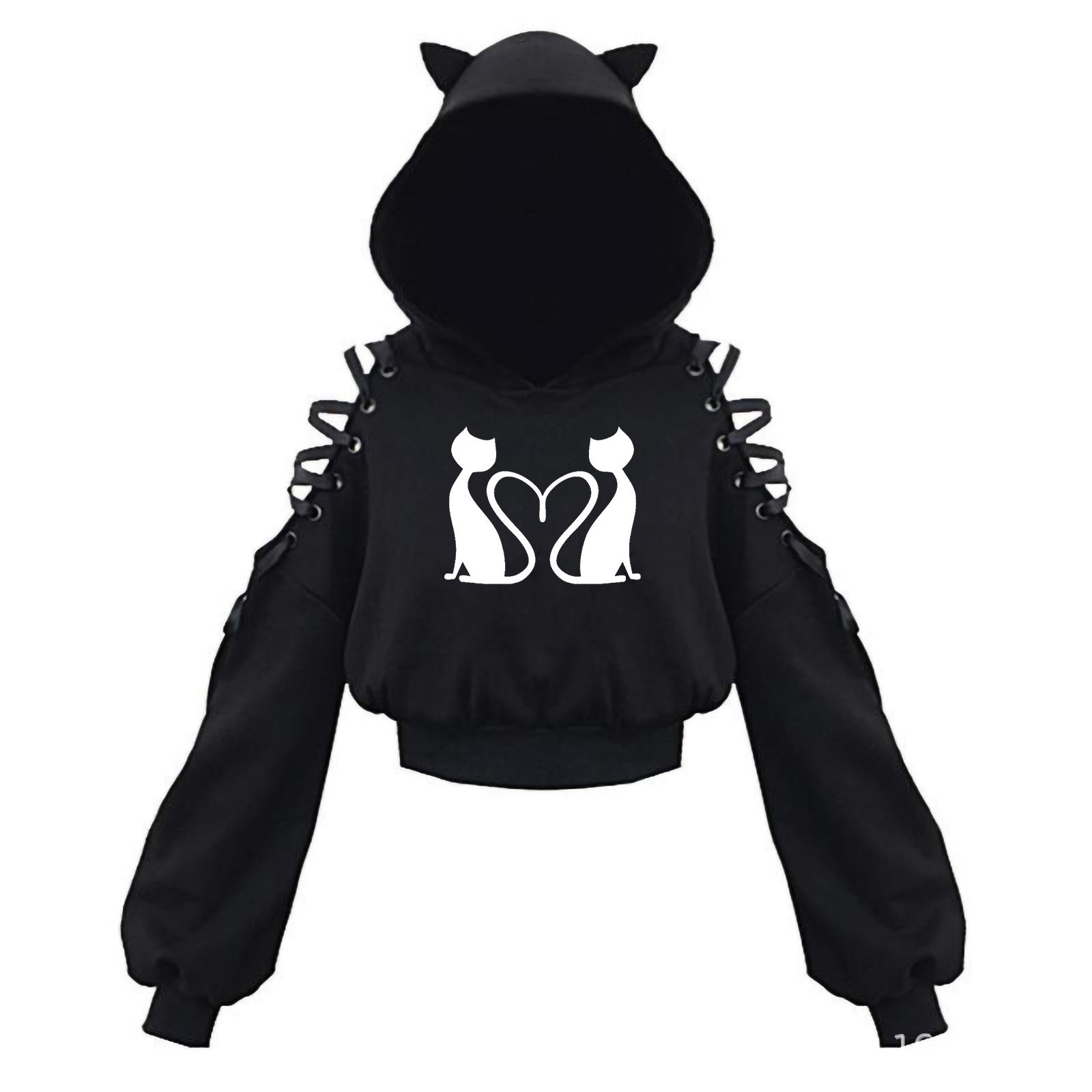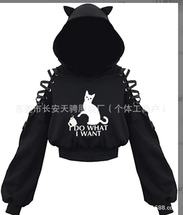 2024 новый длинный рукав черно-белый кот японский аниме милый кот уши пупок свитер сексуальный хип-хоп женский костюм