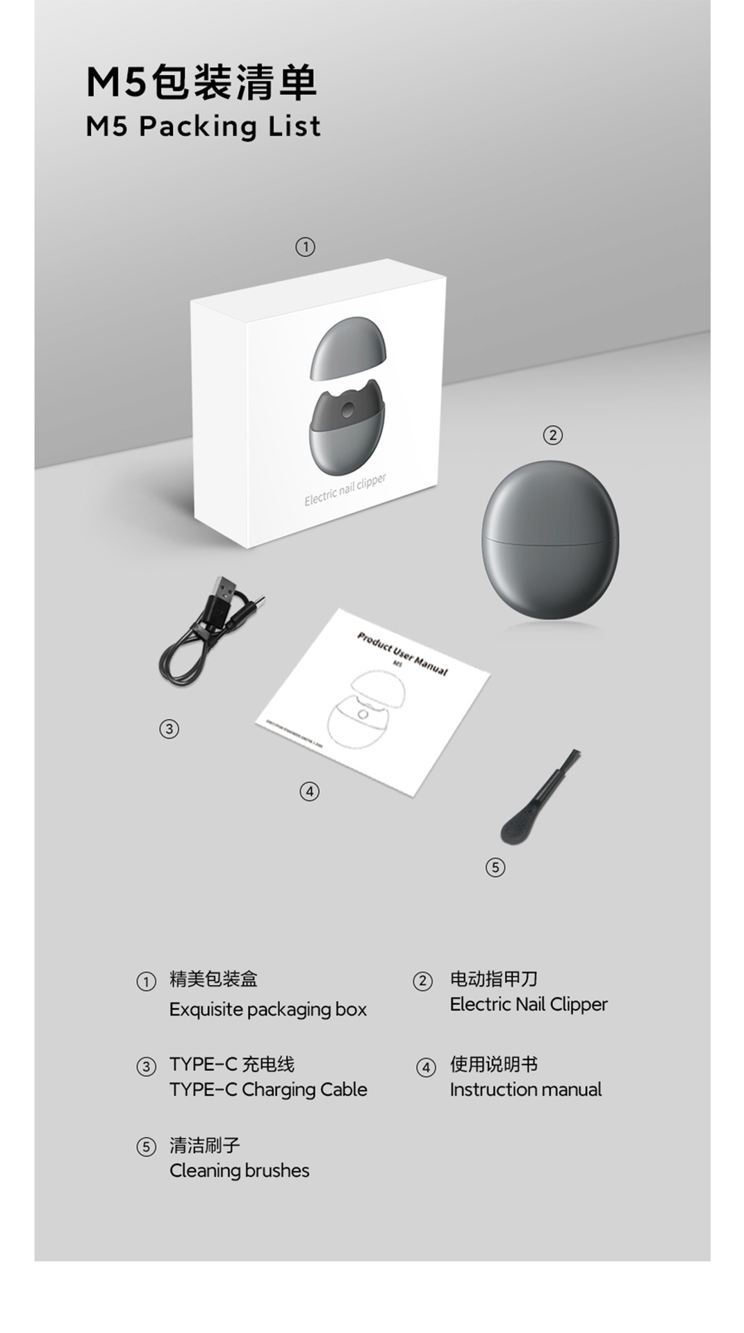 Изысканная коробка с верхней и нижней крышкой, машина, кабель для зарядки, маленькая кисточка, инструкция, блистер.