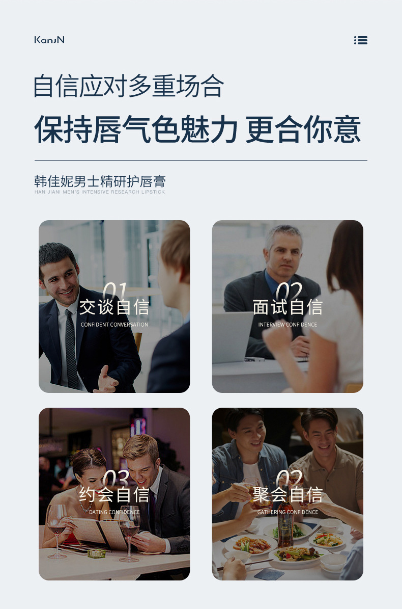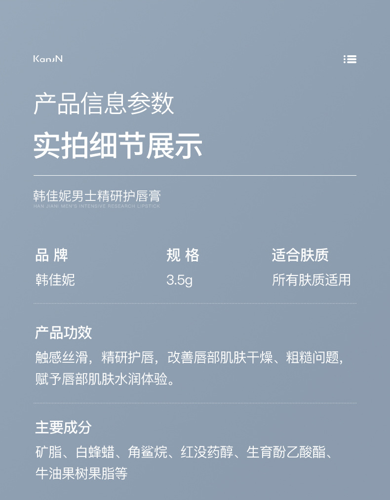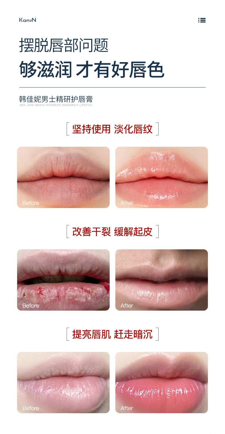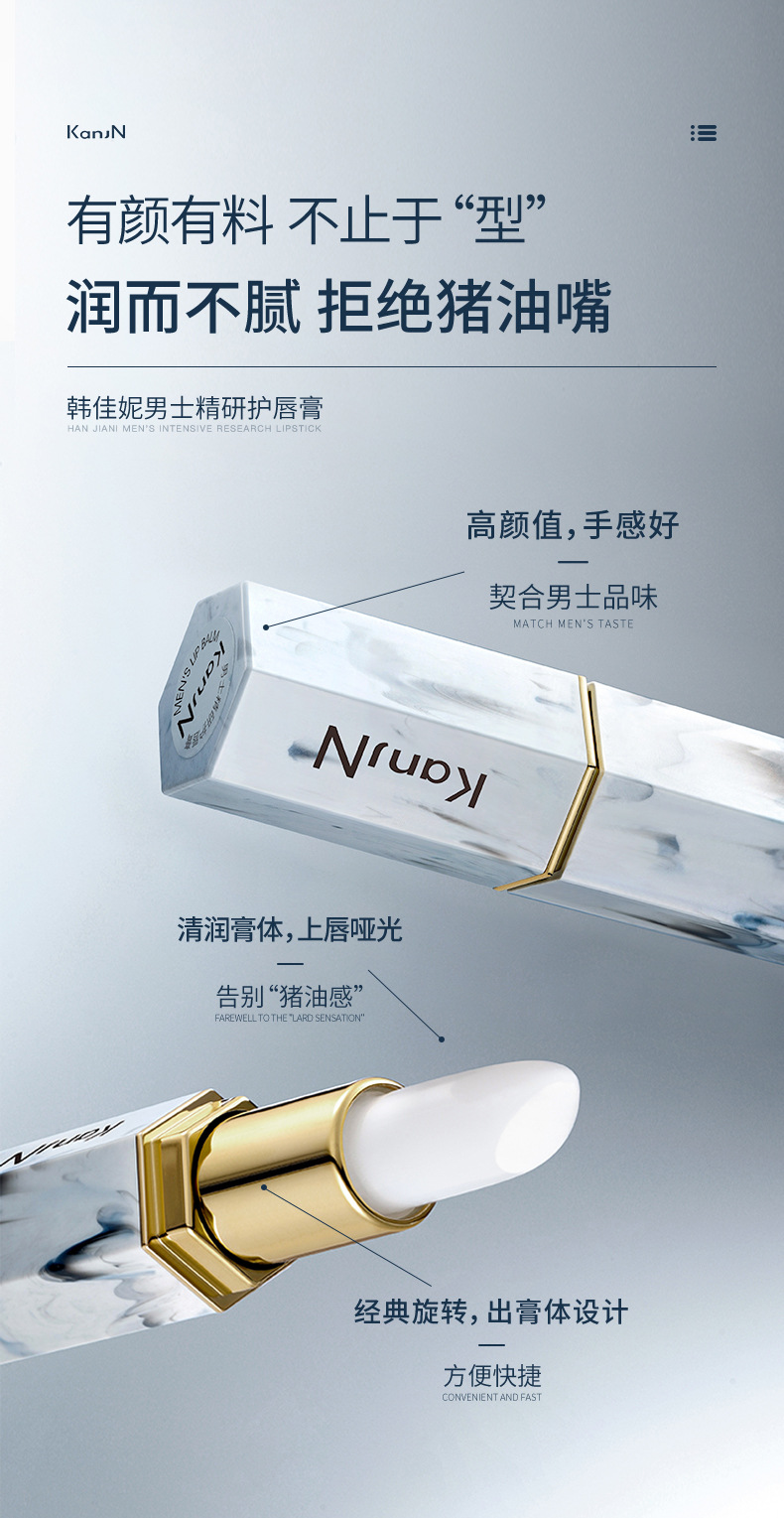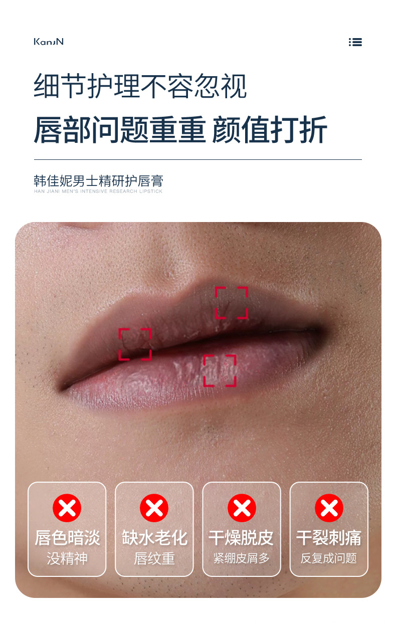 Han Jiani мужская тонкая помада 3.5g увлажняет и увлажняет шелковистые линии, освежающие и не жирные, удобные и быстрые
