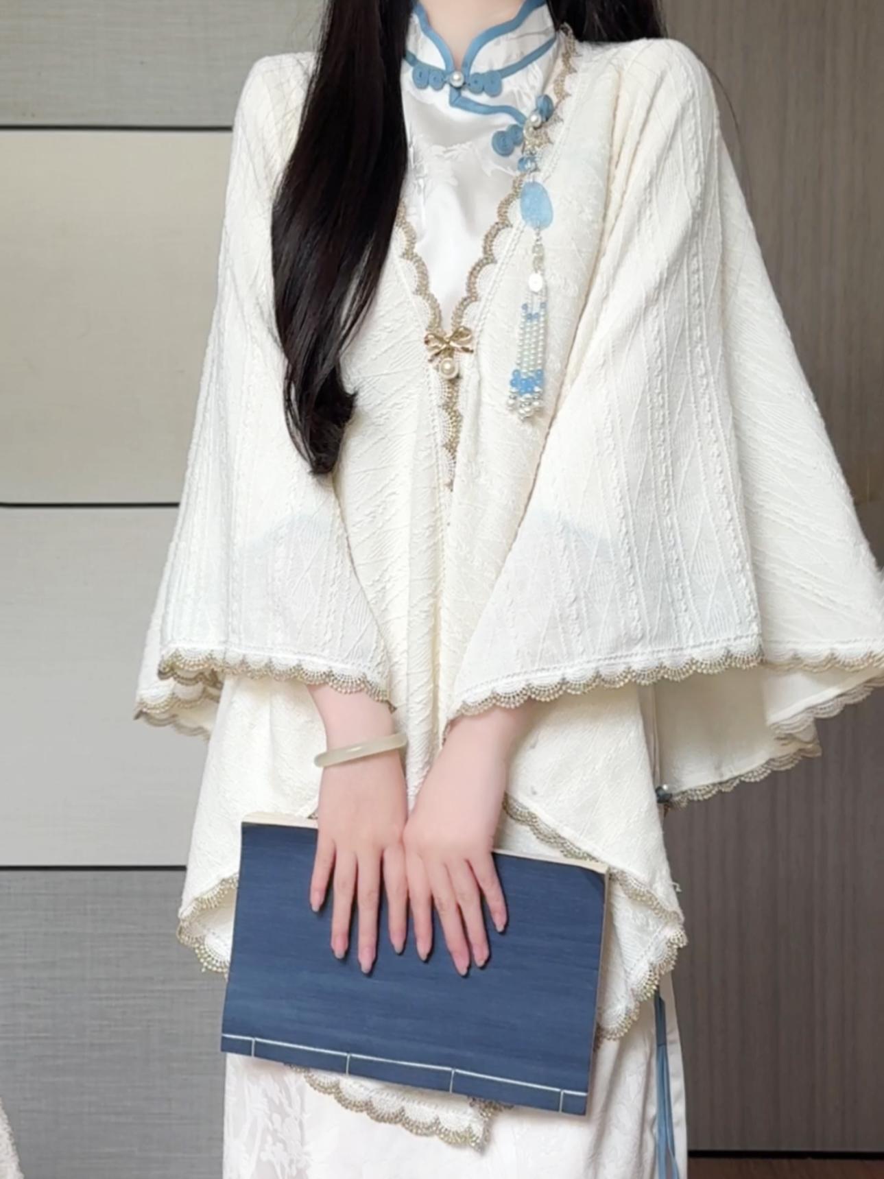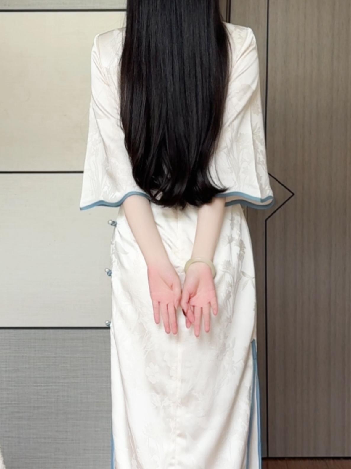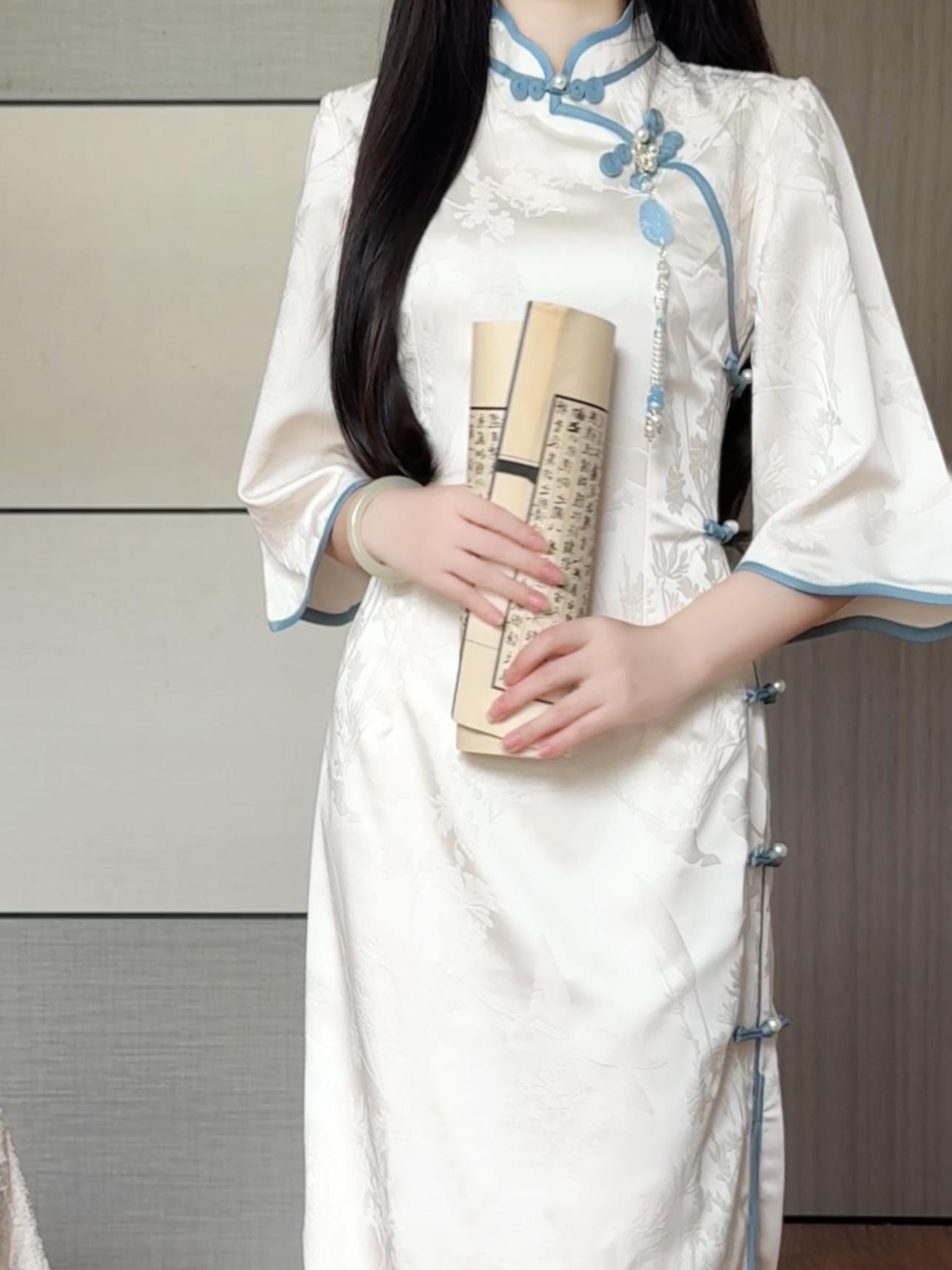 Наньчэн старые вещи, ретро-искусство, песня, жаккард, атлас, белая луна, холодный темперамент, ежедневный большой рукав, улучшенный чонсам