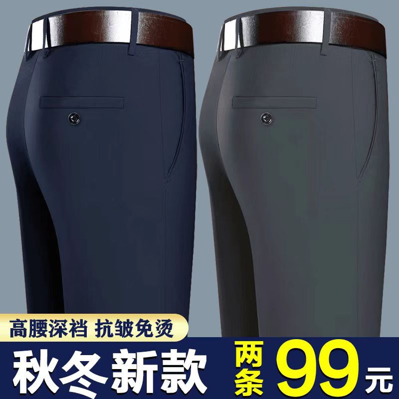 Осенние и зимние новые толстые повседневные брюки, против морщин, без ожогов, без комфорта и без талии