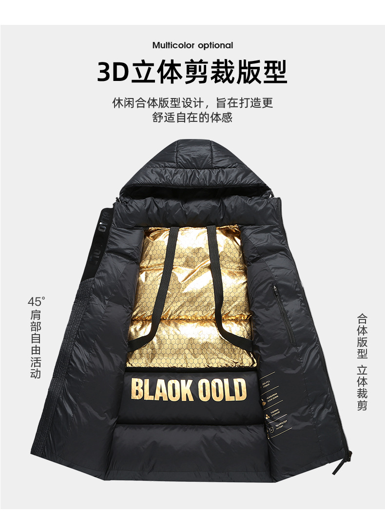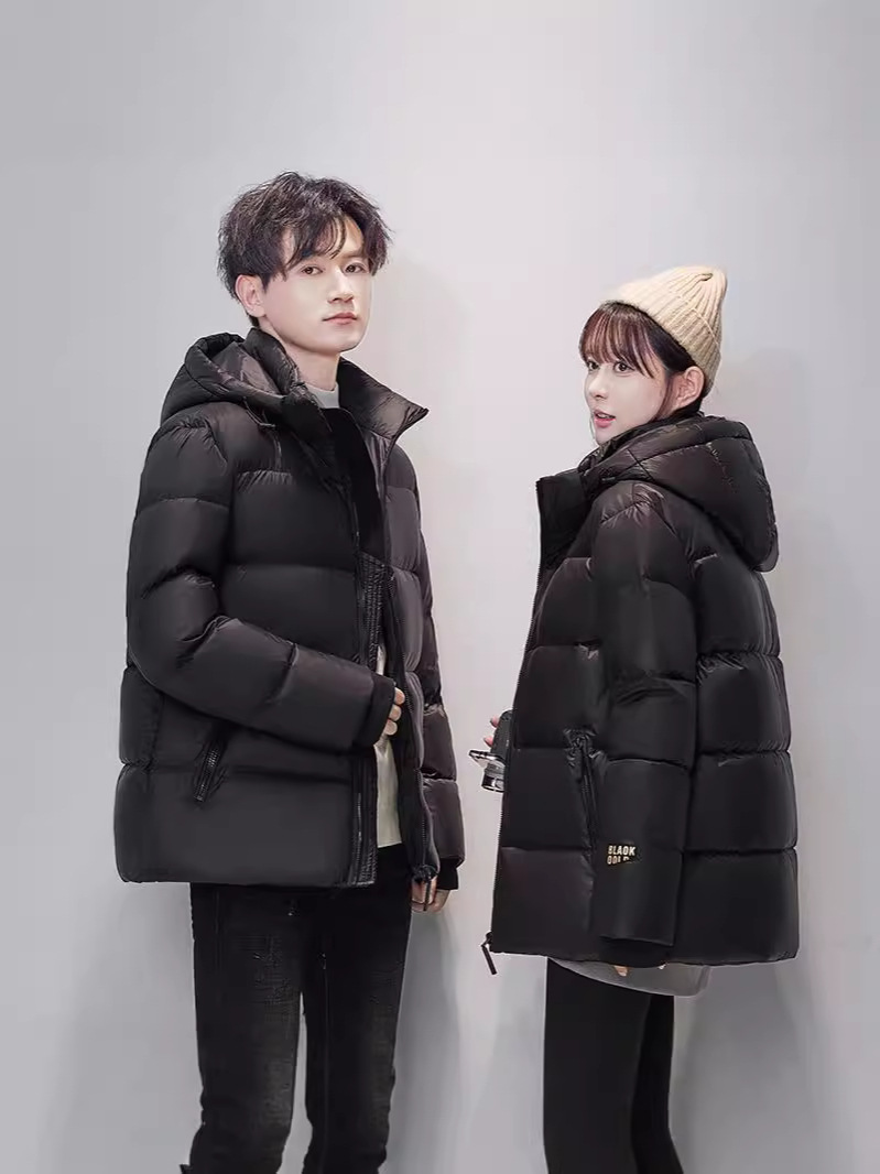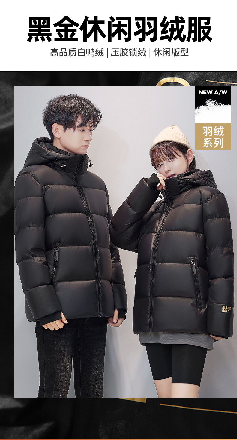 Черный золотой пуховик утка пуховик 2024 Короткий хлебный костюм мужская и женская пара пальто толстый зимний холод