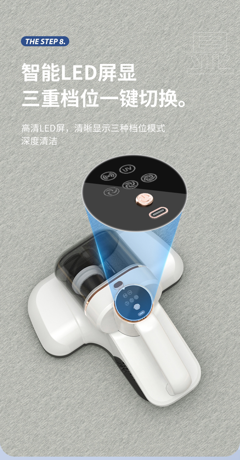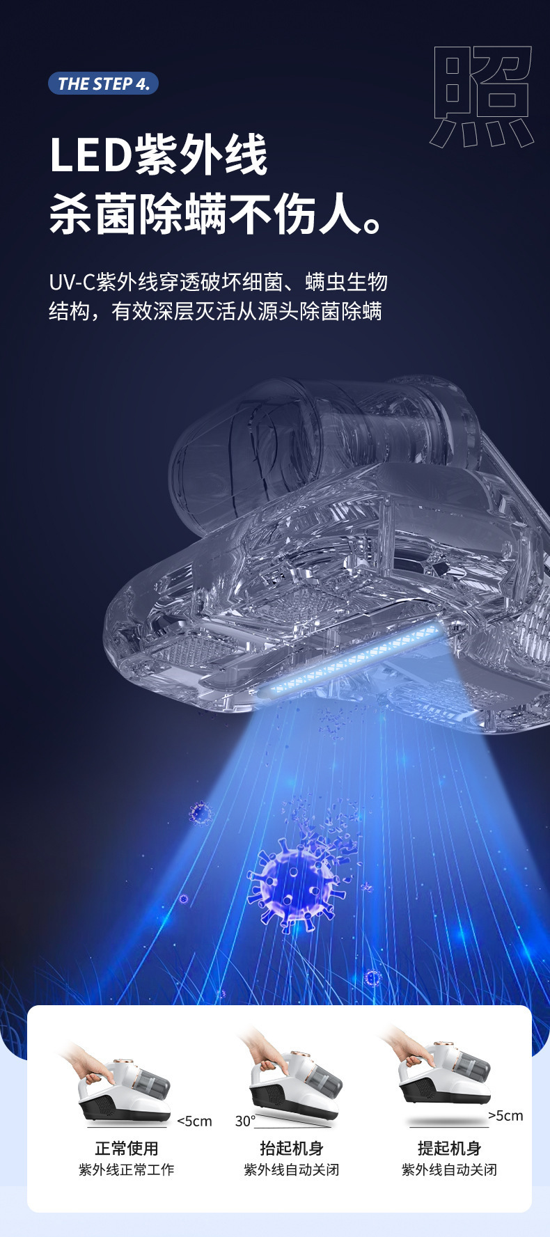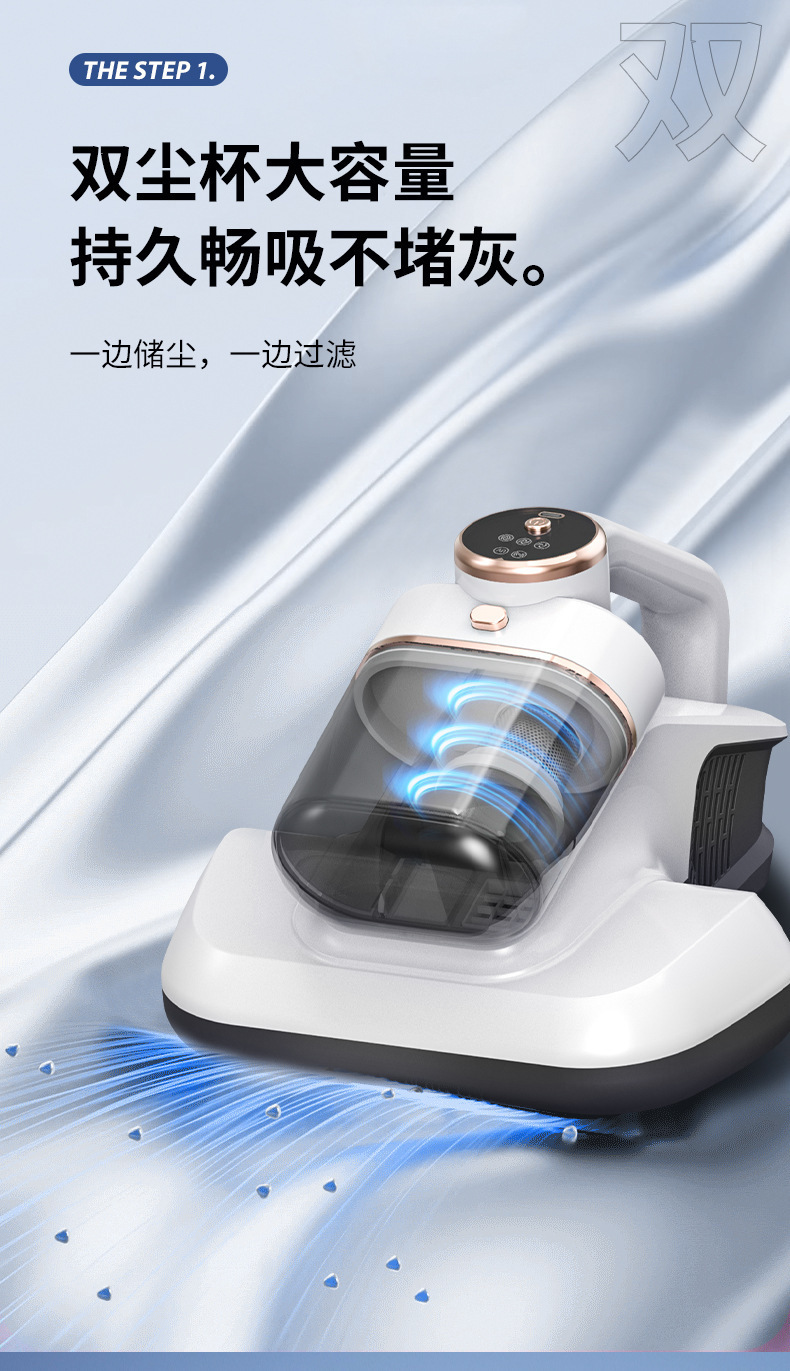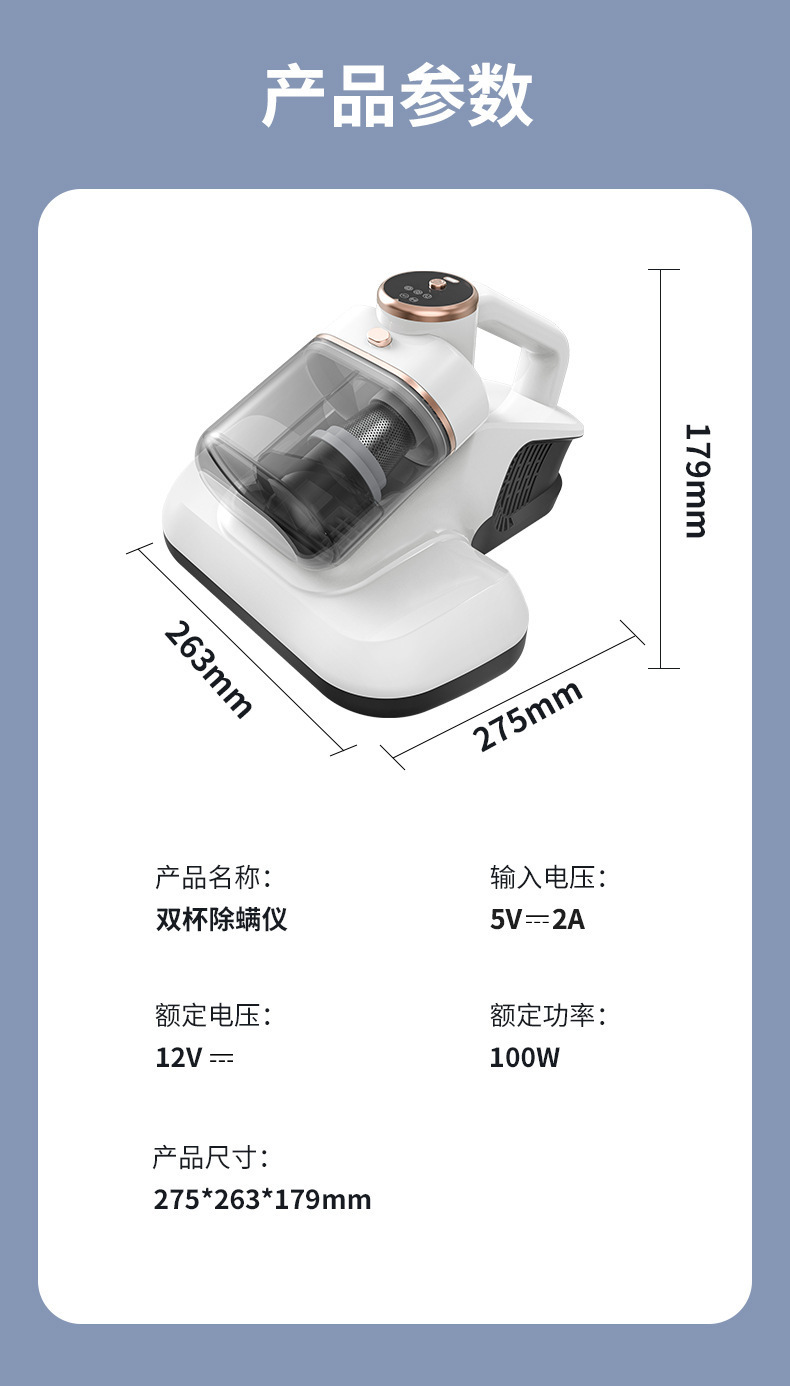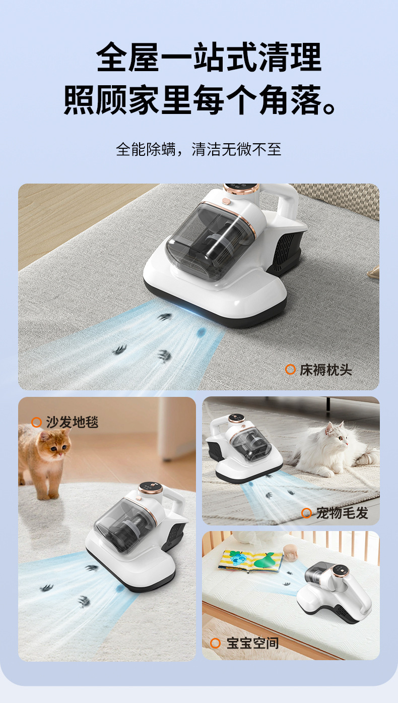 功能 :10000pa、三档调节、双拍打、双尘杯、UV-C紫外线高效杀菌净螨、吸尘、床上沙发等多范围使用