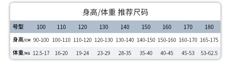 100cm; 110cm; 120cm; 130cm; 140cm; 150cm; 160cm; 170cm; 180cm