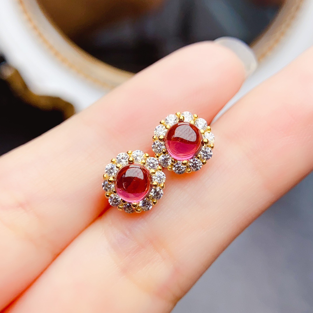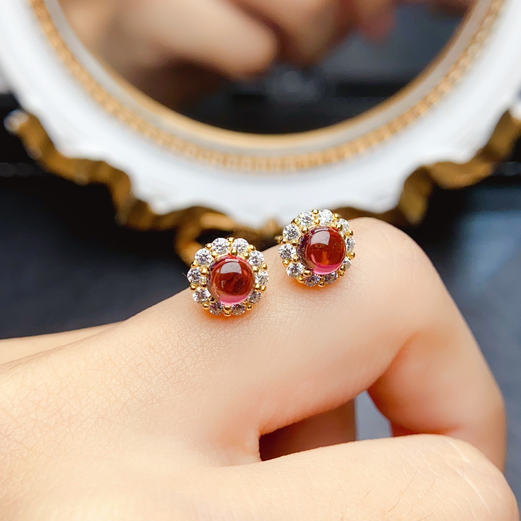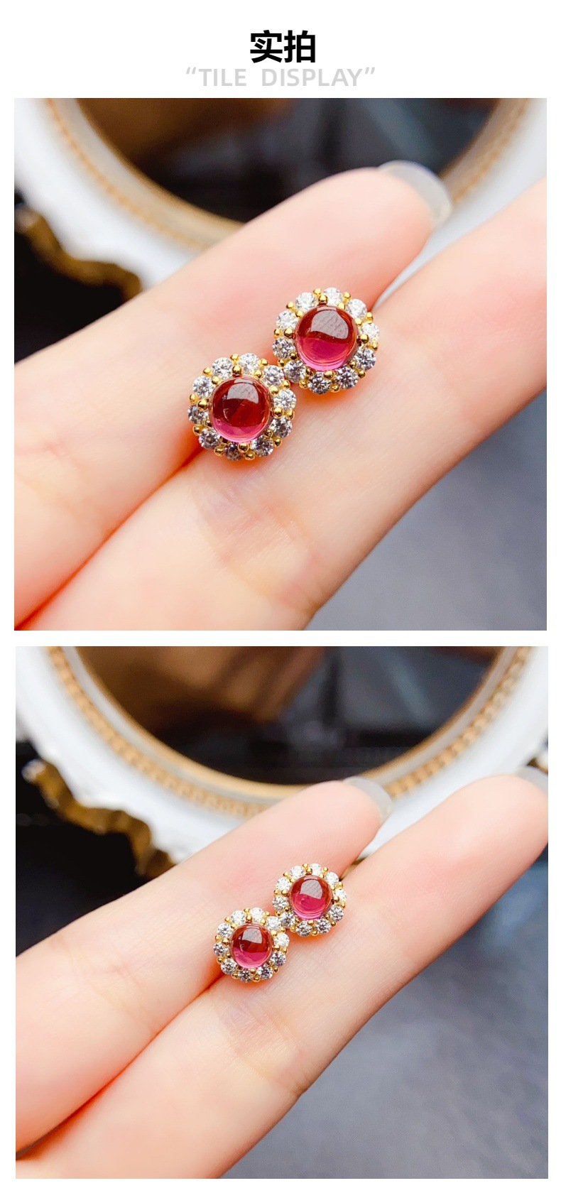 Новый натуральный гранат серьги S925 Серебряный инкрустированный основной камень 5*5 мм