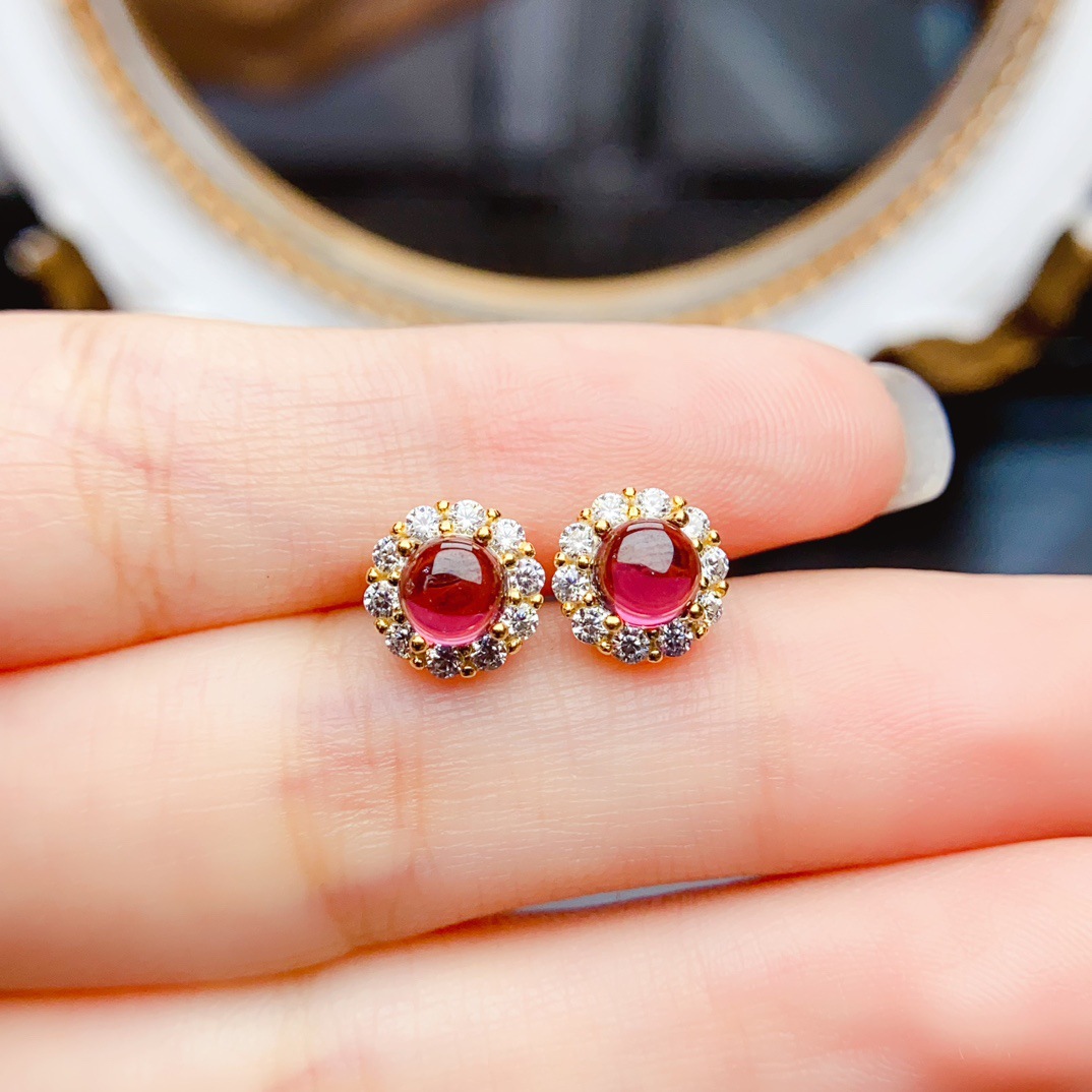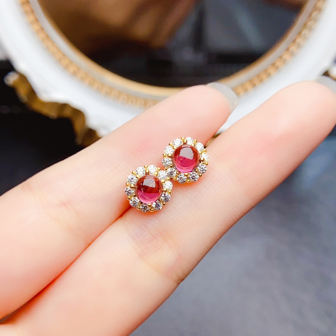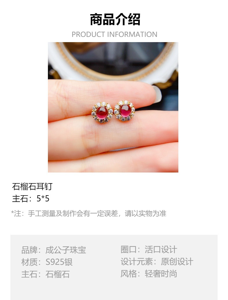 Новый натуральный гранат серьги S925 Серебряный инкрустированный основной камень 5*5 мм