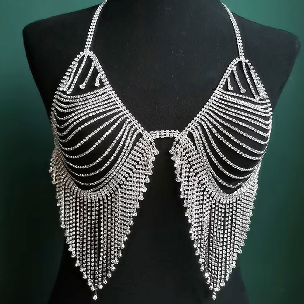 Аксессуары для груди в европейском и американском стиле, модная цепочка с кисточками, блестящая женская цепочка для тела с кристаллами, оптовая продажа ювелирных изделий из Иу.