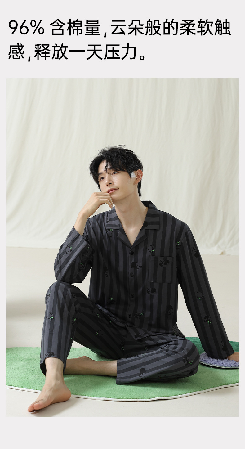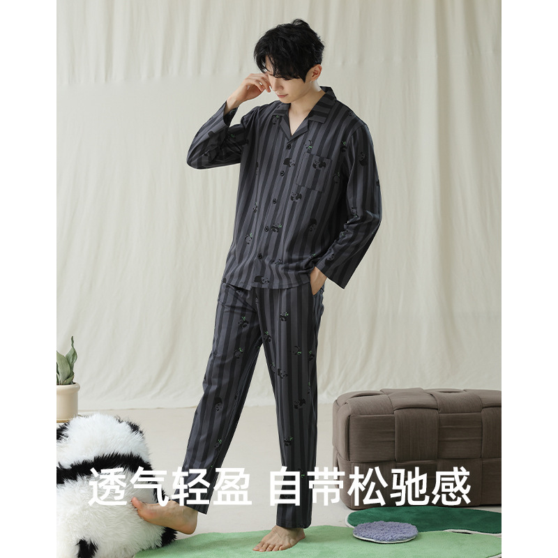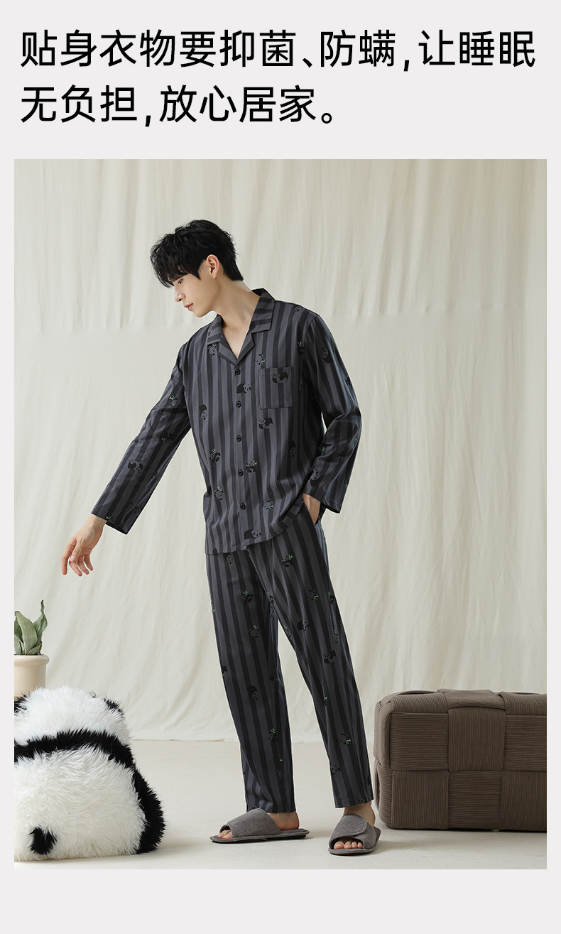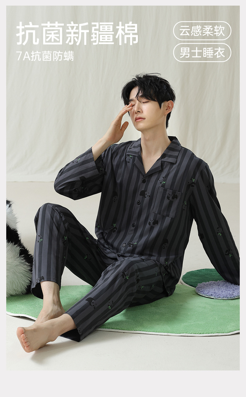 [Антибактериальный хлопок Синьцзян] Весенняя и осенняя пижама мужская с длинными рукавами хлопковая чистая пижама мужской ватный халат
