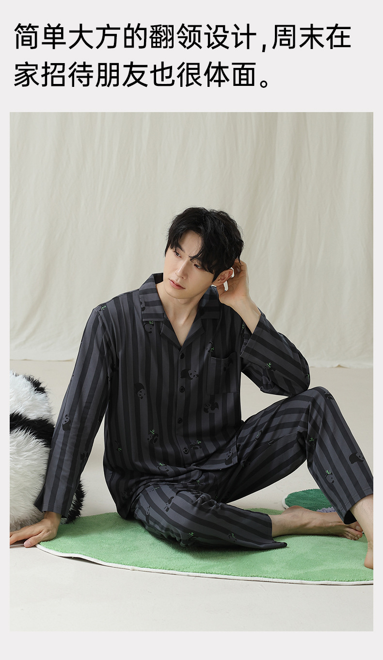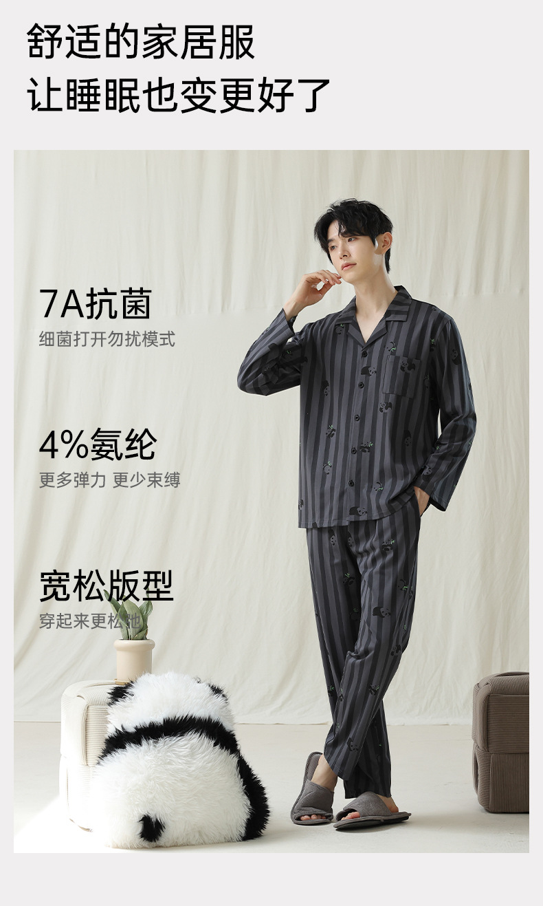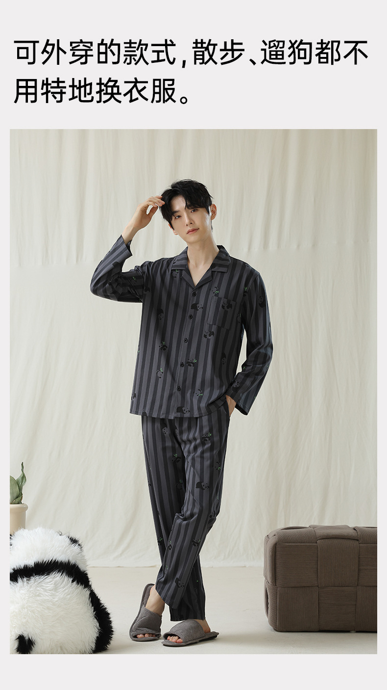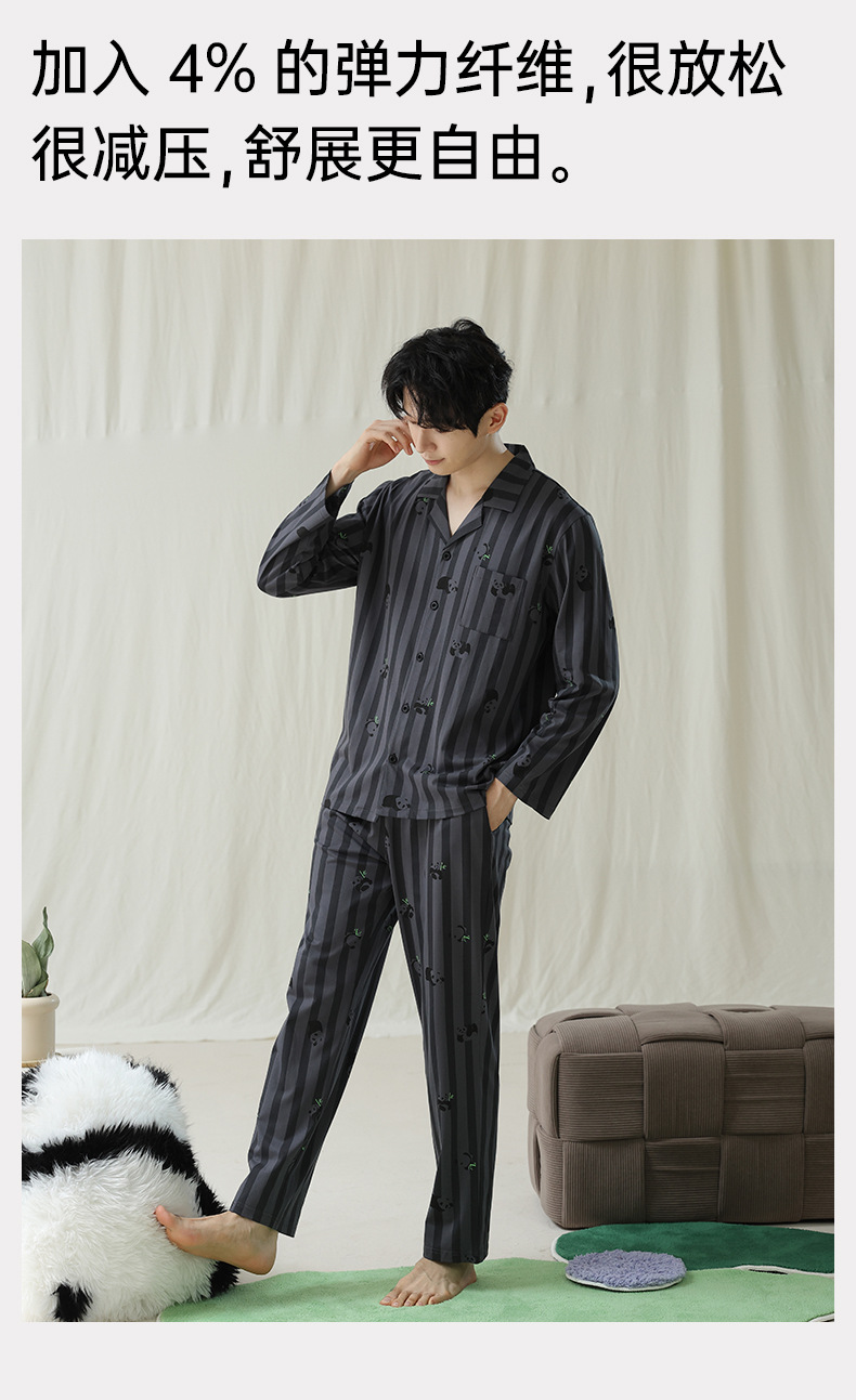 [Антибактериальный хлопок Синьцзян] Весенняя и осенняя пижама мужская с длинными рукавами хлопковая чистая пижама мужской ватный халат