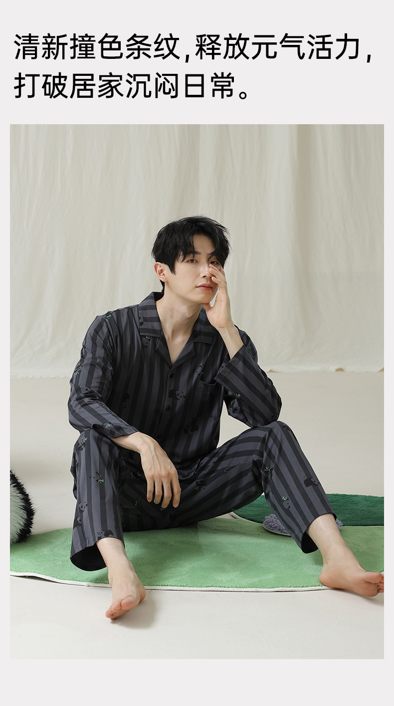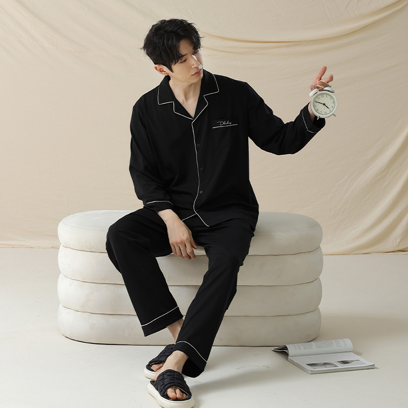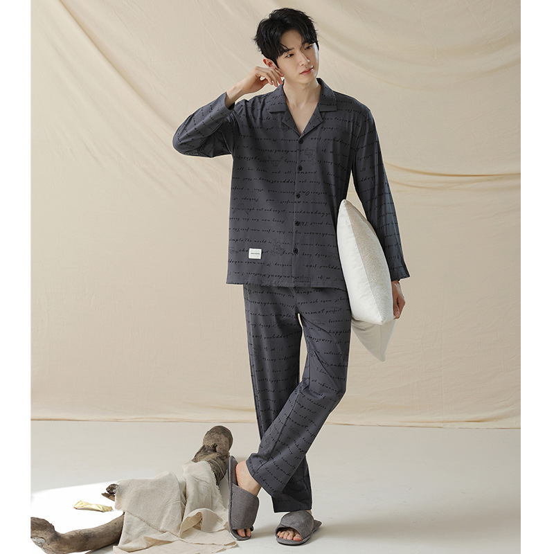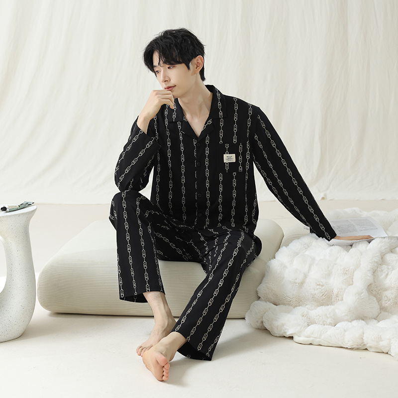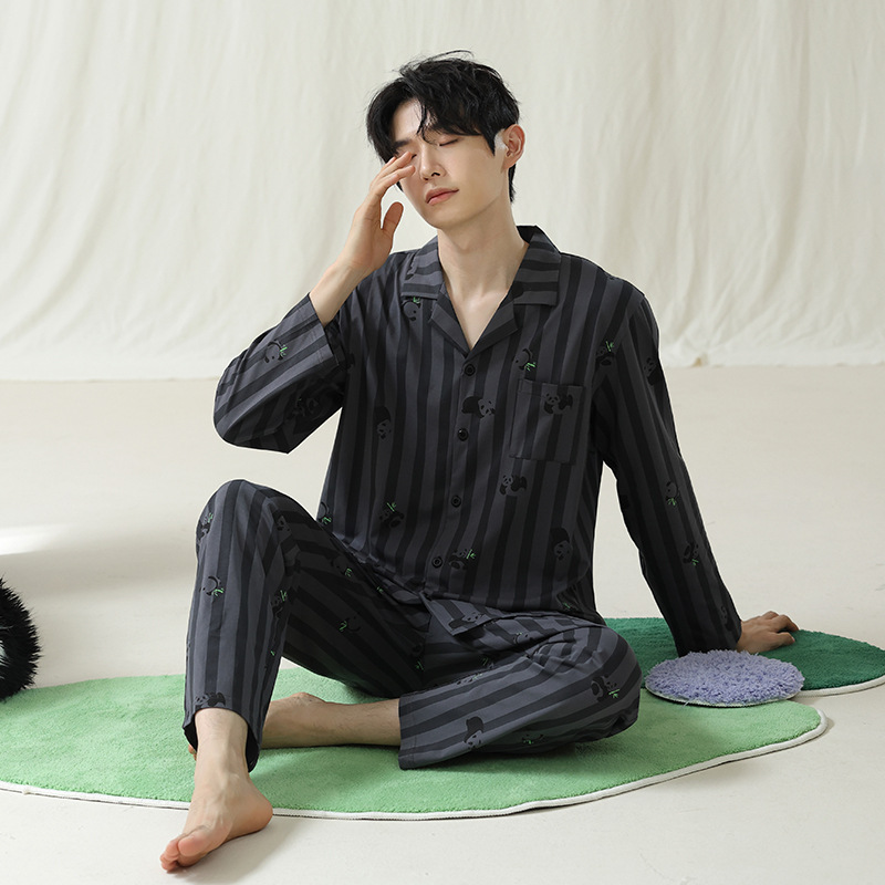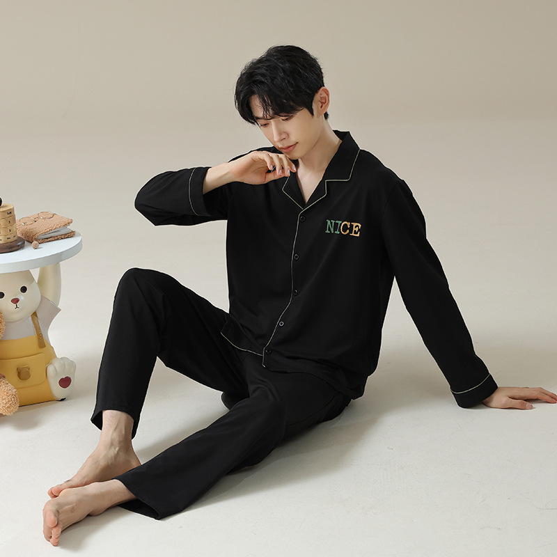 [Антибактериальный хлопок Синьцзян] Весенняя и осенняя пижама мужская с длинными рукавами хлопковая чистая пижама мужской ватный халат