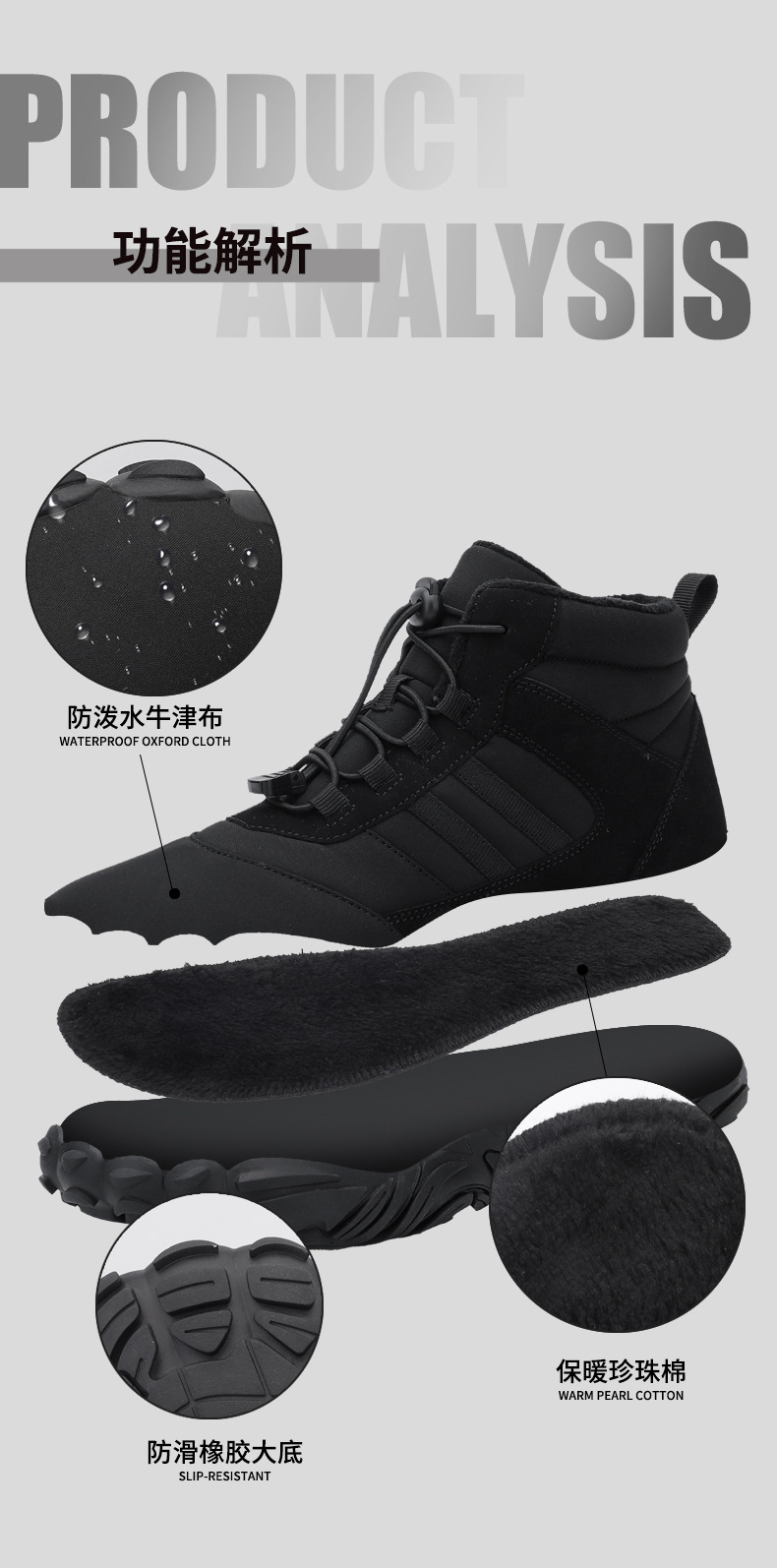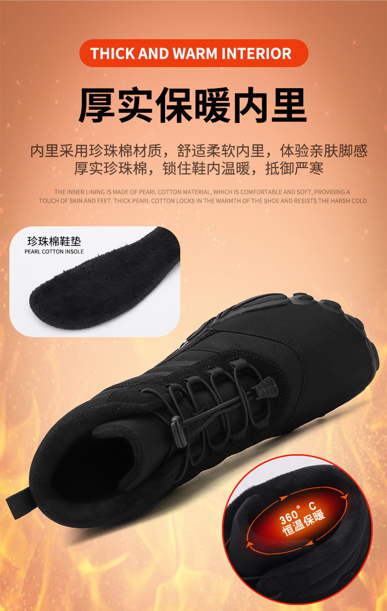 Хлопковая обувь из пяти пальцев нескользкая и износостойкая пара походных туфель теплая и бархатная снежная обувь на открытом воздухе
