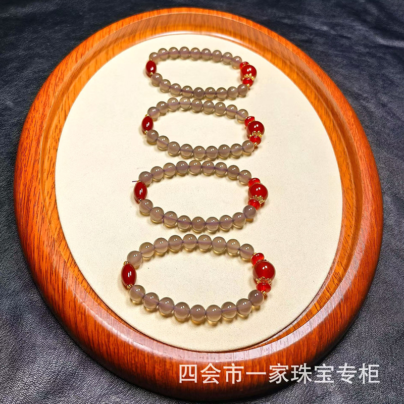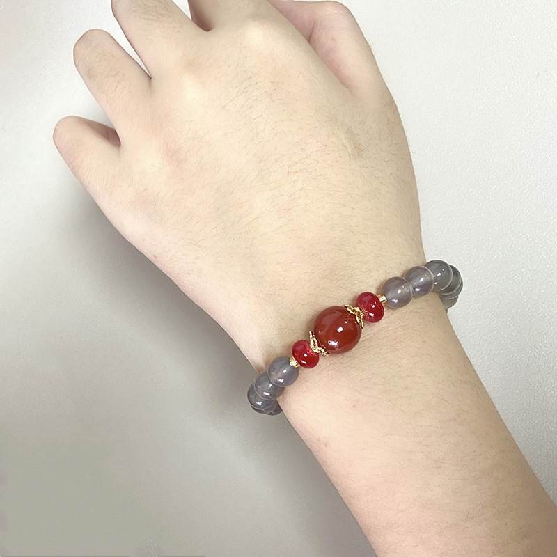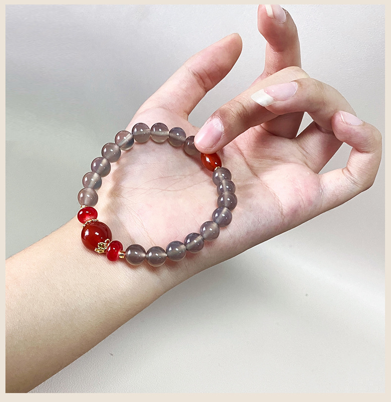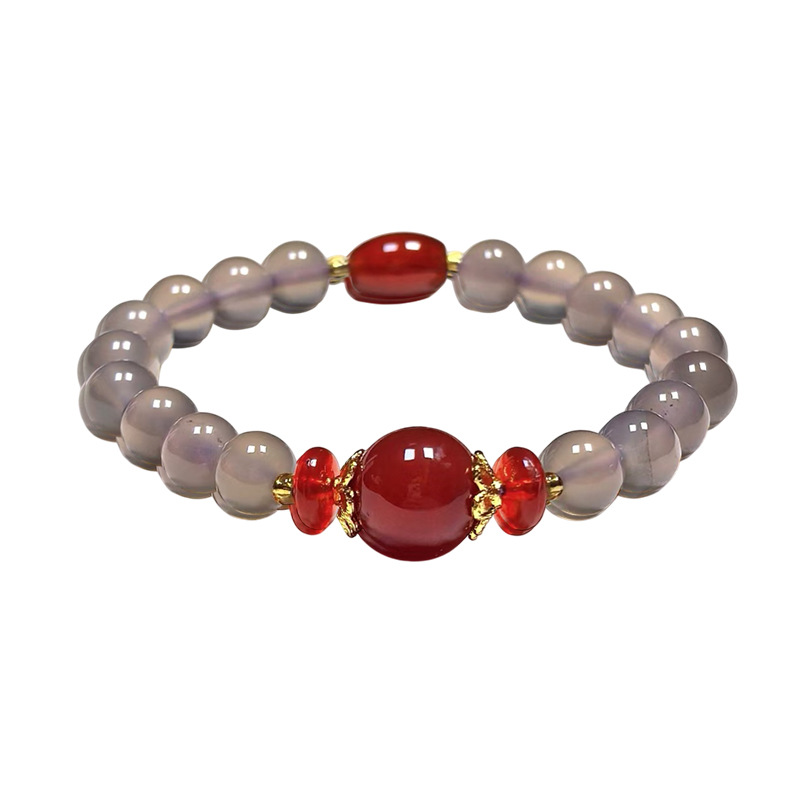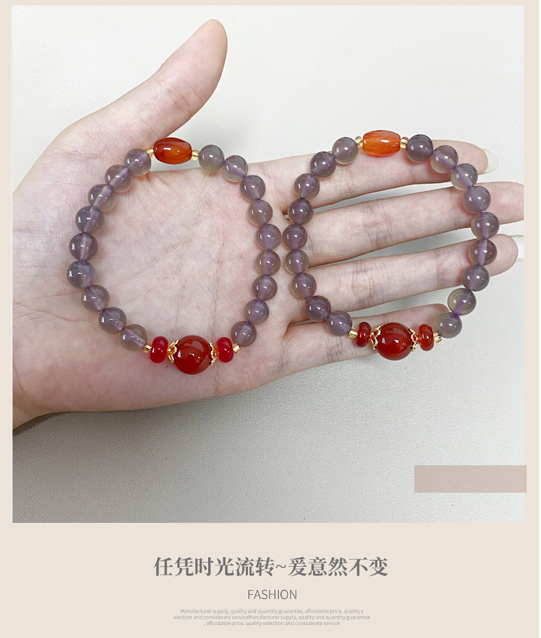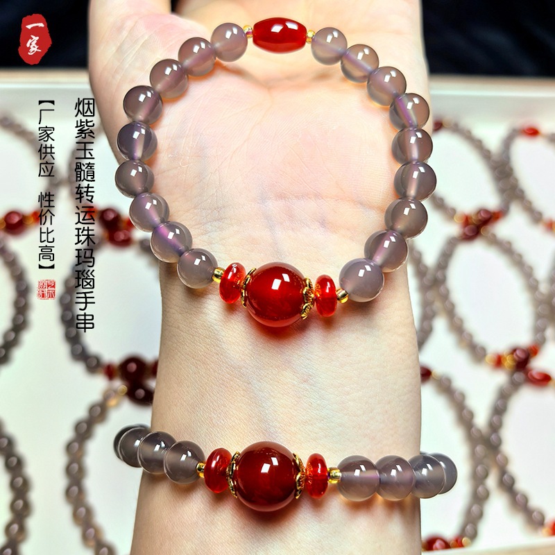 Натуральный агат ручной дым фиолетовый халцедон красный агат ручной стиль ретро китайский ветер бус браслет оптовая продажа