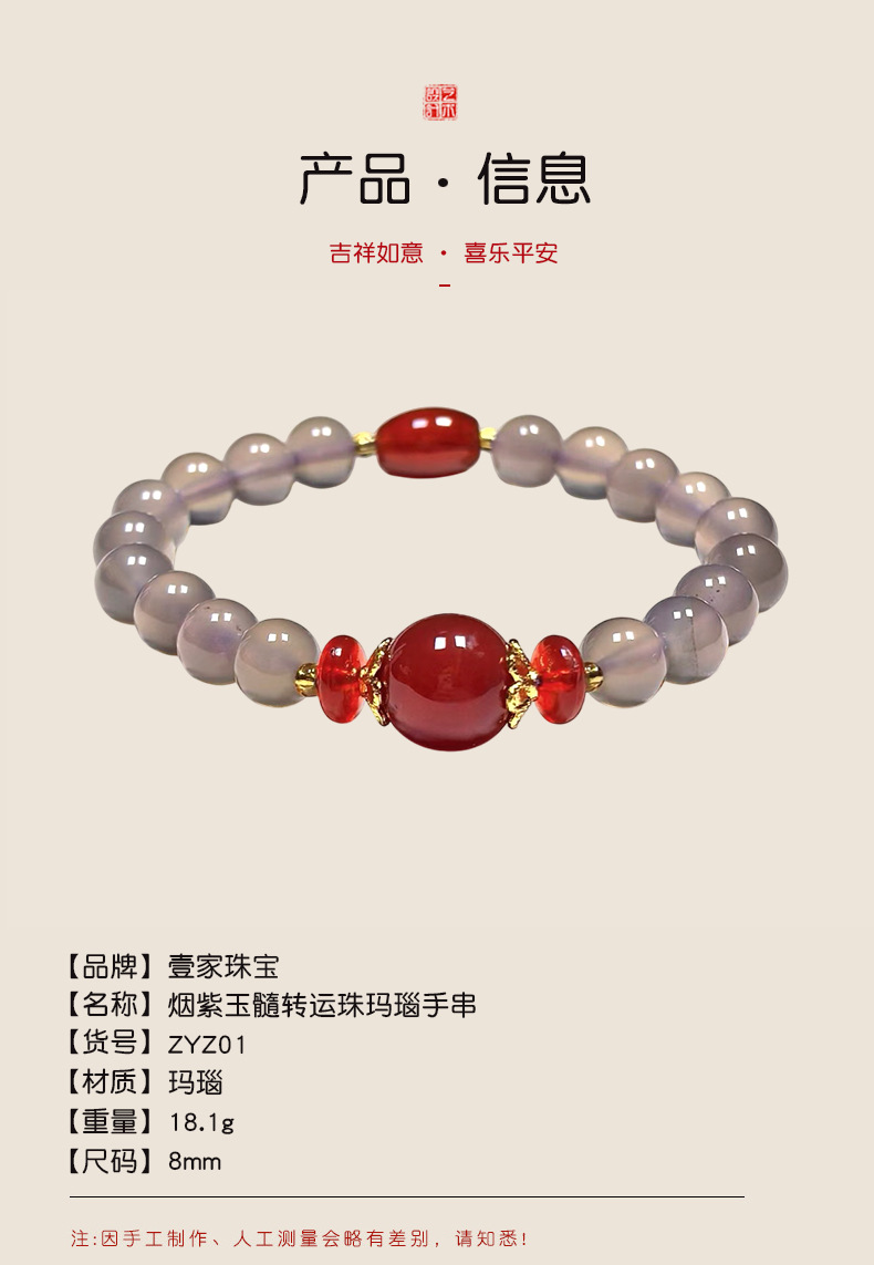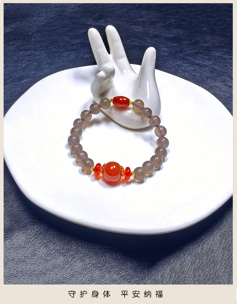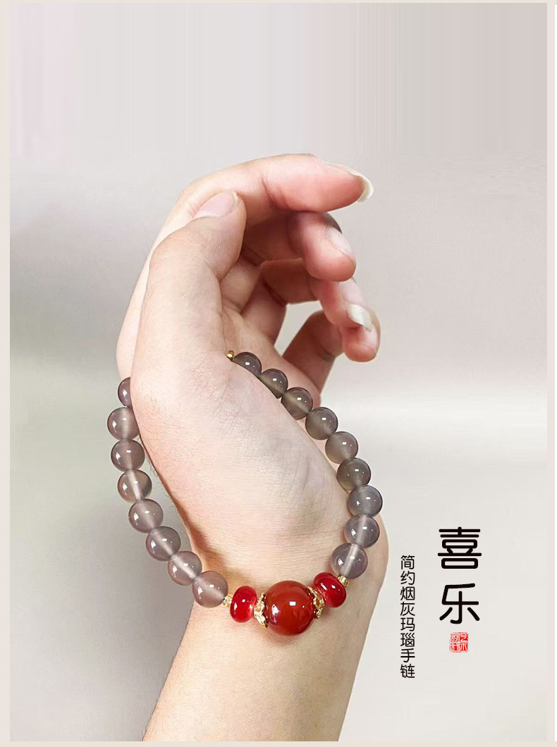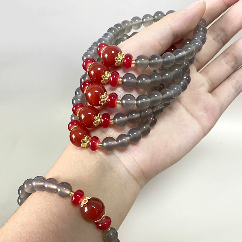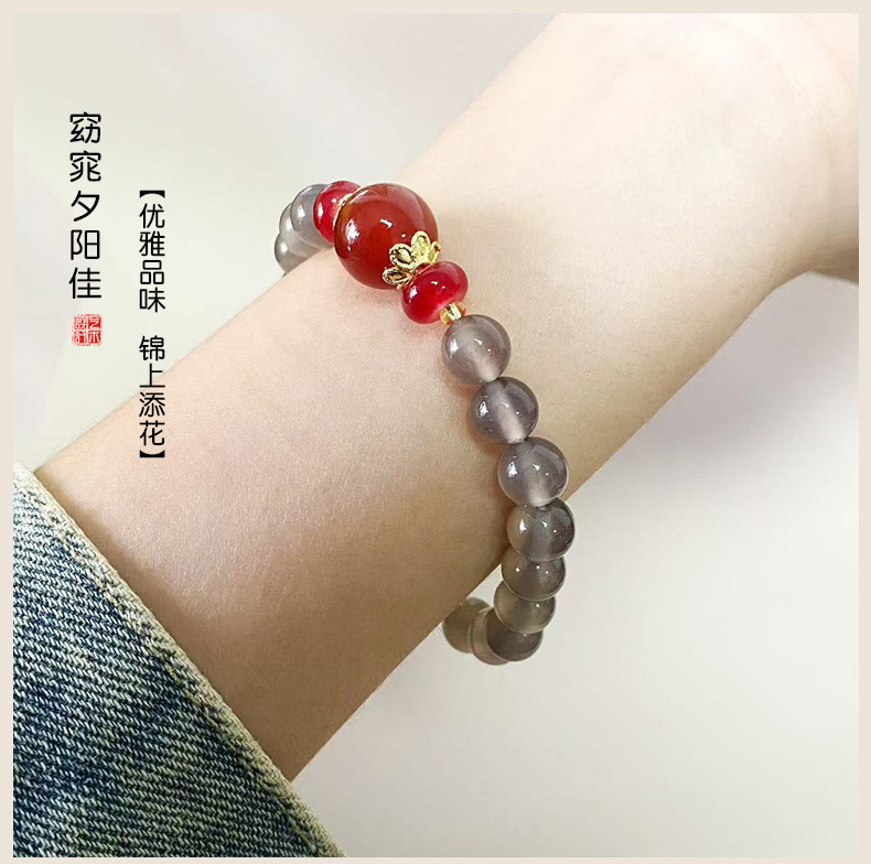 Натуральный агат ручной дым фиолетовый халцедон красный агат ручной стиль ретро китайский ветер бус браслет оптовая продажа