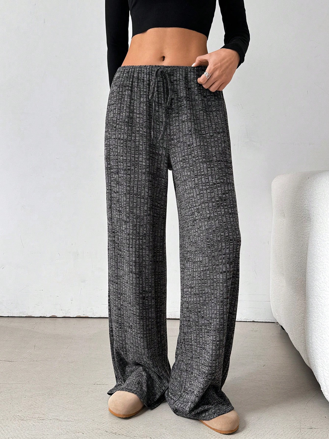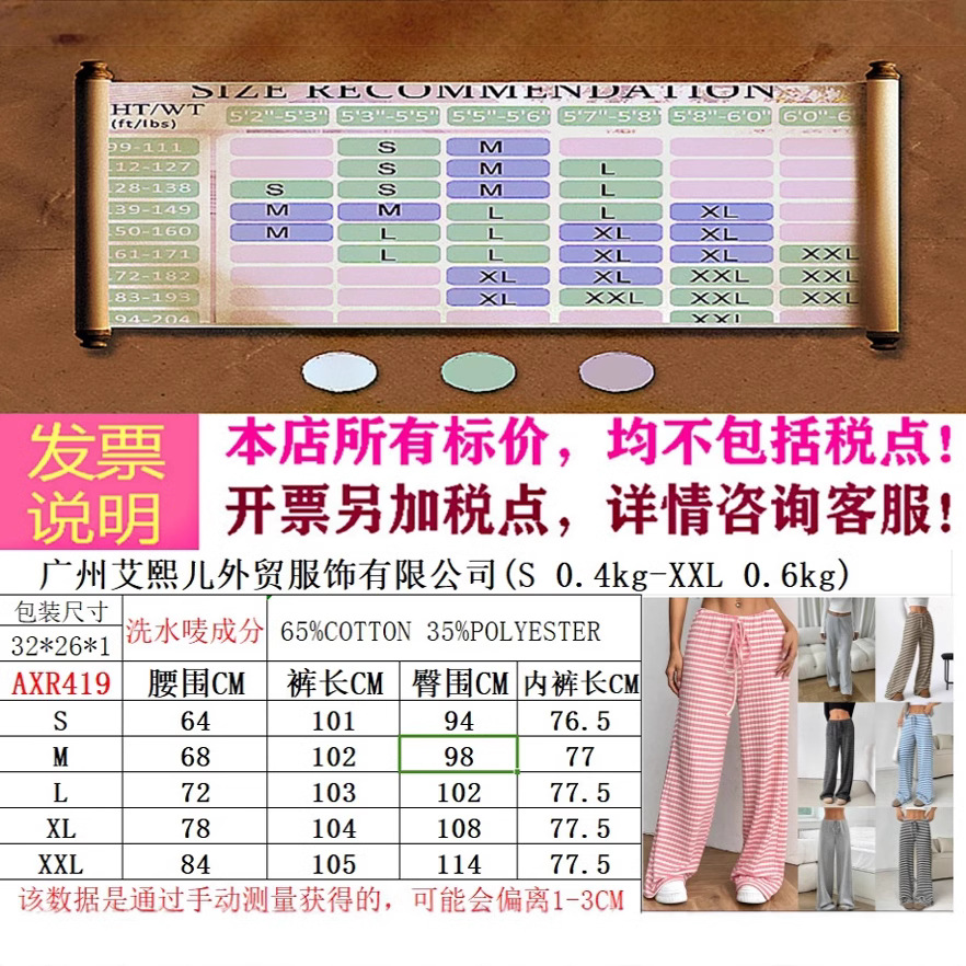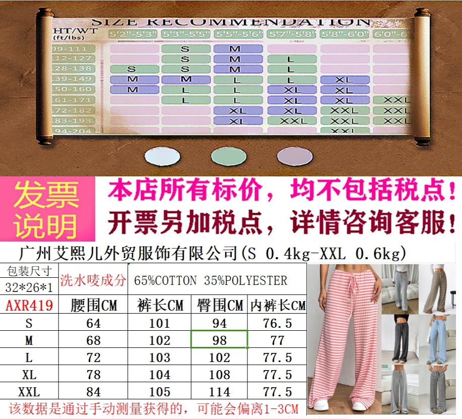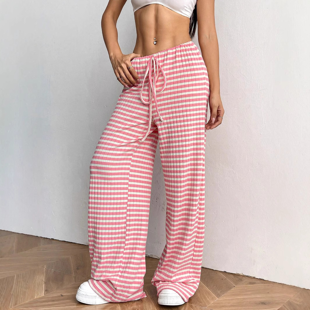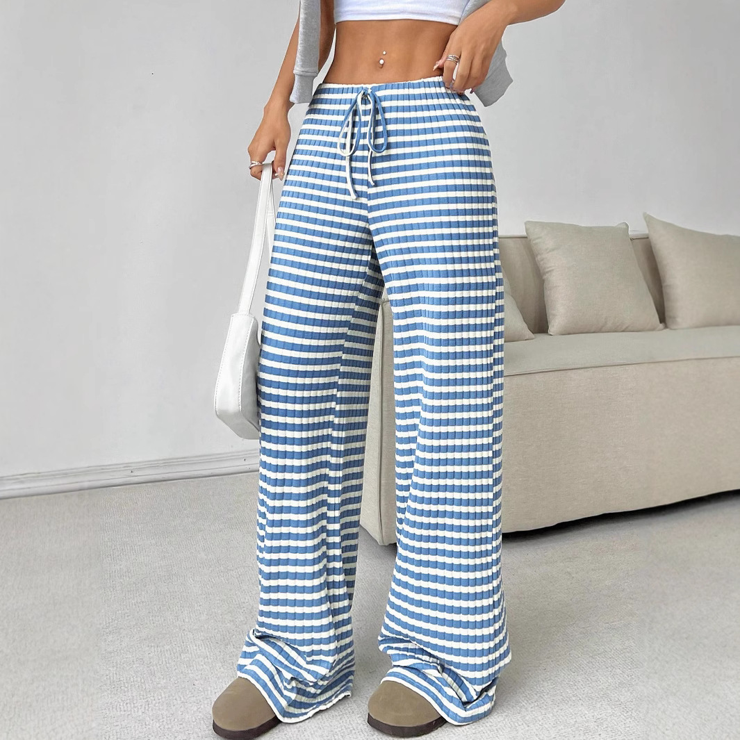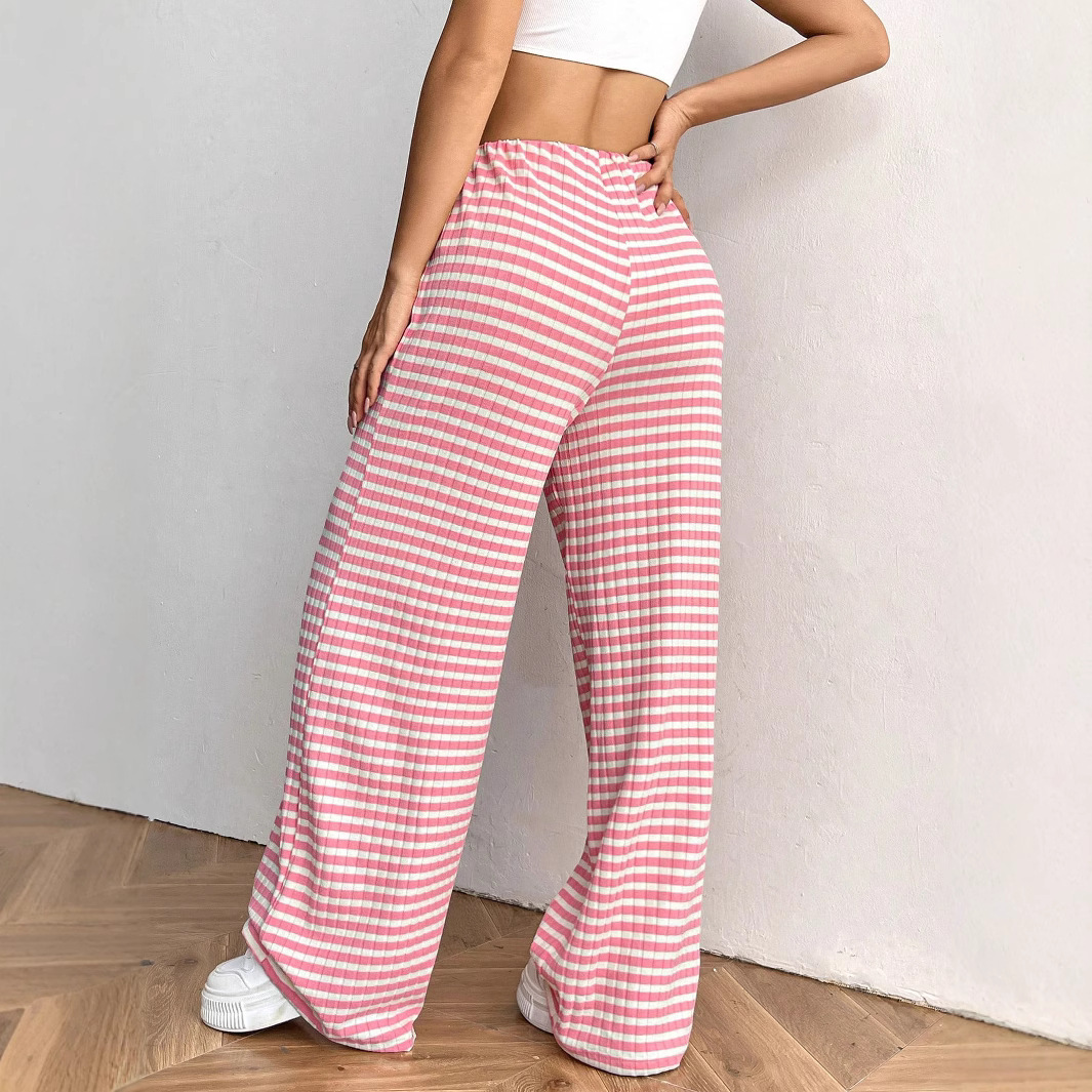 2024 осень и зима Amazon Европа и США трансграничные женские новые повседневные полоски сплошной цвет резиновые троски хлопковые прямые брюки