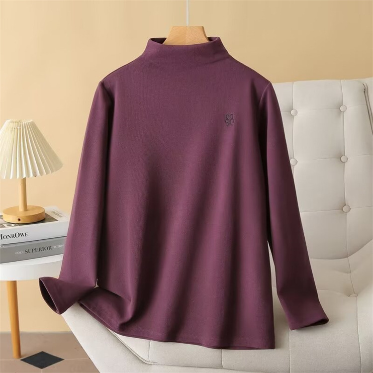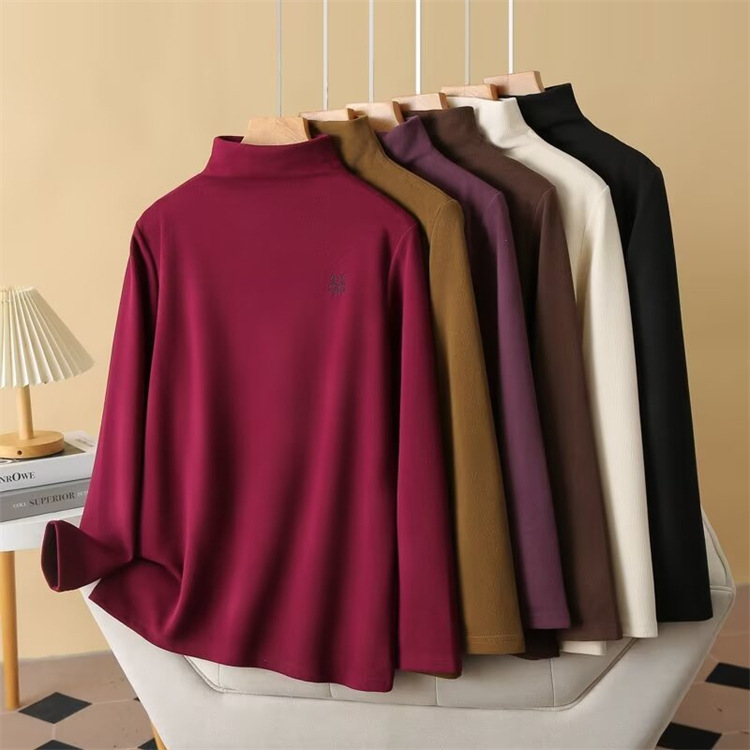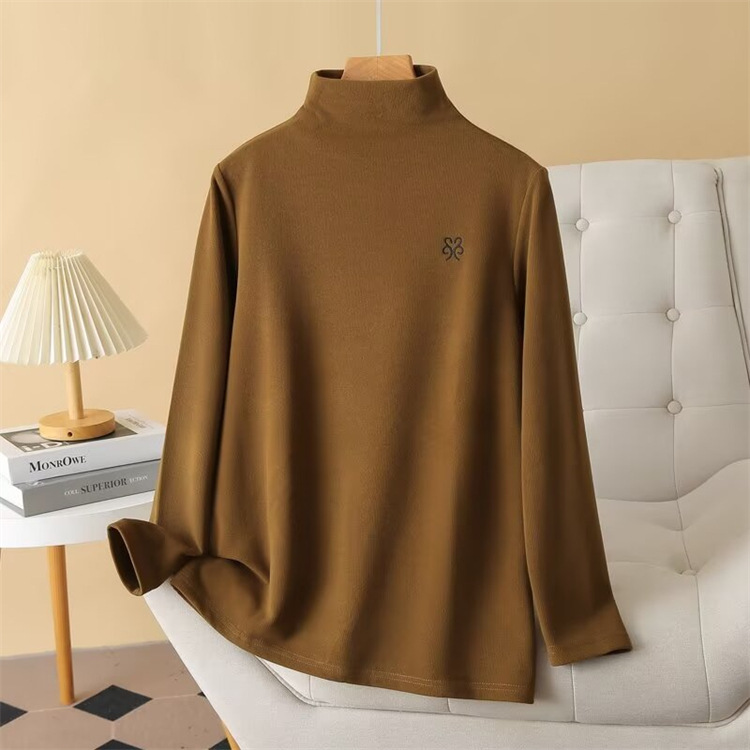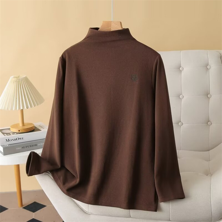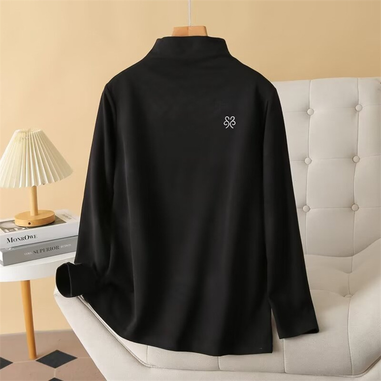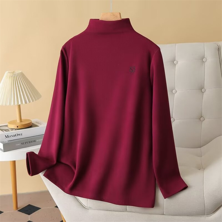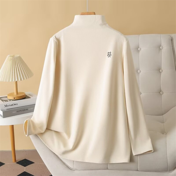 Женская одежда большого размера 2024 осенью и зимой толстая сестра дикий толстый полувысокий воротник вышивка нижняя рубашка 970