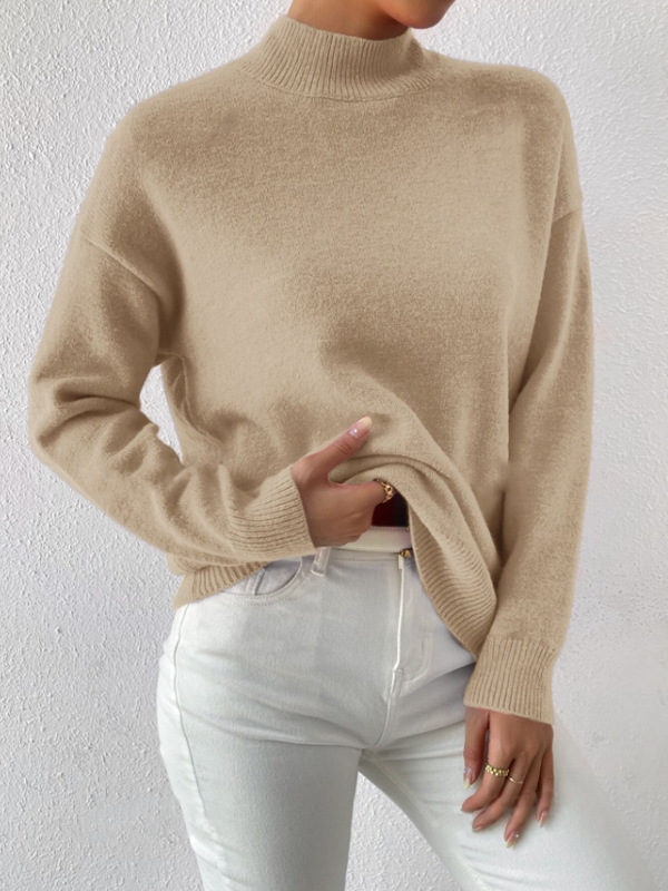 Осенне-зимний пуловер с полуводолазкой, свитер с длинными рукавами Amazon, трансграничная внешняя торговля, женский модный однотонный свободный вязаный топ