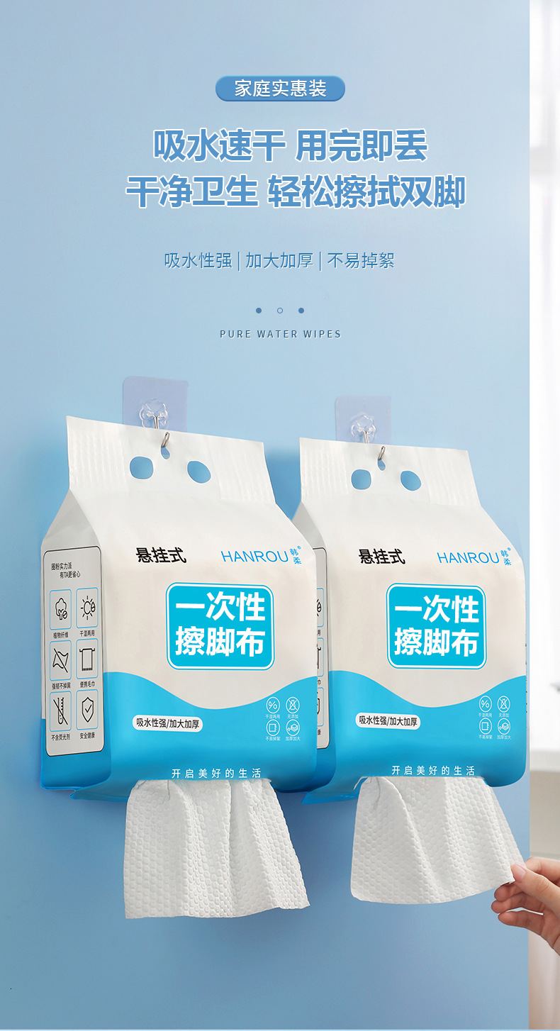 Чистка бумаги для ног Оптовая бытовая ванна для ног полотенце для ног Одноразовая утолщение влагопоглощающая сухая и влажная ткань для ног