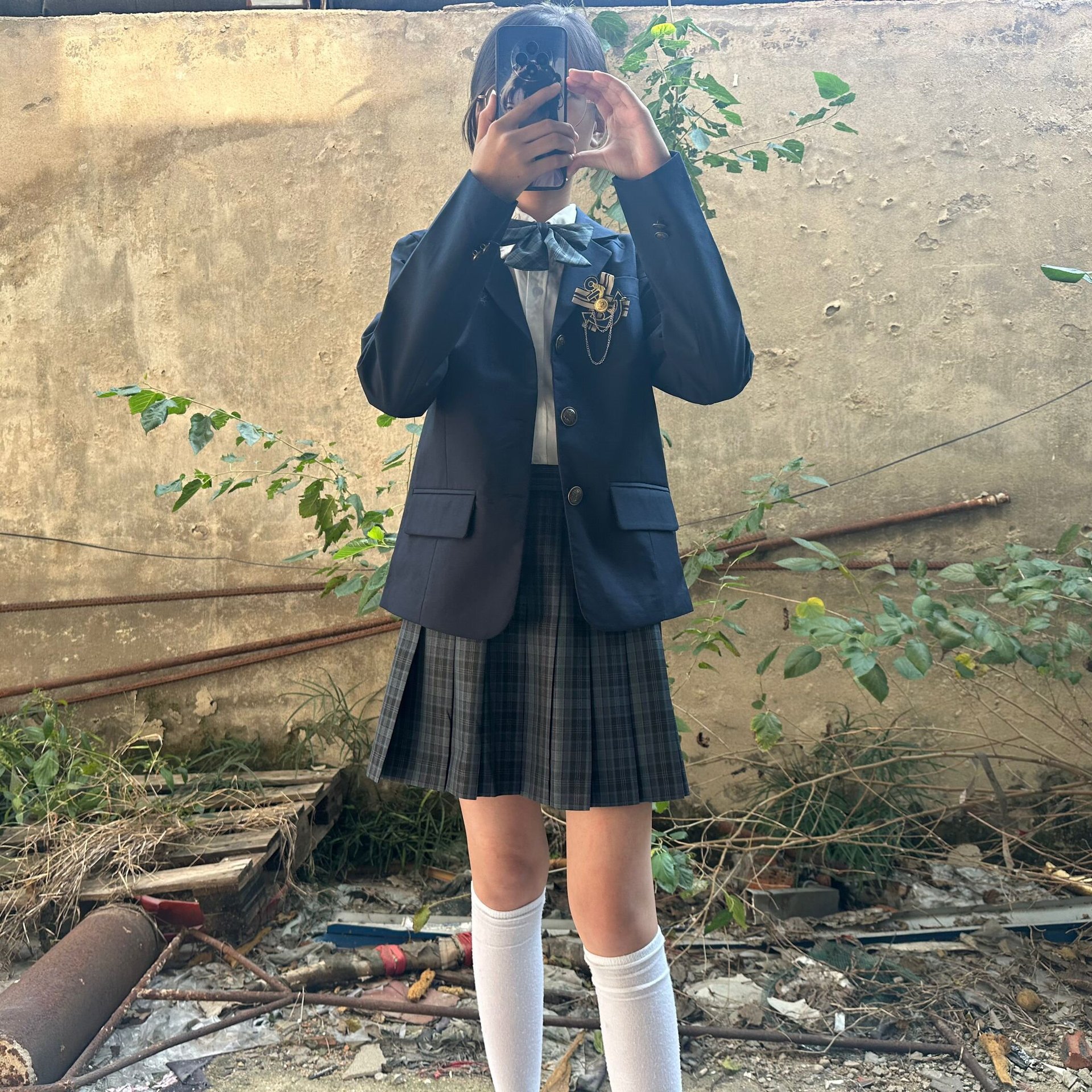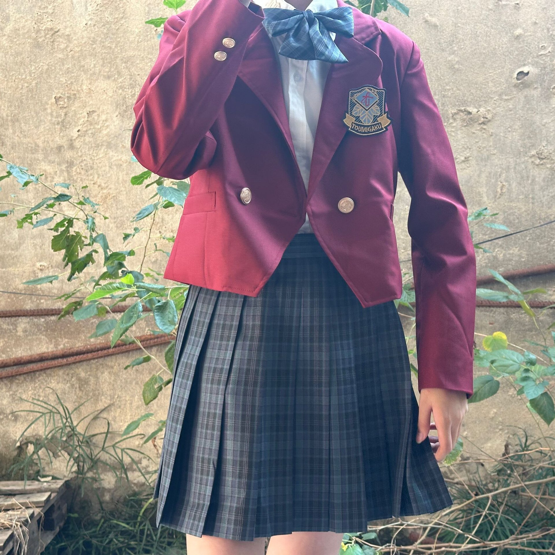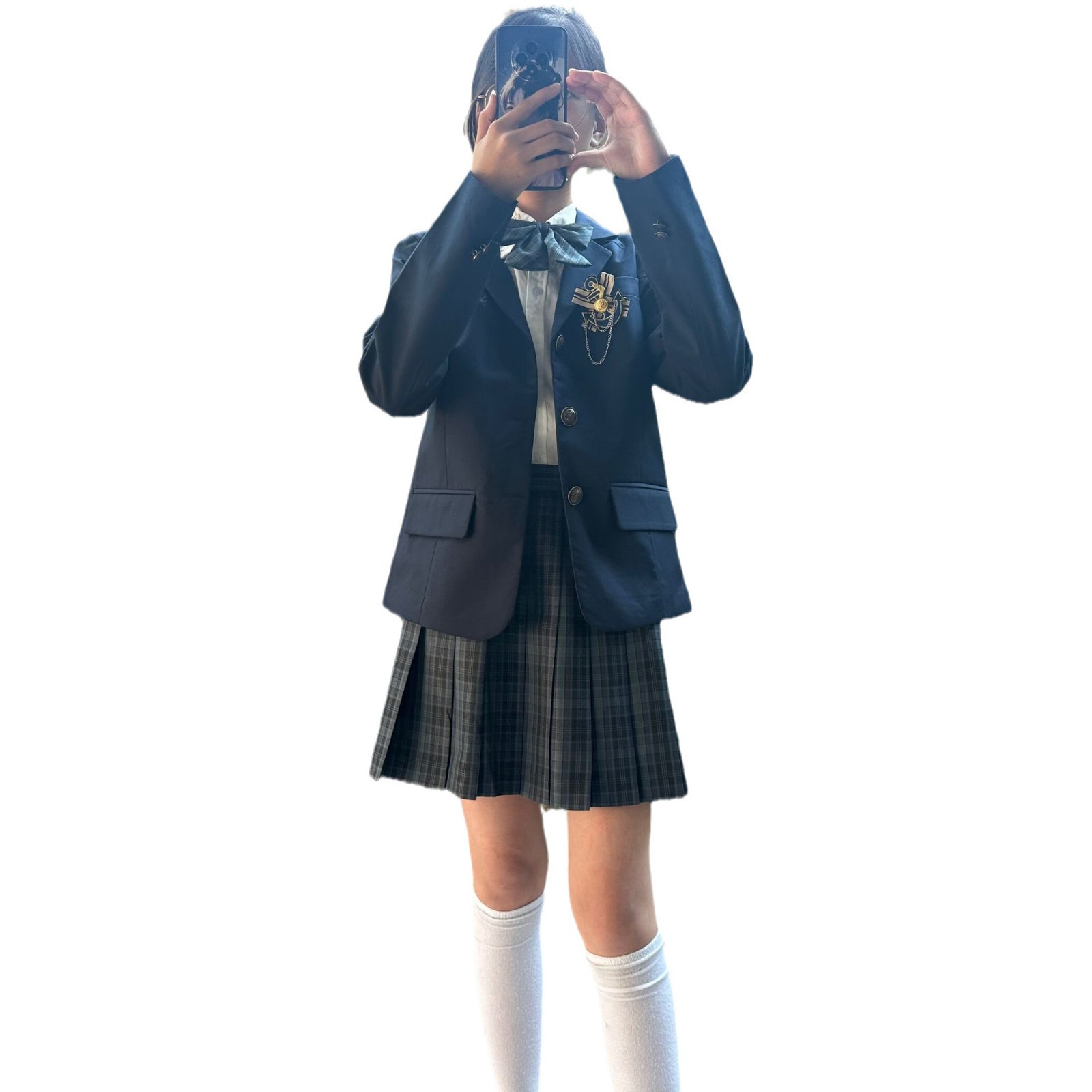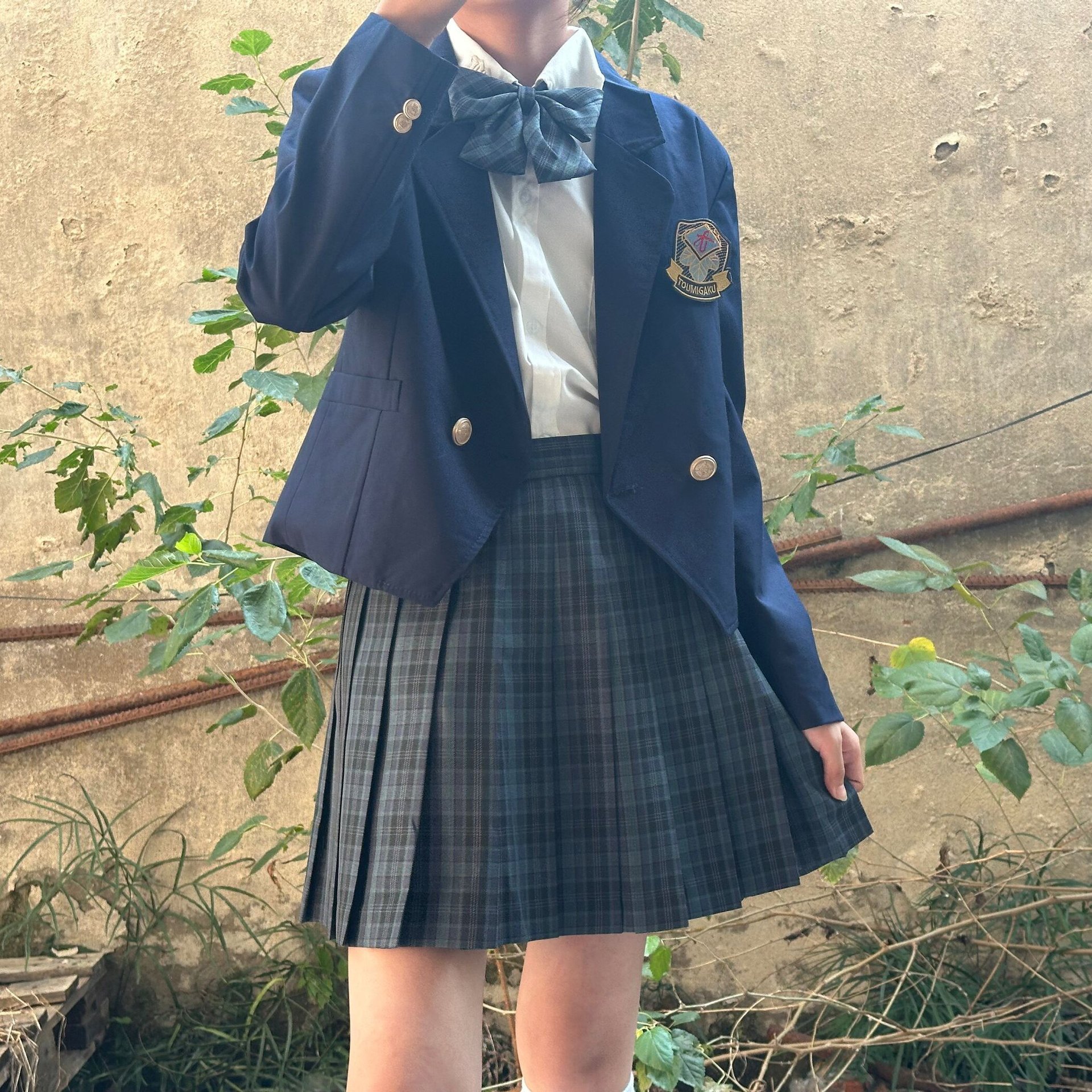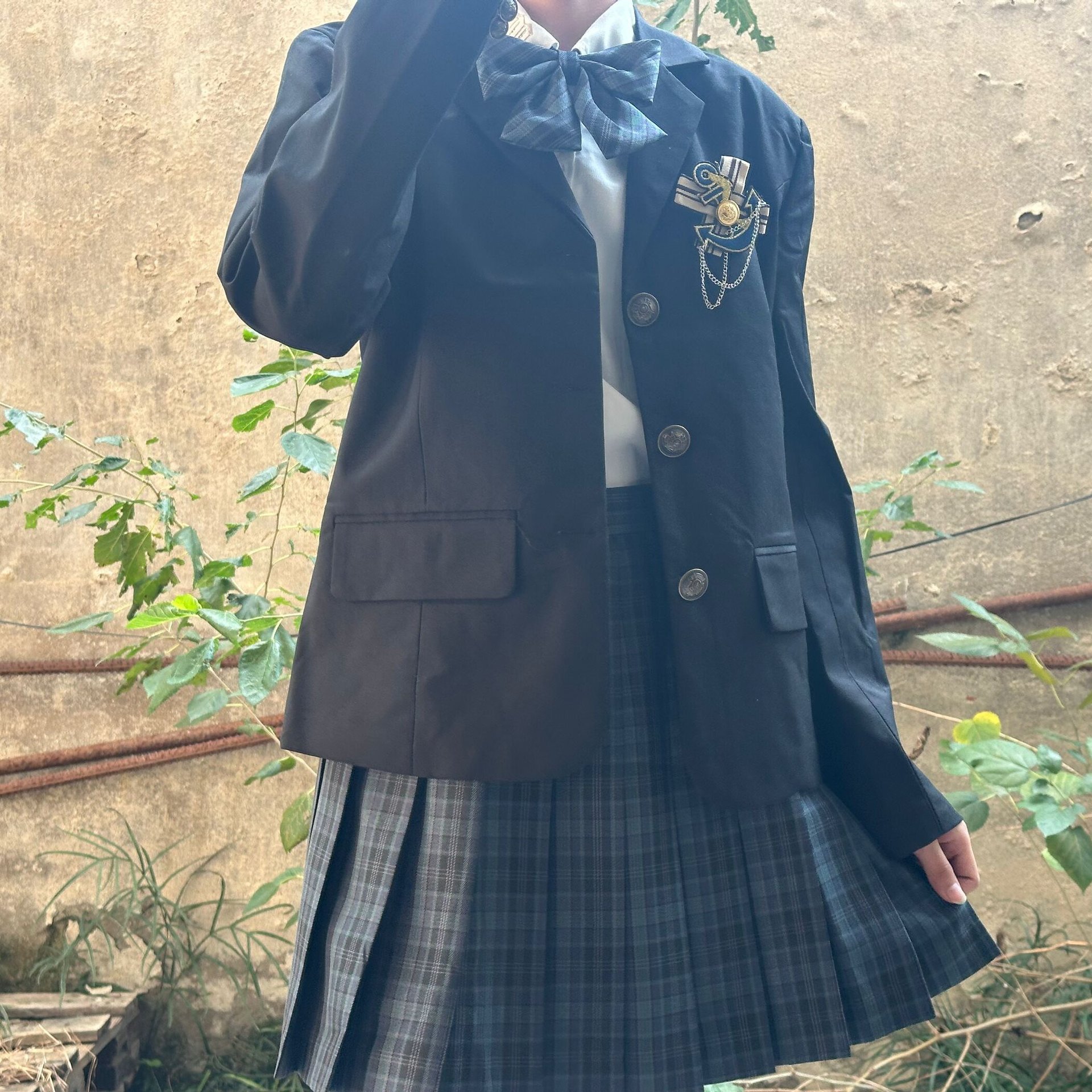 Черная юбка на одной пуговице + клетчатая юбка из морских водорослей + белая рубашка с длинными рукавами + галстук-бабочка + вышитый значок; Темно-синяя юбка на одной пуговице + клетчатая юбка из морских водорослей + белая рубашка с длинными рукавами + галстук-бабочка + вышитый значок; Бордовая юбка на одной пуговице + клетчатая юбка из морских водорослей + белая рубашка с длинными рукавами + галстук-бабочка + вышитый значок; Светло-серая одна пуговица + клетчатая юбка из морских водорослей + белая рубашка с длинными рукавами + галстук-бабочка + вышитый значок; Черная клетчатая юбка на 2 пуговицы + морская водоросли + белая рубашка с длинными рукавами + галстук-бабочка + значок-цепочка; Черная клетчатая юбка с 3 пуговицами + белая рубашка с длинными рукавами + галстук-бабочка + значок-цепочка; Темно-синий 2 пуговицы + клетчатая юбка из морских водорослей + белая рубашка с длинными рукавами + галстук-бабочка + значок-цепочка; Темно-синяя клетчатая юбка на 3 пуговицах + клетчатая юбка из морских водорослей + белая рубашка с длинными рукавами + галстук-бабочка + значок-цепочка; Светло-серая клетчатая юбка на 3 пуговицах + клетчатая юбка из морских водорослей + белая рубашка с длинными рукавами + галстук-бабочка + значок-цепочка