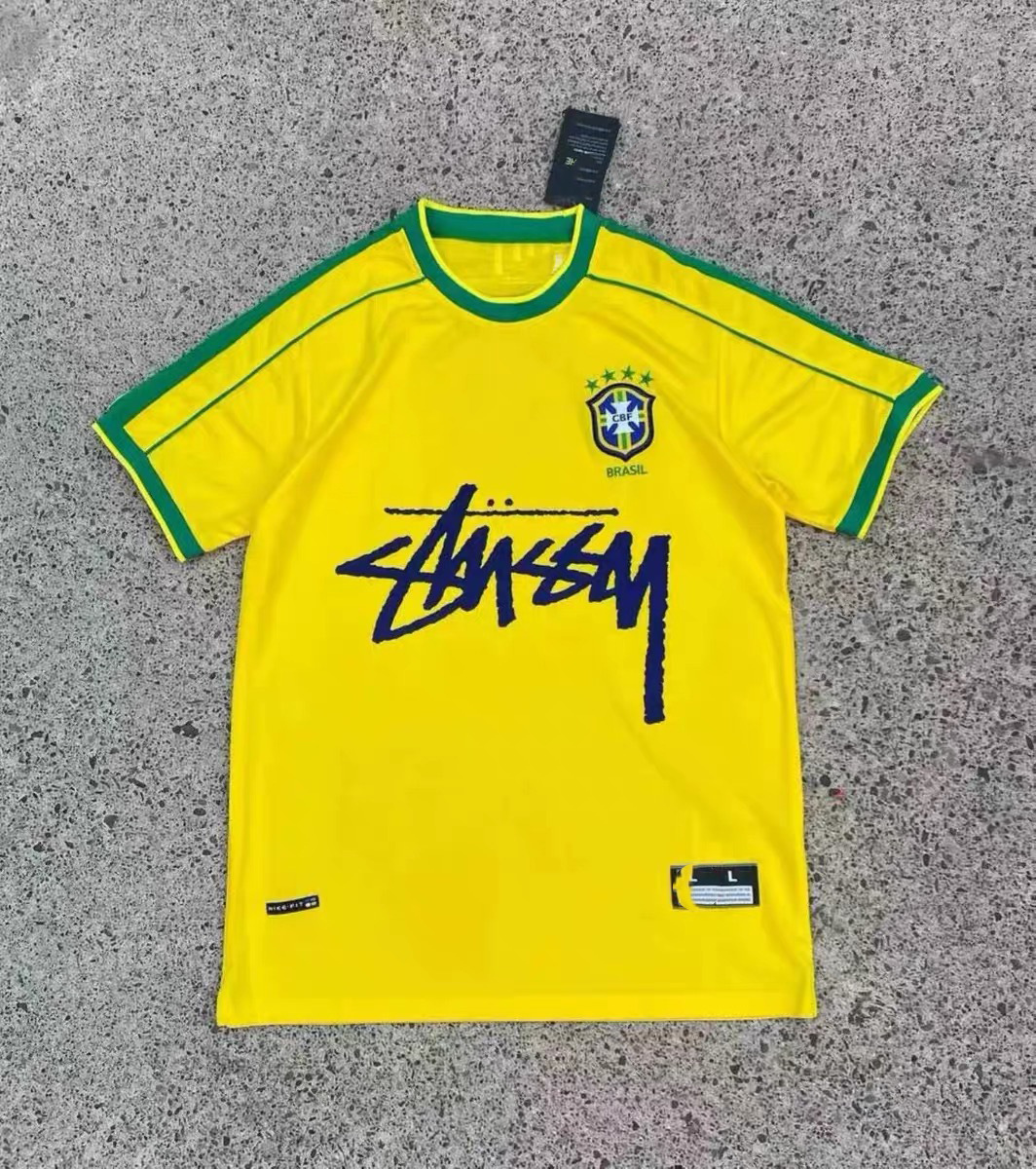 Футбольная форма сборной Бразилии для Кубка мира 2022 года, коллаборация с Италией, к 125-летию, с коротким рукавом, одинарная футболка команды
