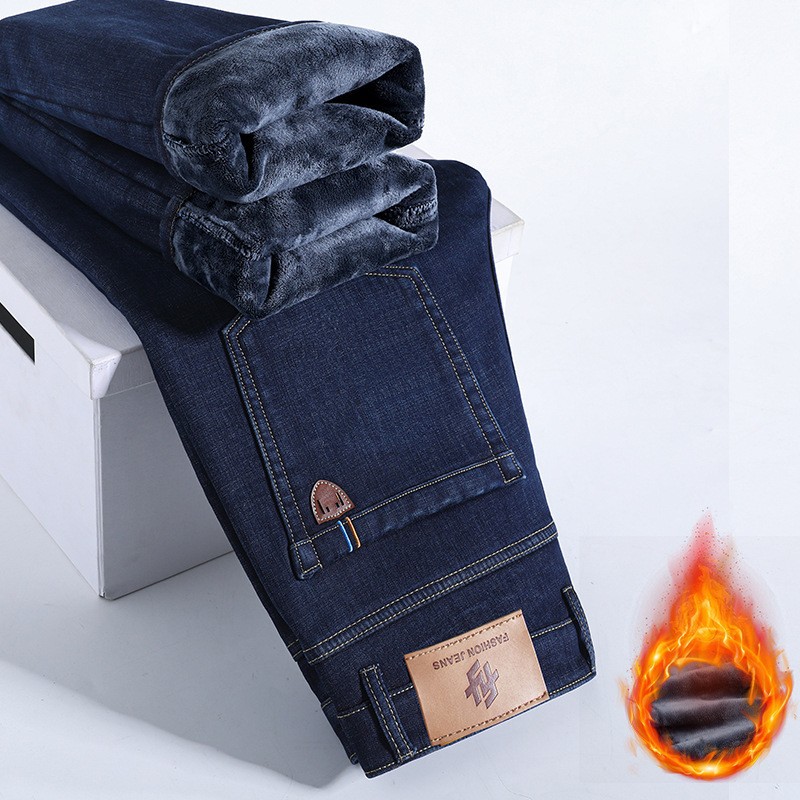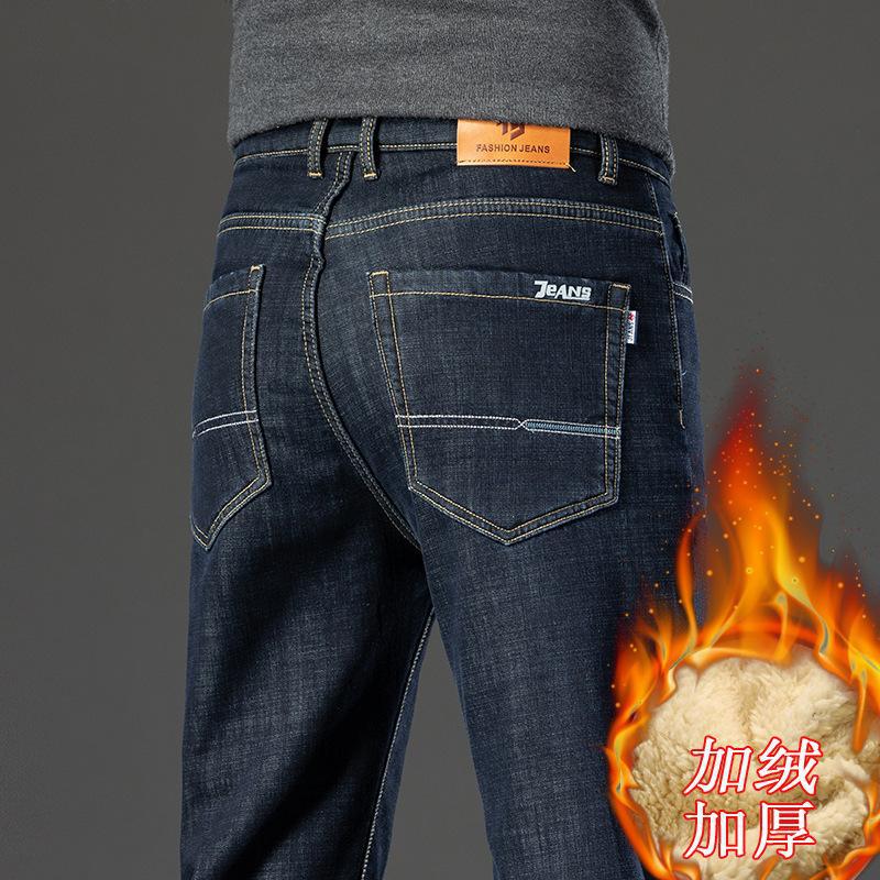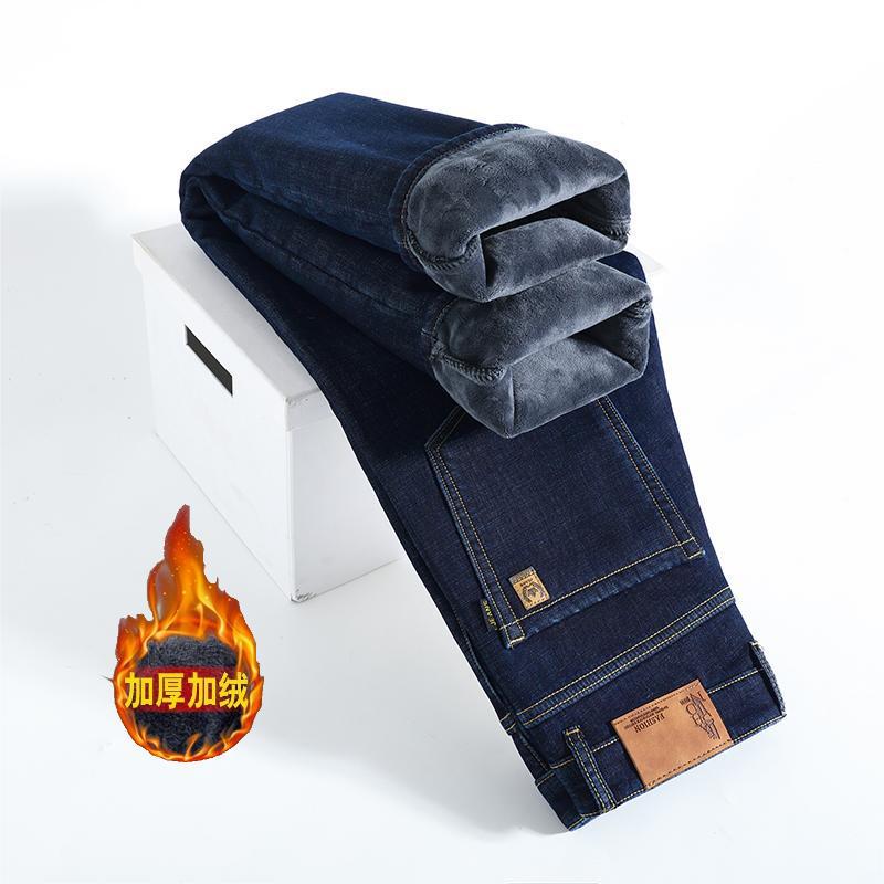 Кашемир плюс бархат мужские джинсы мужские зимние свободные прямые трубочки осенние зимние толстые теплые повседневные мужские брюки