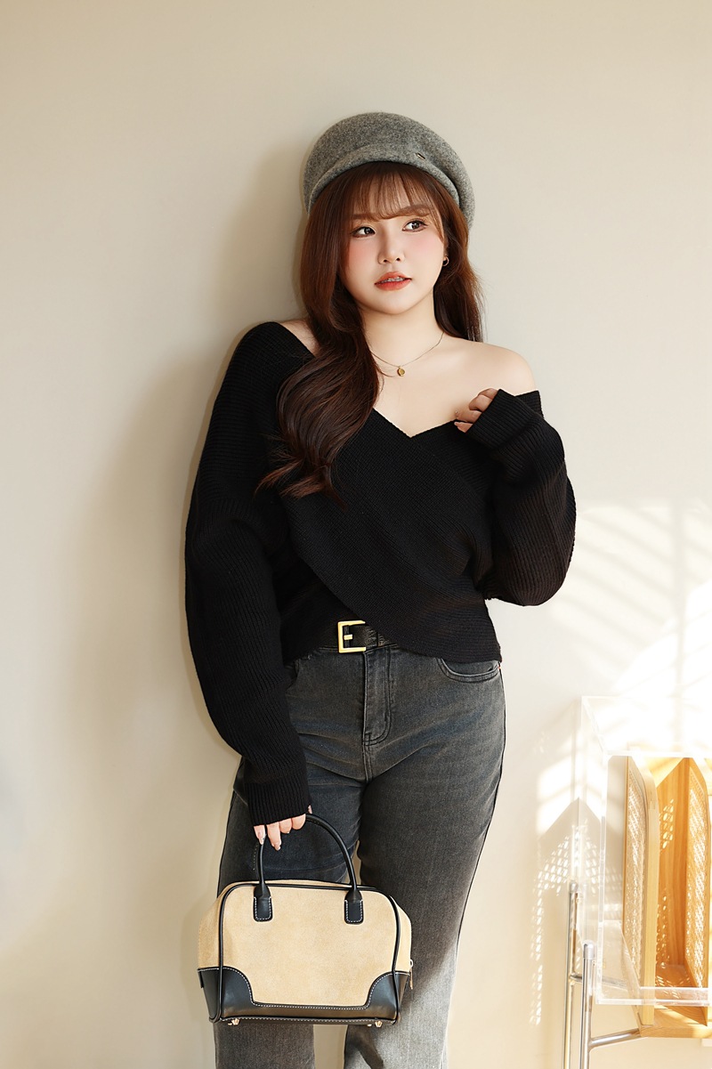 Сянь крест V-образный вырез Нежный свитер Yin Yu Sister Run 8218