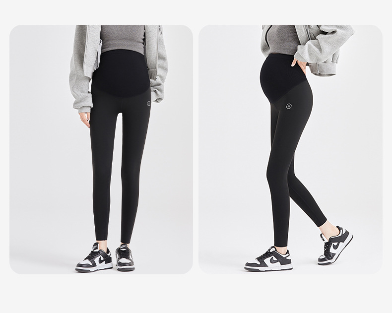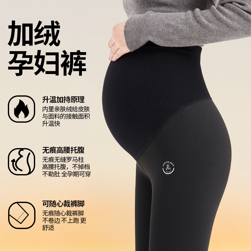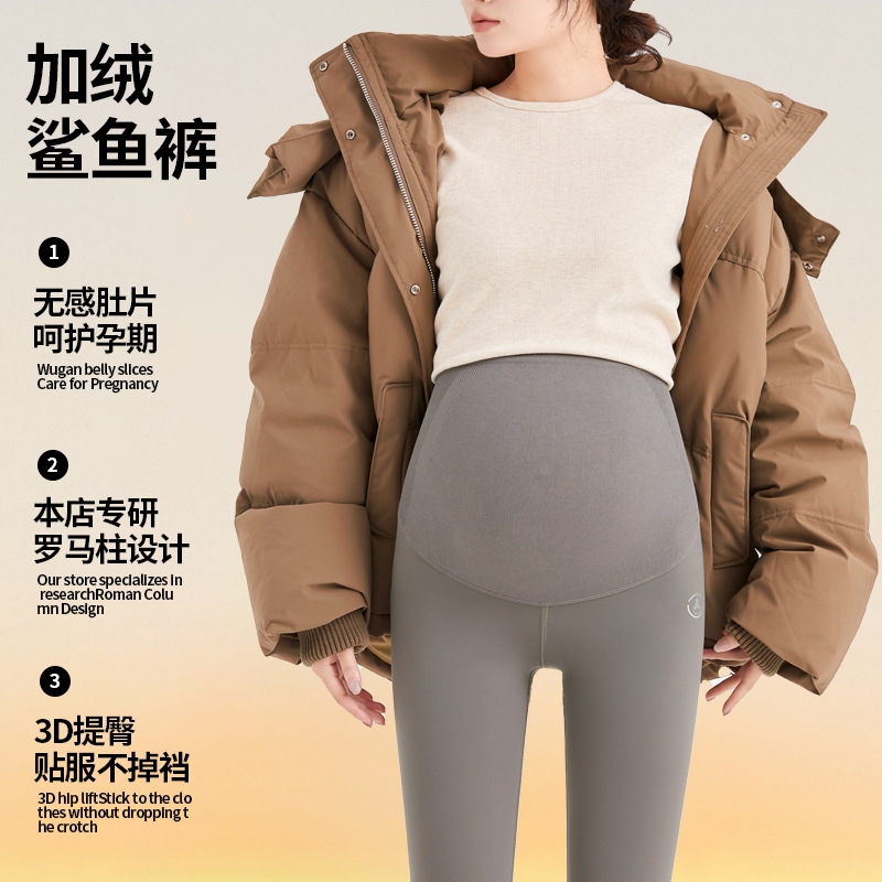Материнские леггинсы Плюшевые толстые осенние и зимние новые кожаные брюки акулы большие размеры с высокой талией теплые брюки для беременных брюки с девятью укороченными брюками