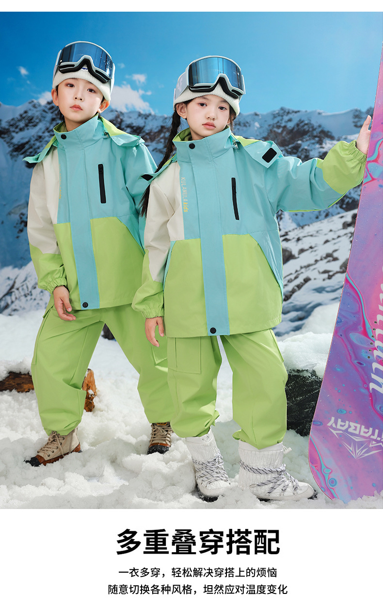 Новый детский лыжный костюм для мальчиков и девочек утолщение и тепло DuPont три куртки для учащихся начальной школы осенью и зимой
