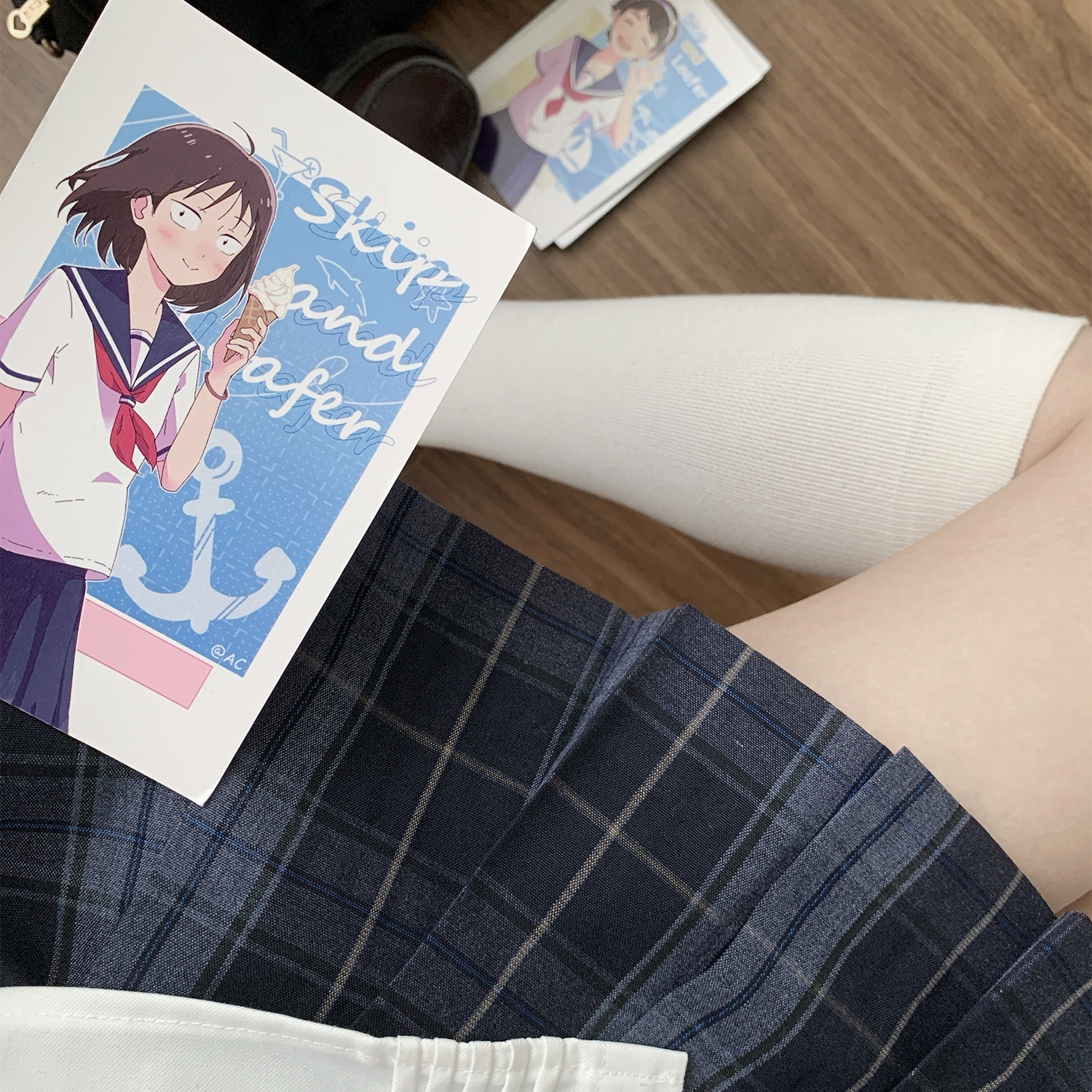 Оригинальная юбка в клетку JK [Hui], аутентичная школьная форма, юбка-шорты с высокой талией, черно-голубая клетчатая юбка в школьном стиле для женщин