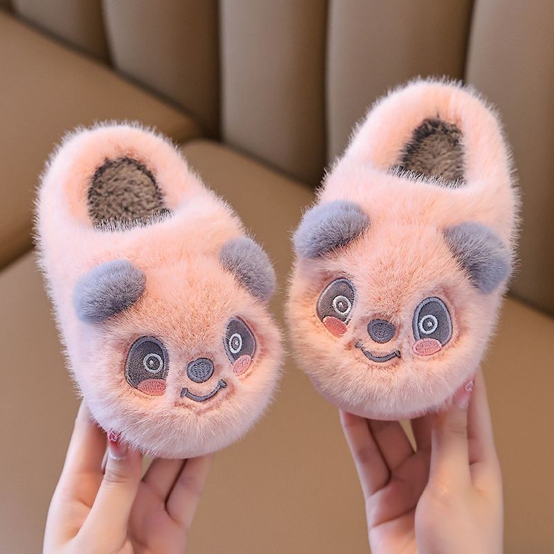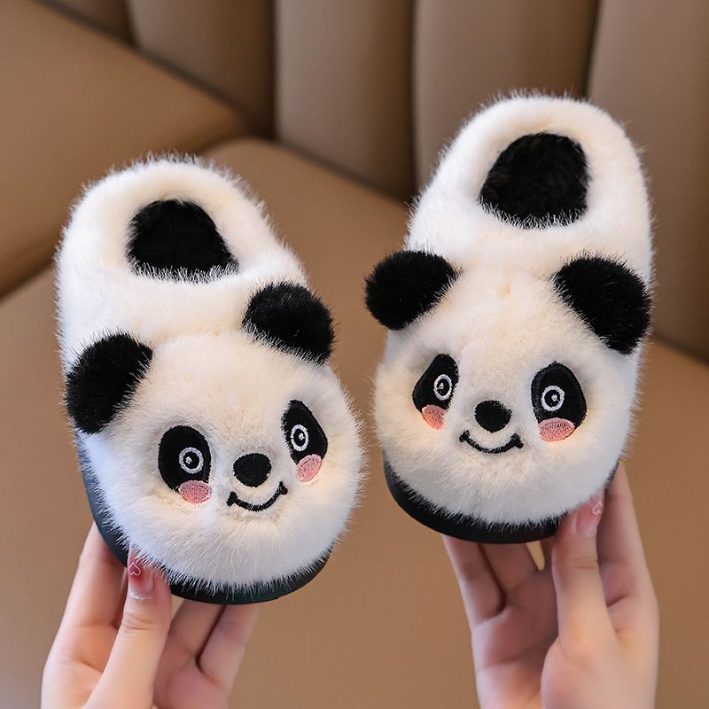 [Родитель-ребенок] Дети, мужчины и женщины, дети, дети, мультипликационная панда, мягкое дно, теплые и нескользкие домашние хлопчатобумажные тапочки зимой