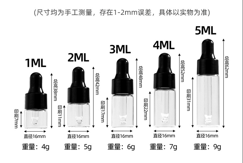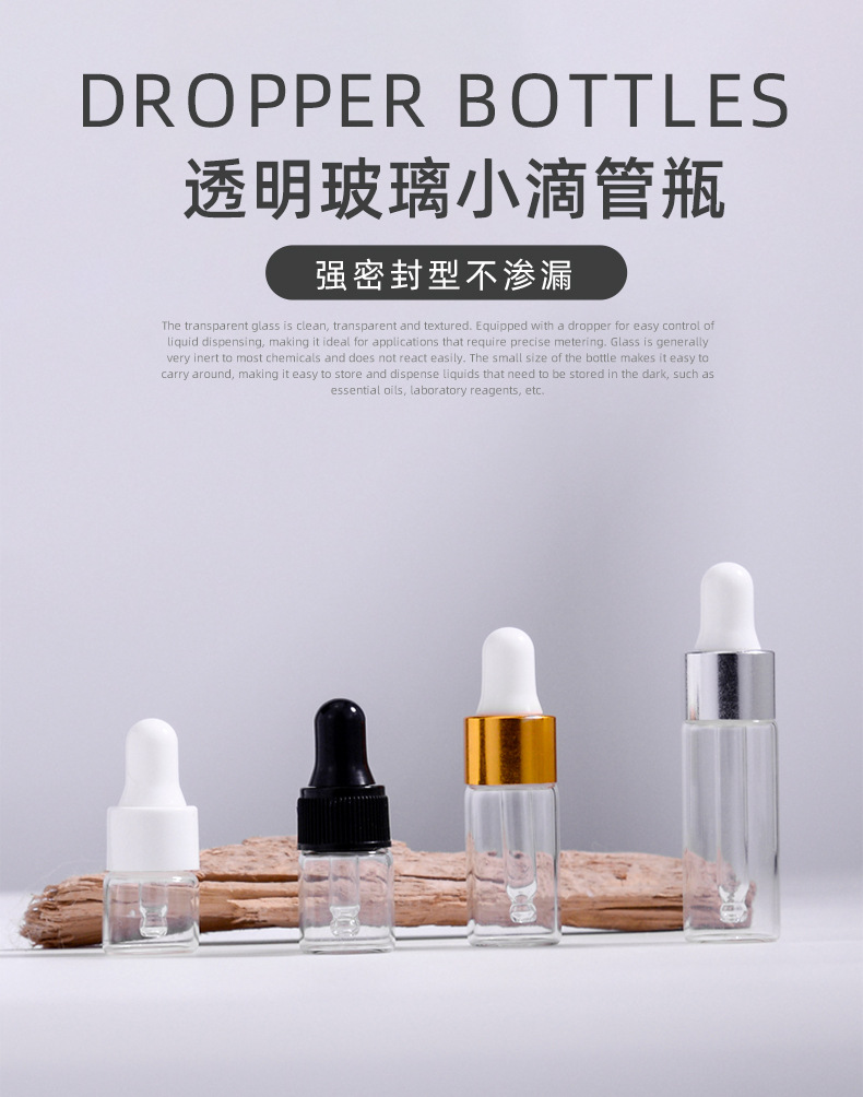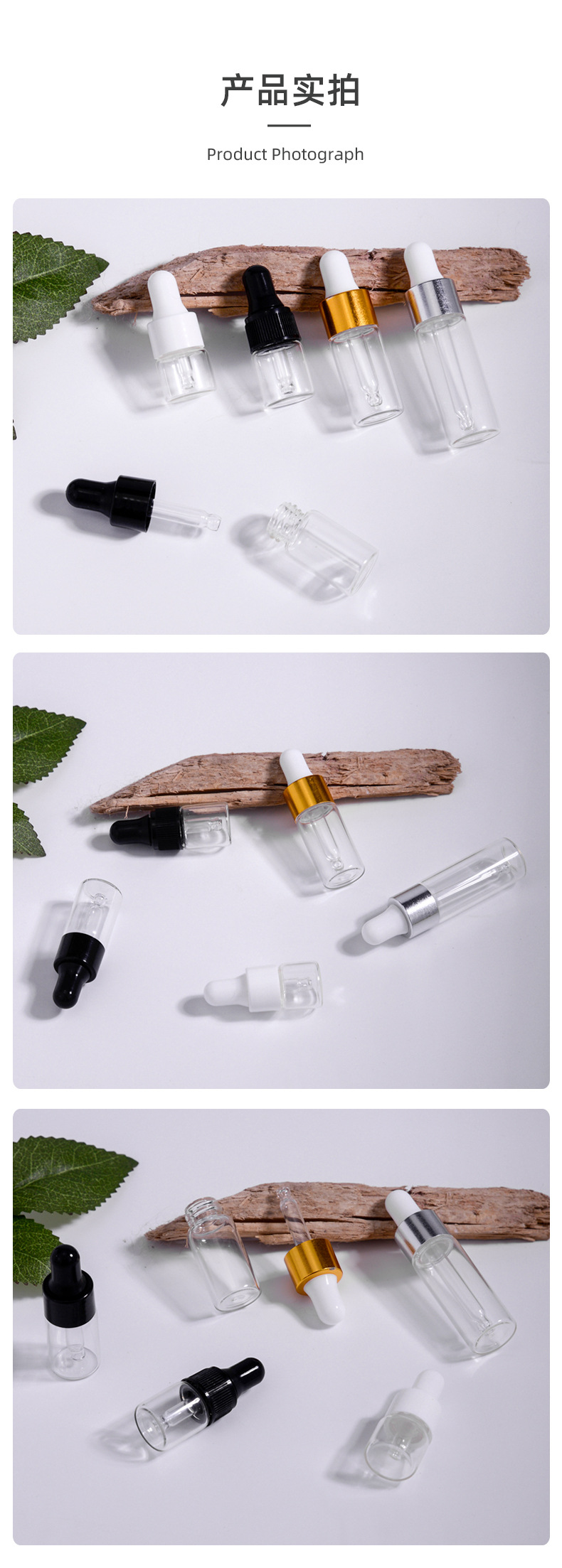 Прозрачная стеклянная бутылочка с пипеткой 1 мл-5 мл для эфирных масел, косметики, пробников, с винтовой крышкой, маленькая бутылочка