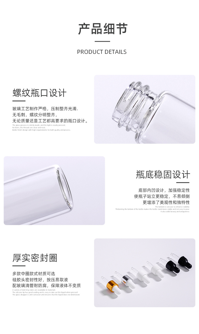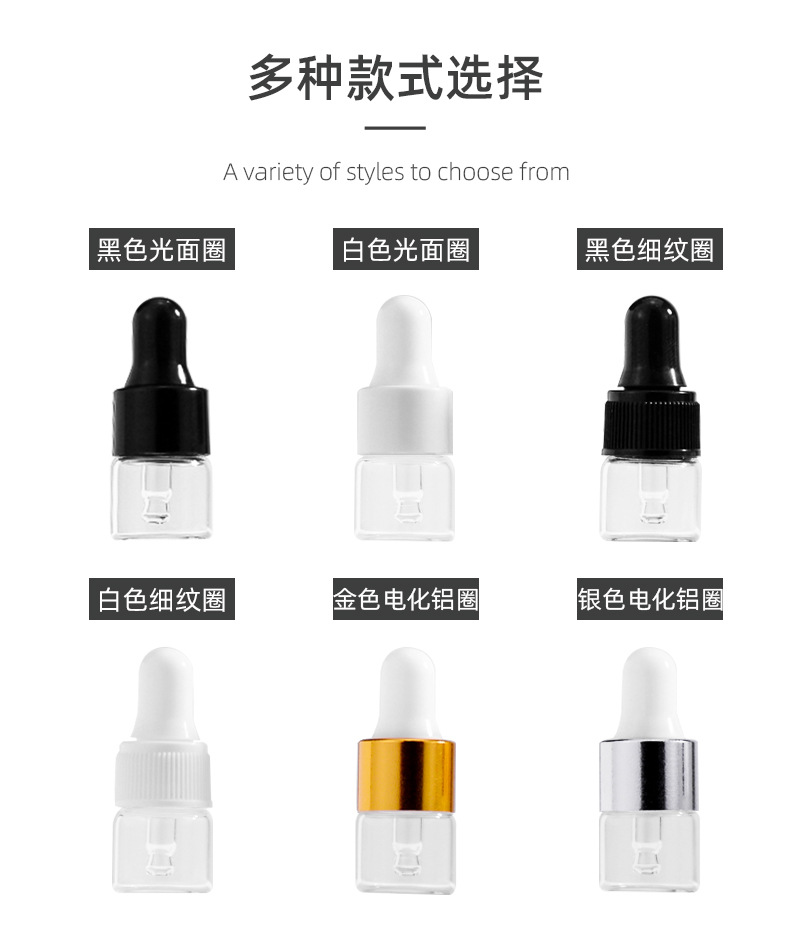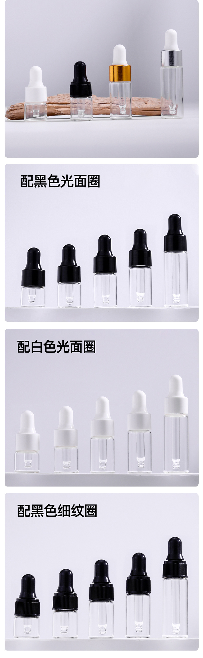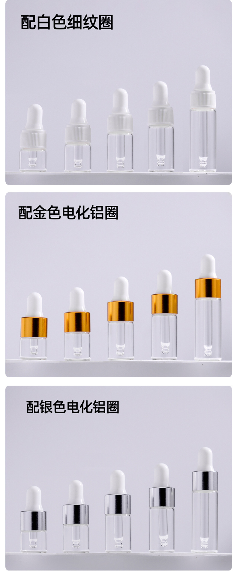 Прозрачный флакон + кольцо из анодированного золота алюминия + белый пластиковый наконечник + капельница.; Прозрачный флакон + белое глянцевое кольцо + белый пластиковый наконечник + капельница.; Прозрачный флакон + черное глянцевое кольцо + черный пластиковый наконечник + капельница.; Прозрачный флакон + тонкие черные линии + черный пластиковый наконечник + пипетка; Прозрачный флакон + тонкие белые линии + белый пластиковый наконечник + капельница.; Прозрачный флакон + кольцо из анодированного серебра + белый пластиковый наконечник + капельница.