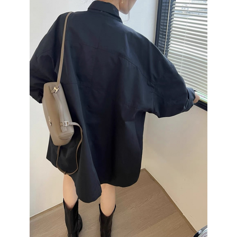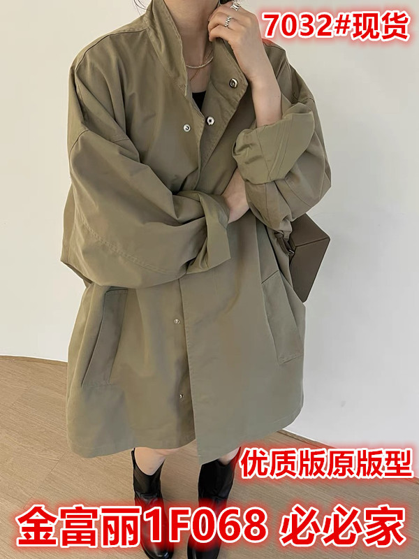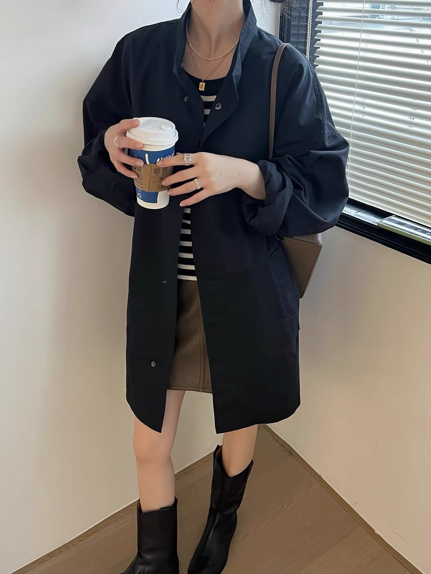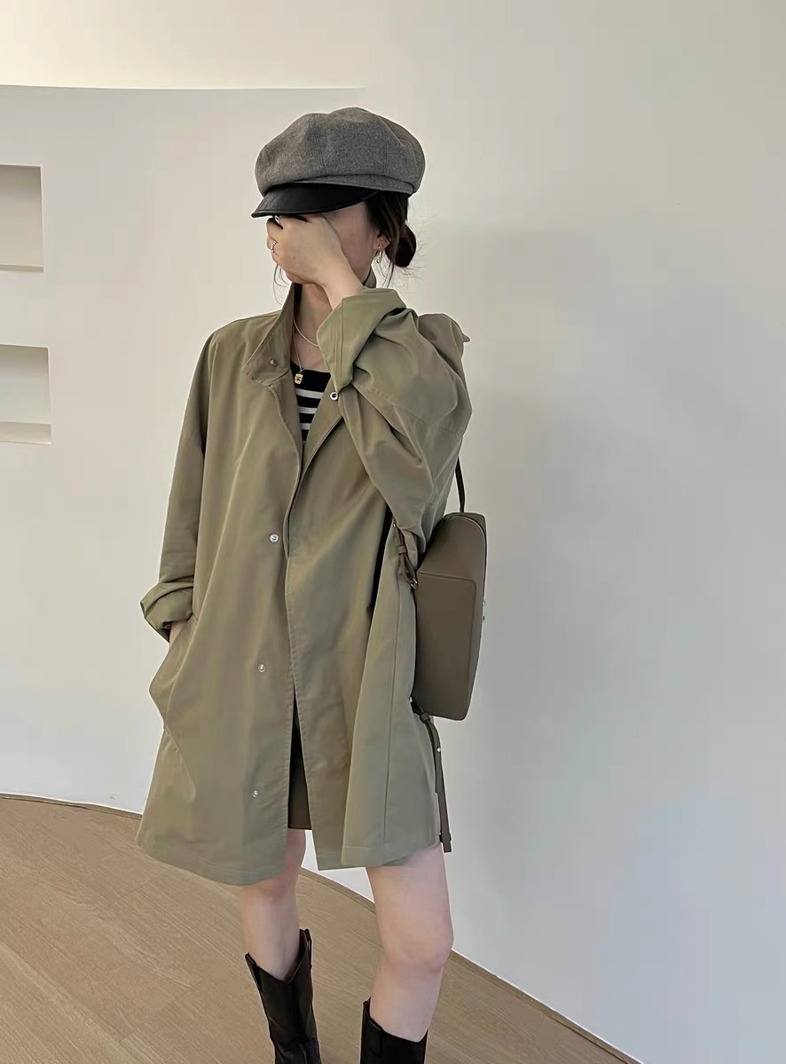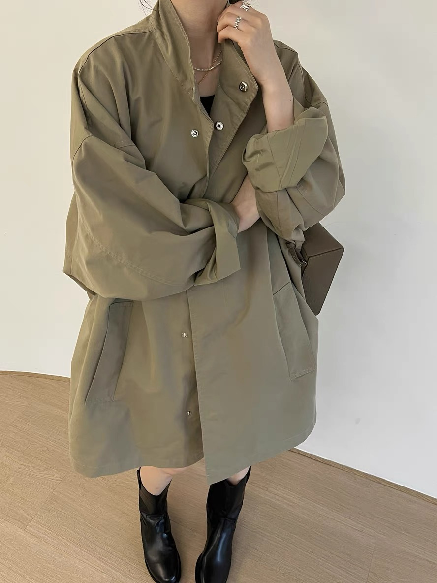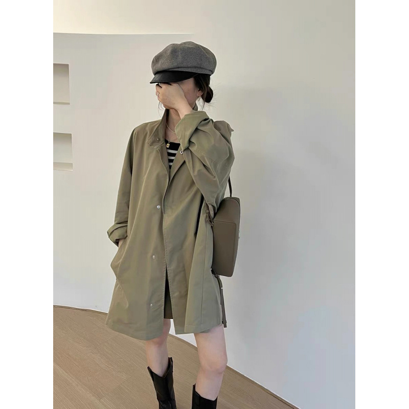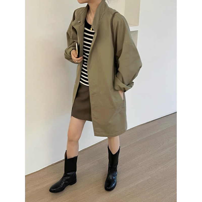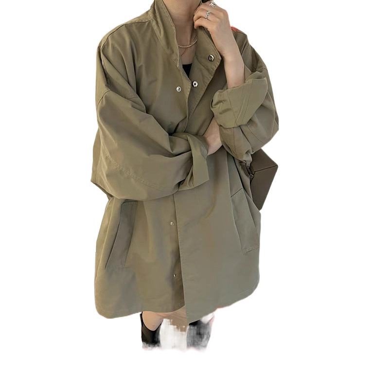 2024 Осенняя одежда Корейский чик тонкий ленивый ветер стоячий воротник свободный повседневный длинный рукав средний длинный плащ пальто для женщин