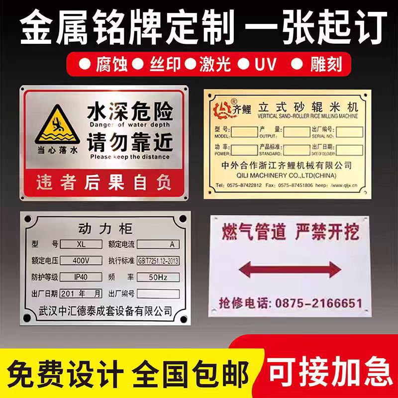 Индивидуальные металлические таблички для машинного оборудования, коррозионностойкие шелкографические шильдики из меди и нержавеющей стали, электрические идентификационные таблички, предупреждающие знаки.