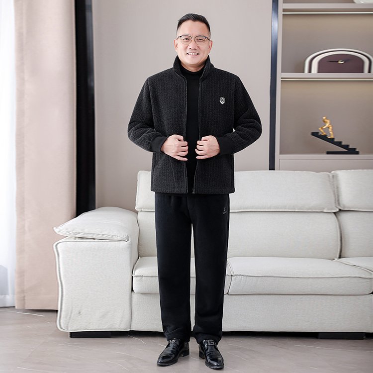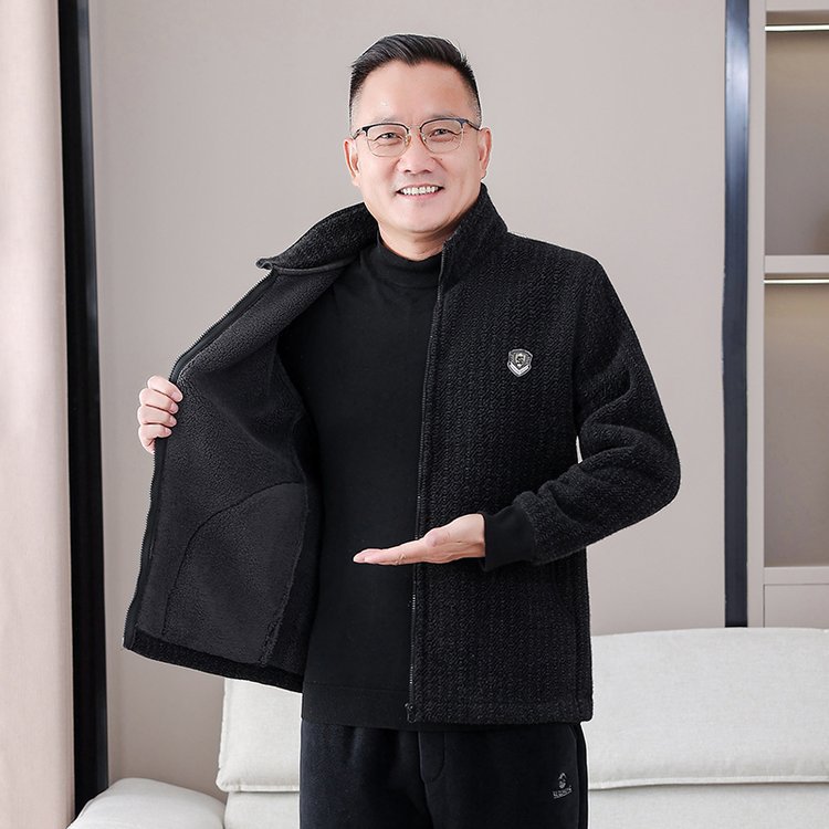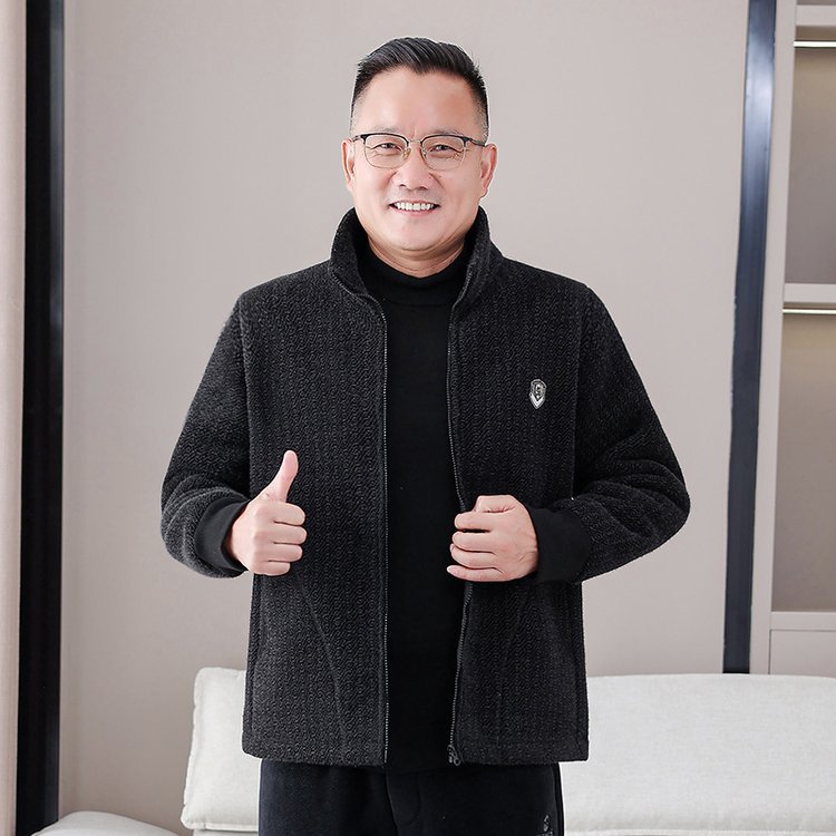 Среднего и пожилого возраста хлопчатобумажная мужская зимняя куртка с бархатом и утолщением, теплый большой размер свободный папа зимняя одежда дедушка пожилой хлопчатобумажная куртка