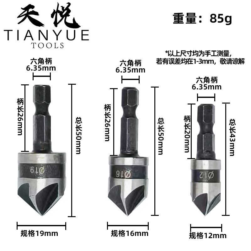3pcs шестигранная ручка пятиклинный флюгатор 90 градусов Перфоратор деревянный инструмент для удаления заусенцев