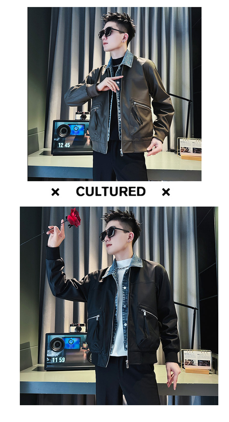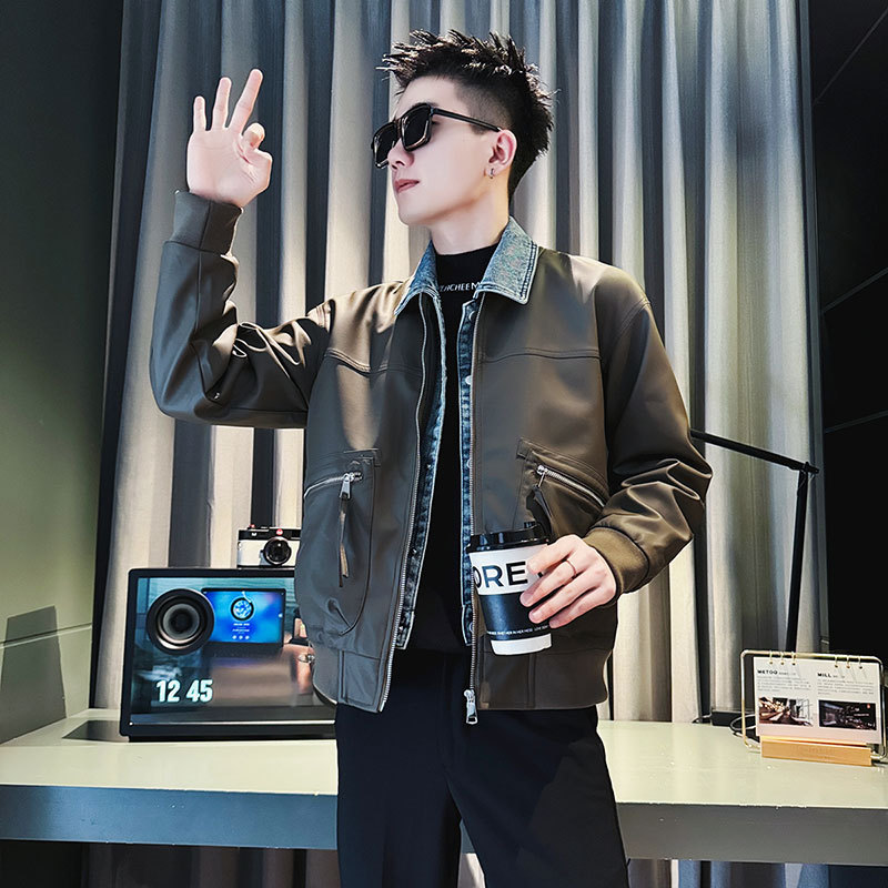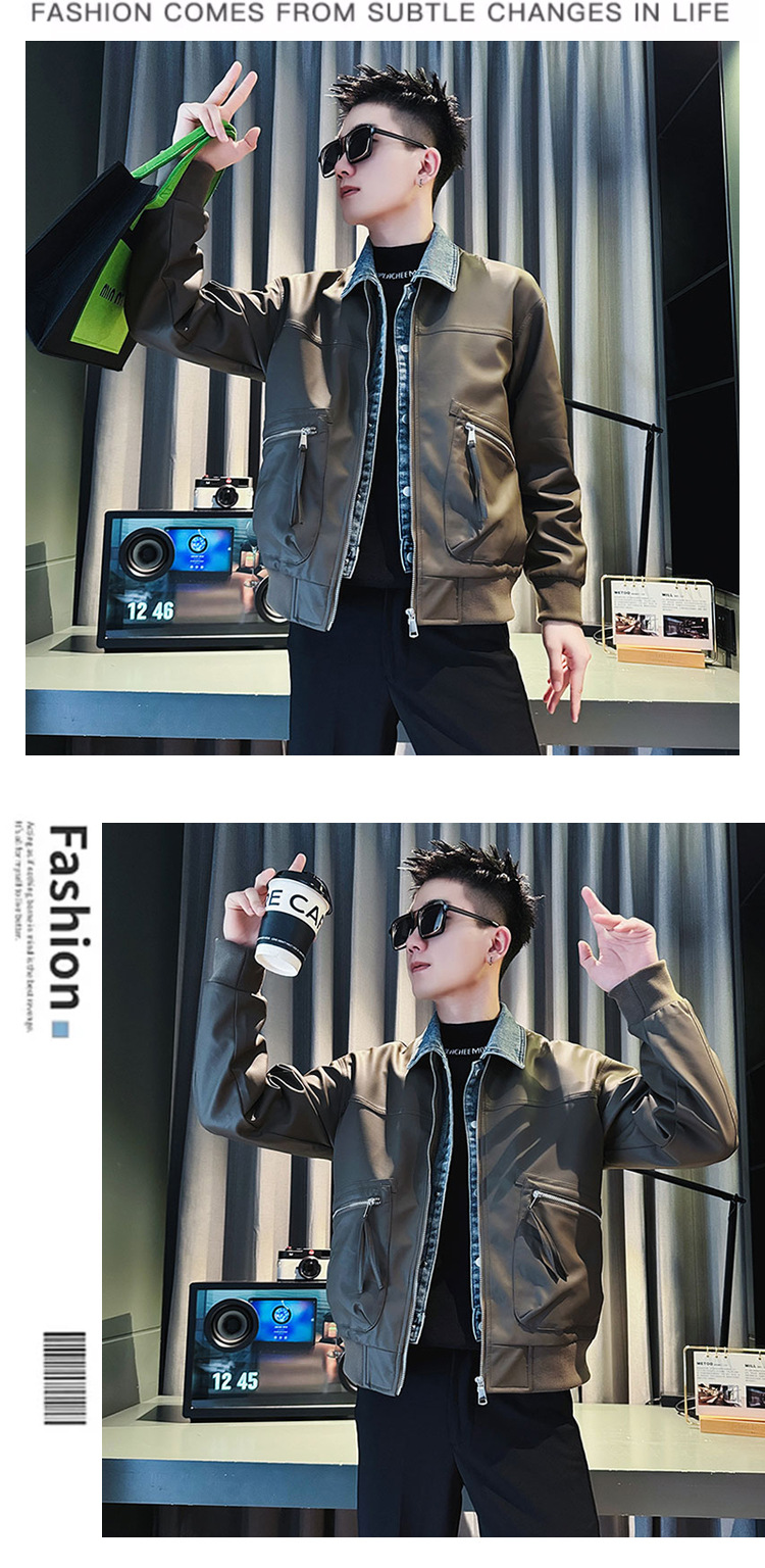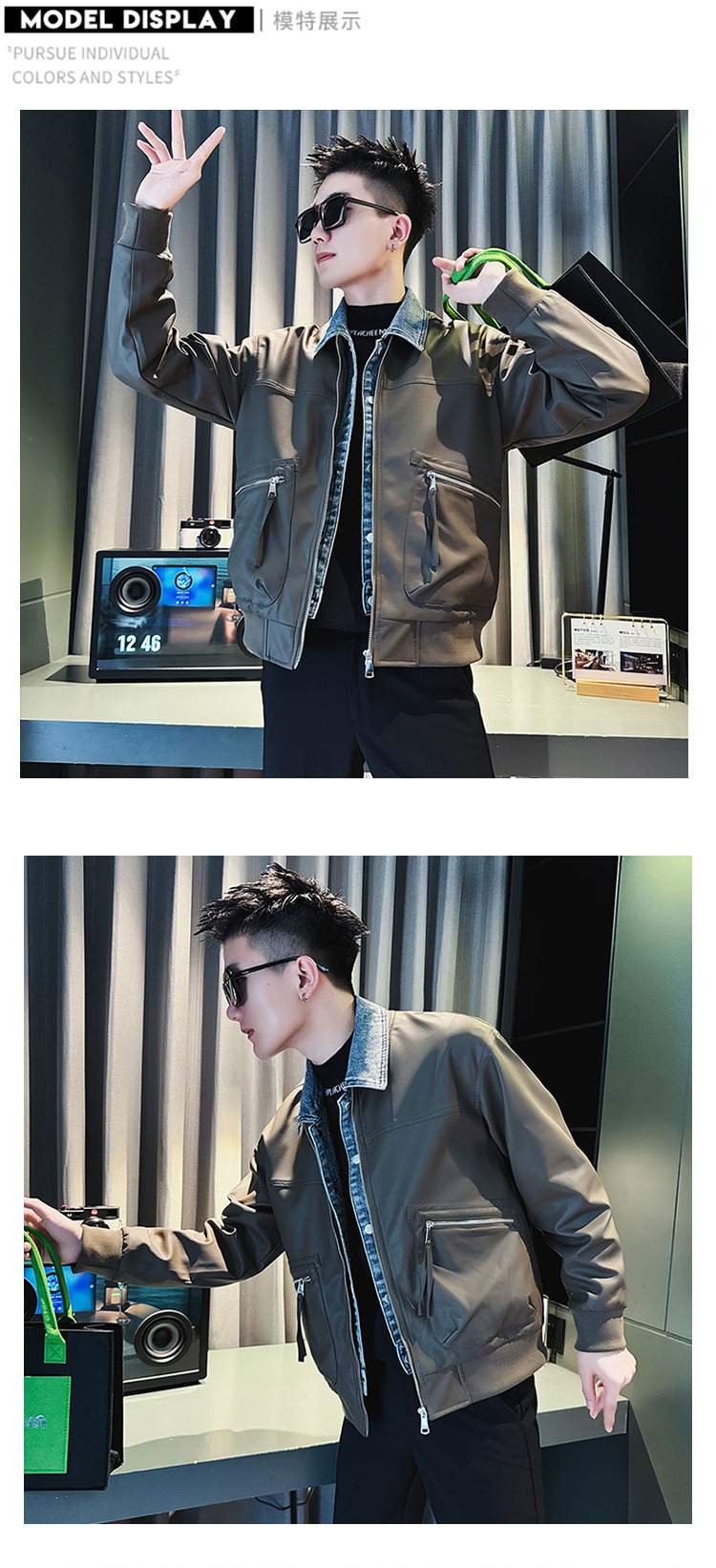 Осенний и зимний владелец социального парня поддельные две кожаные куртки куртка хаки 2