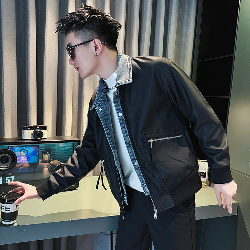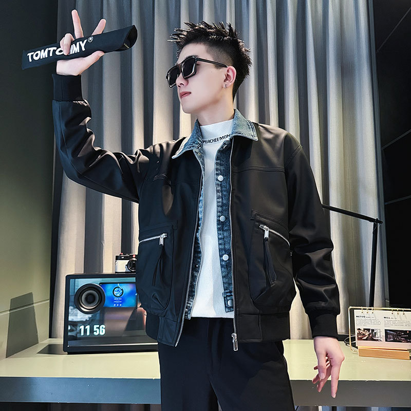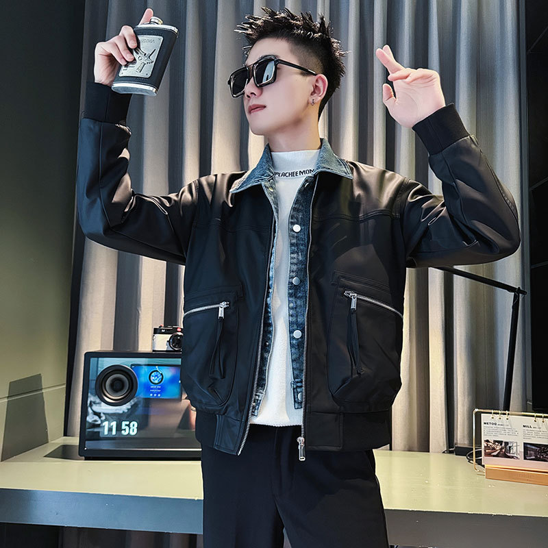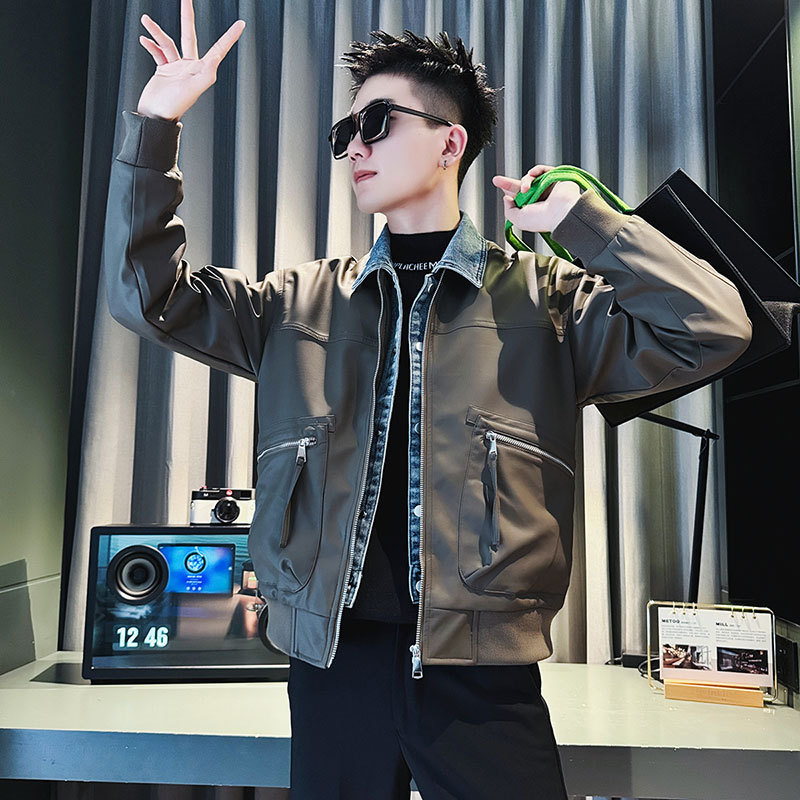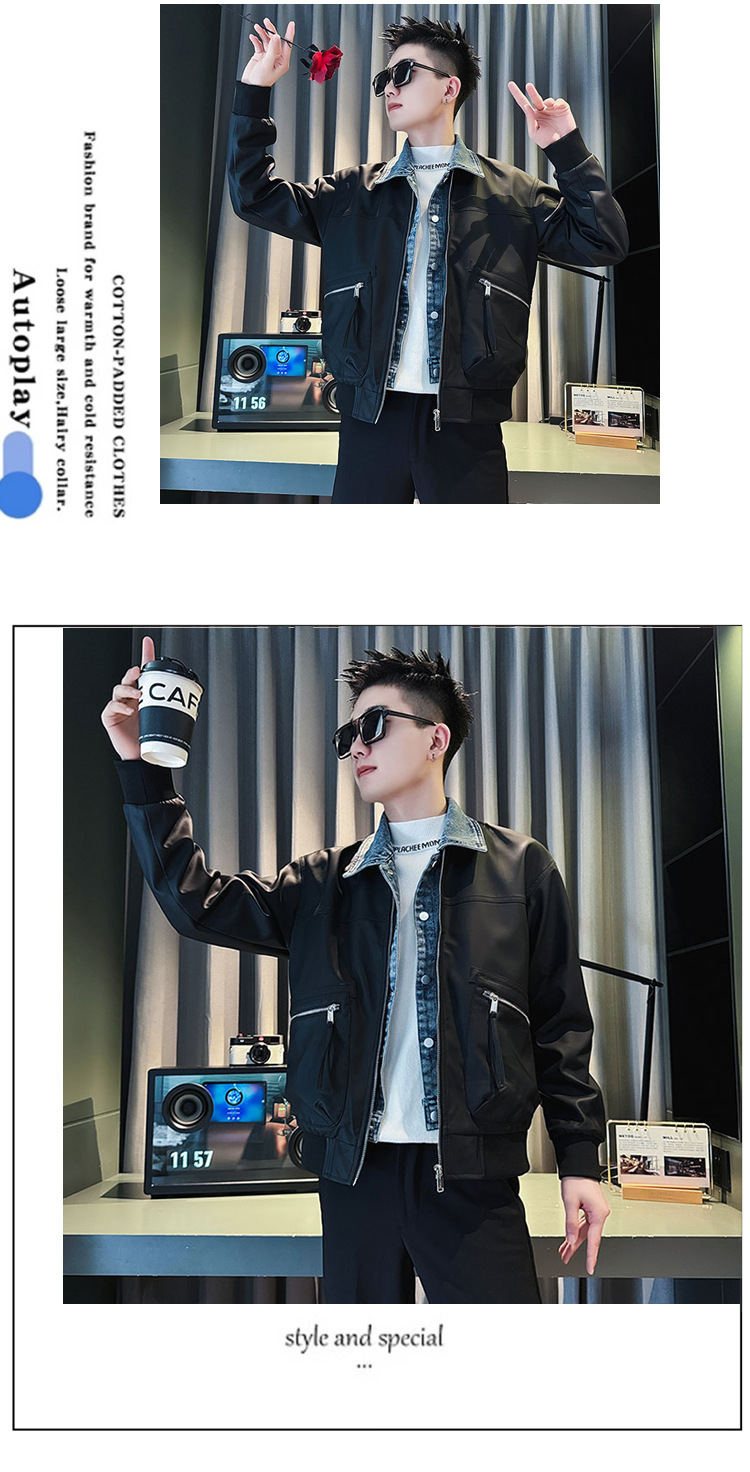 Осенний и зимний владелец социального парня поддельные две кожаные куртки куртка хаки 2