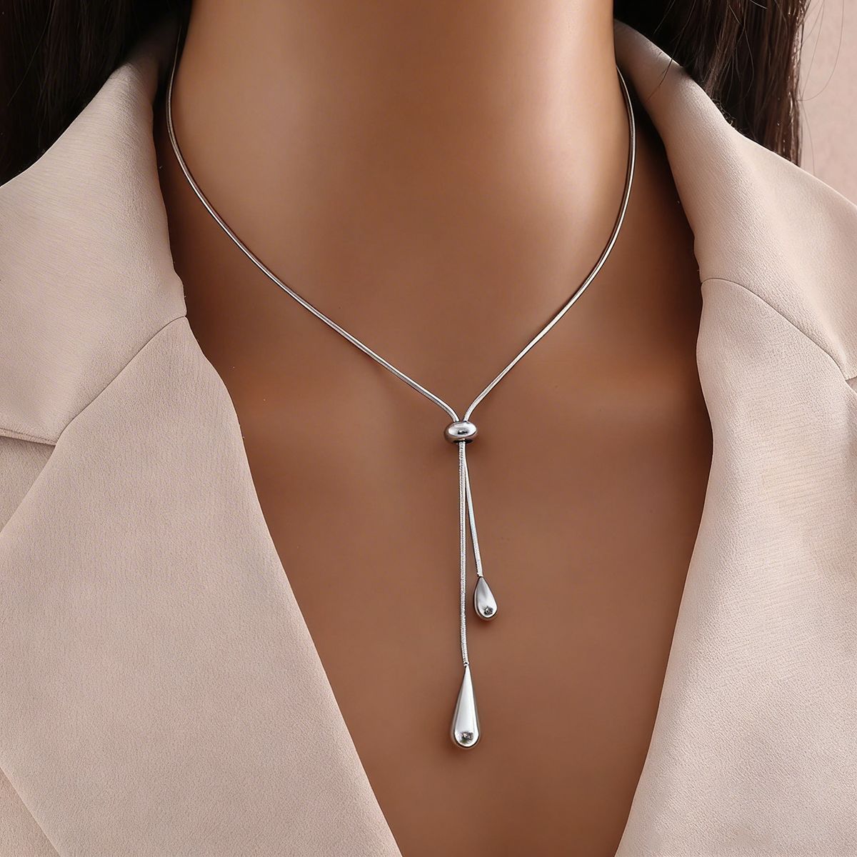 Модный минималистский бахрома высокого уровня холодный ветер позолоченный капли воды цепи длинный набор серьги-ожерелье