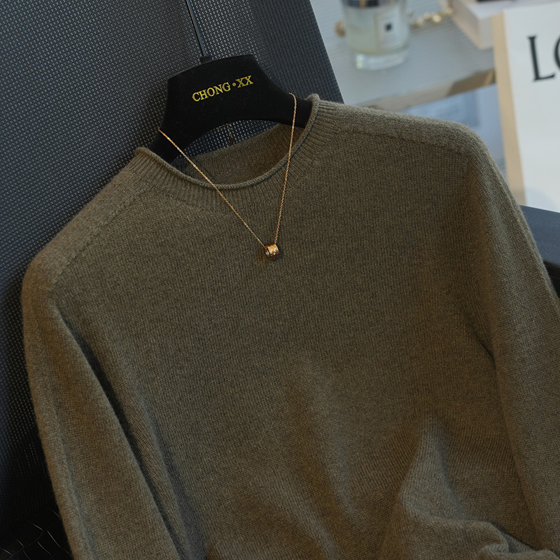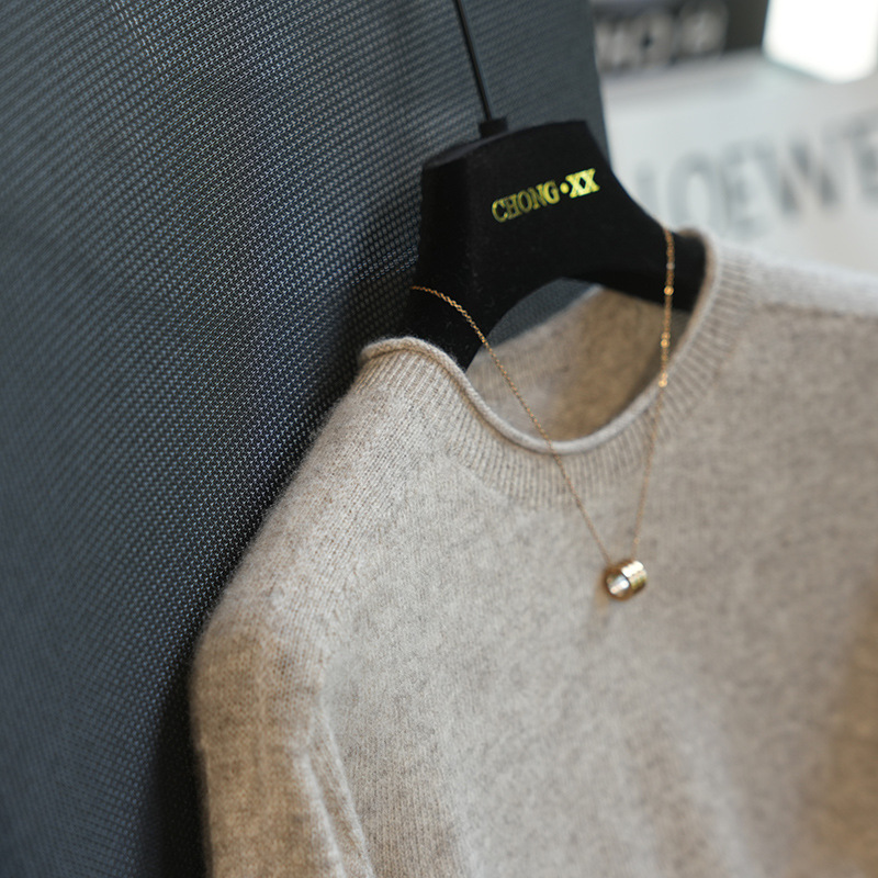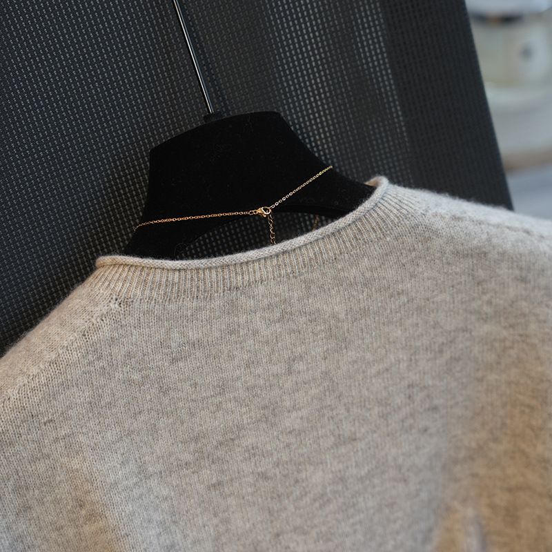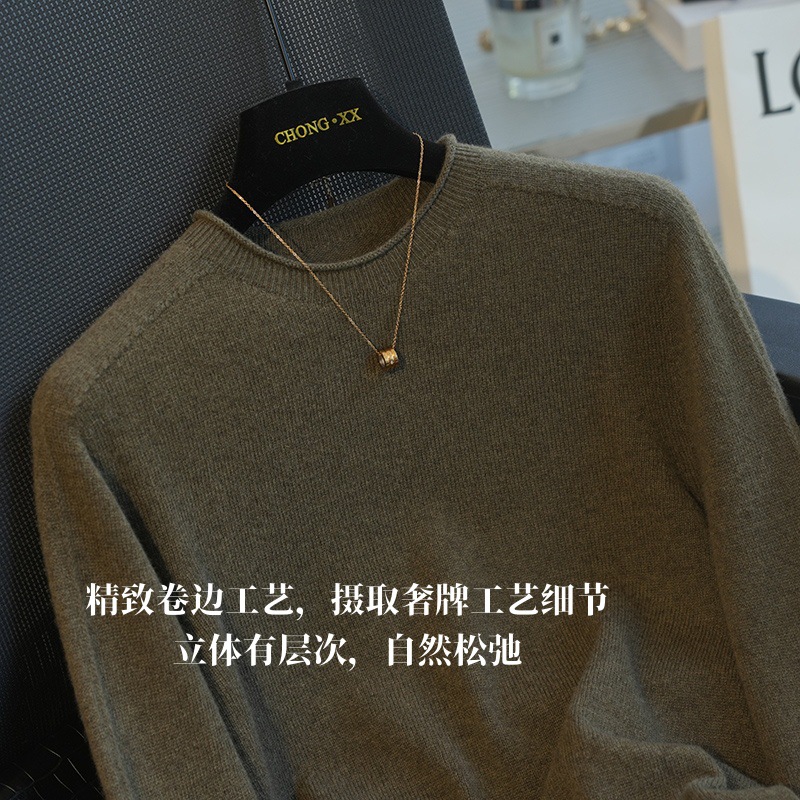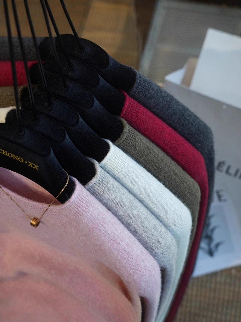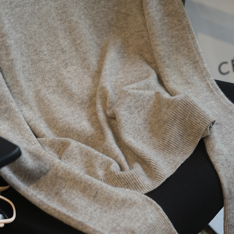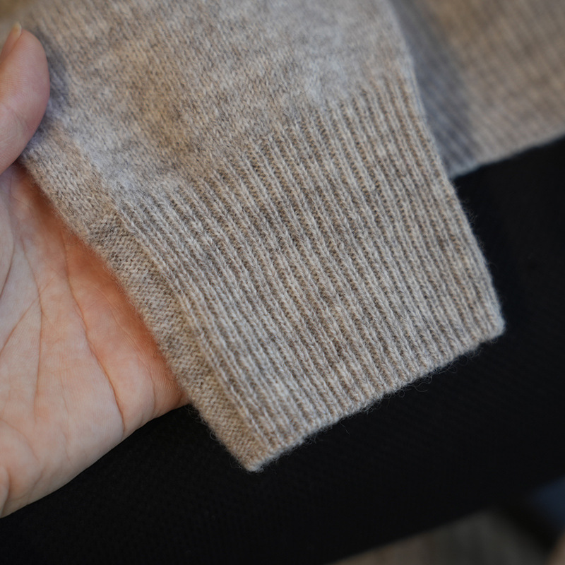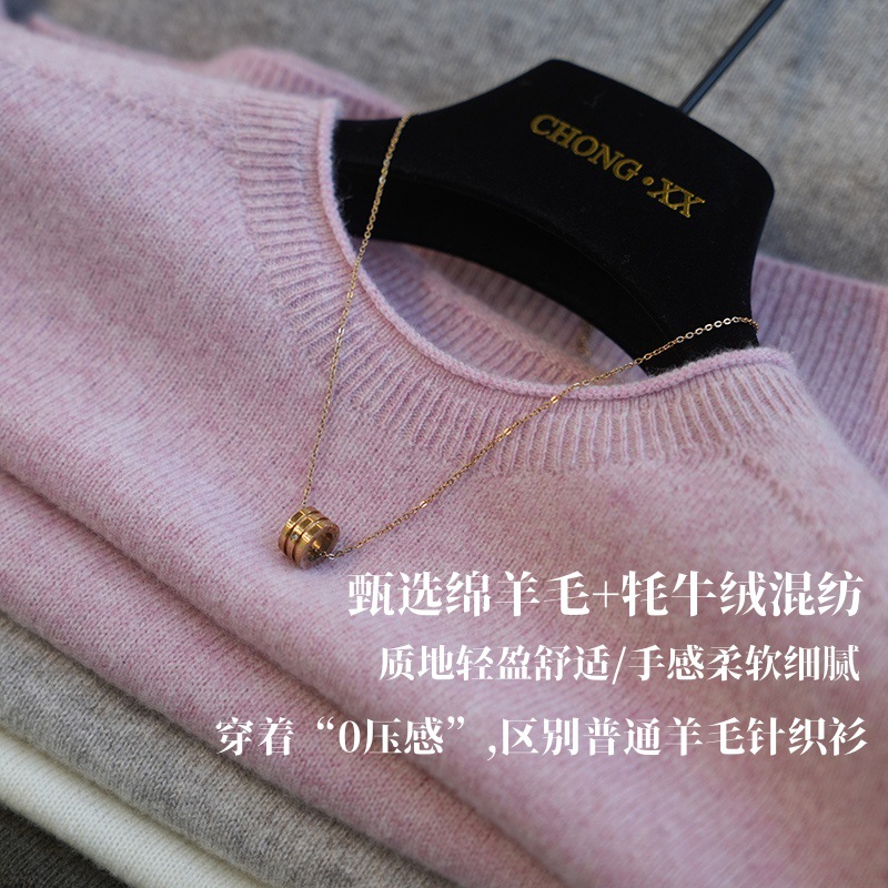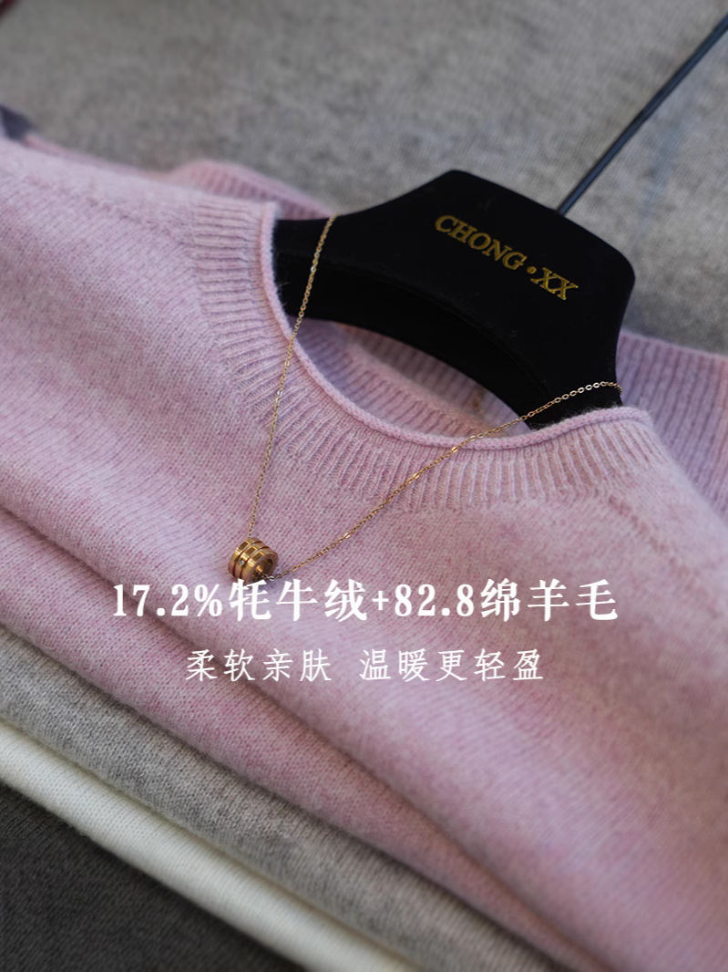 绵羊毛+牦牛绒卷边圆领针织开衫
