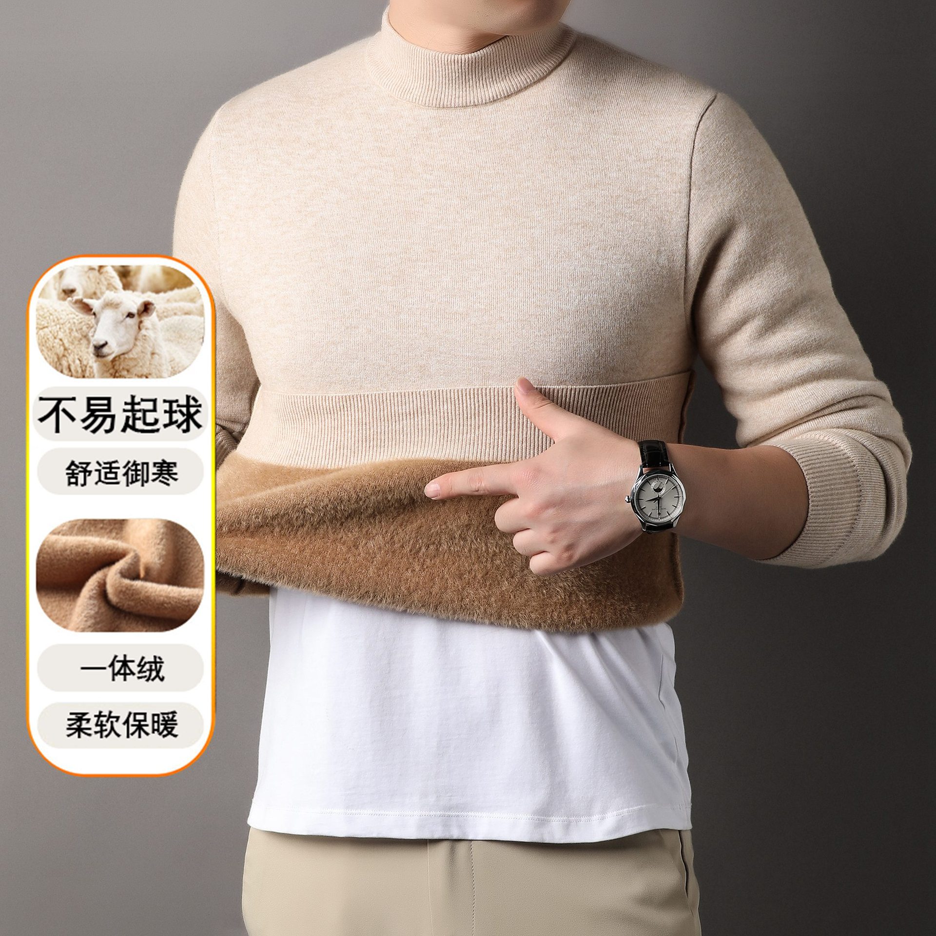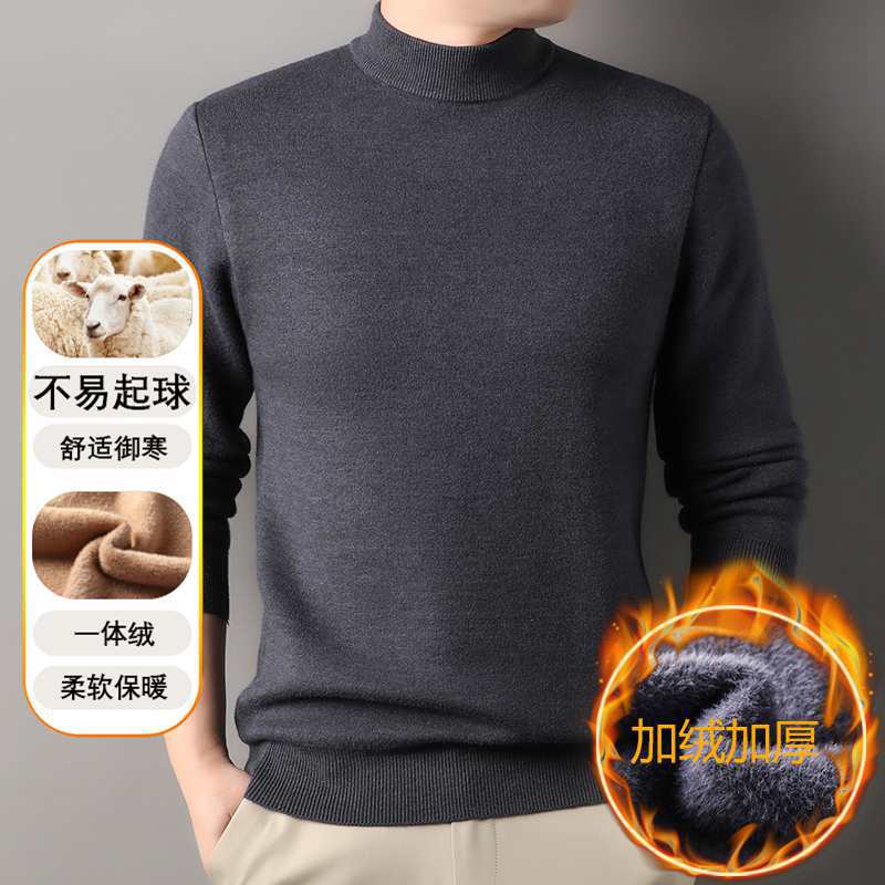 [Шерстяной флис] Мужской свитер с половинным воротом и толстым плюшем осенний и зимний свитер свитер мужской свитер