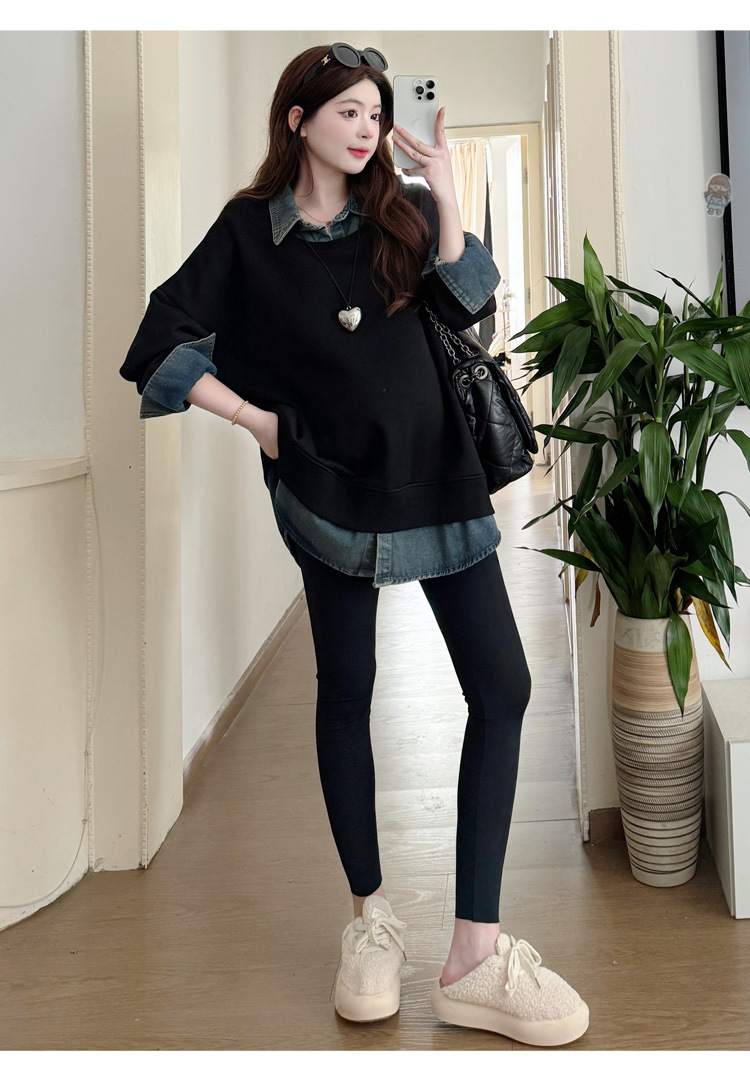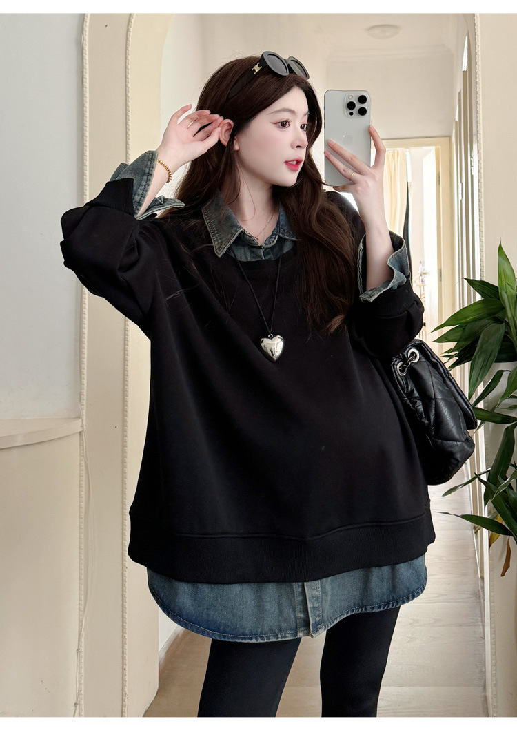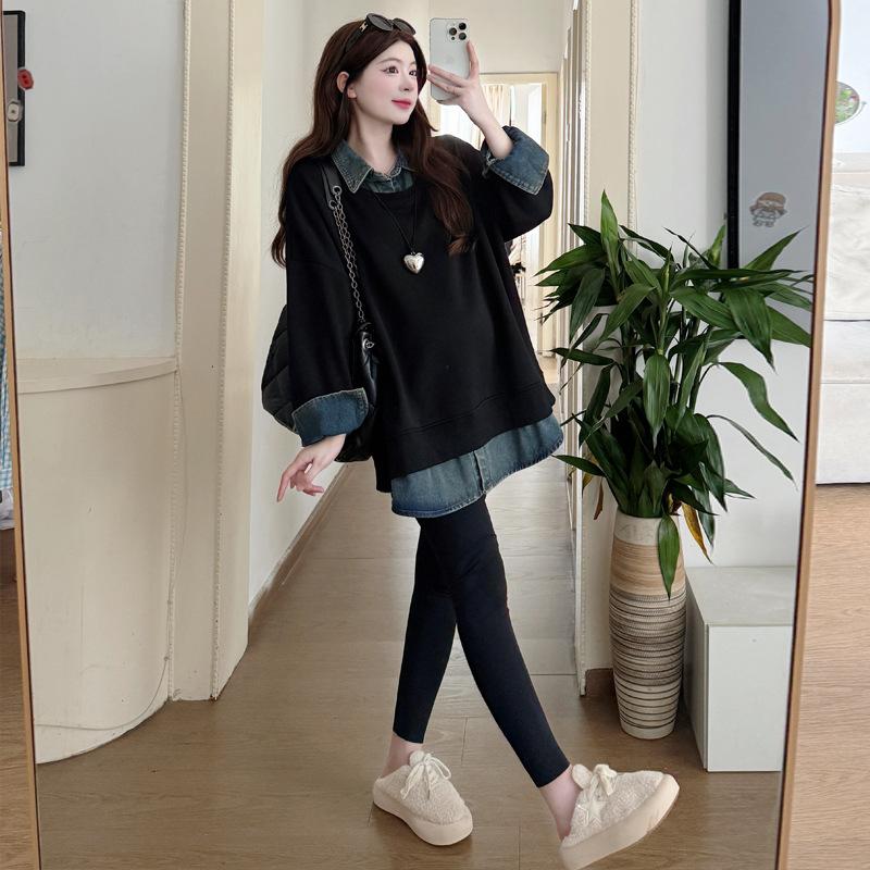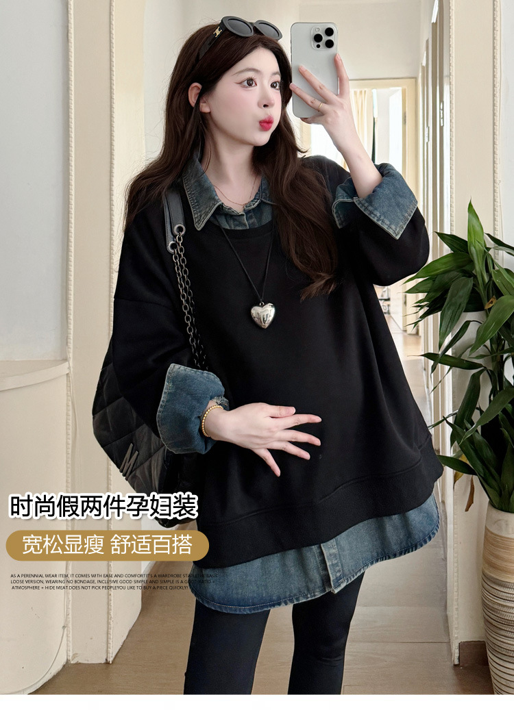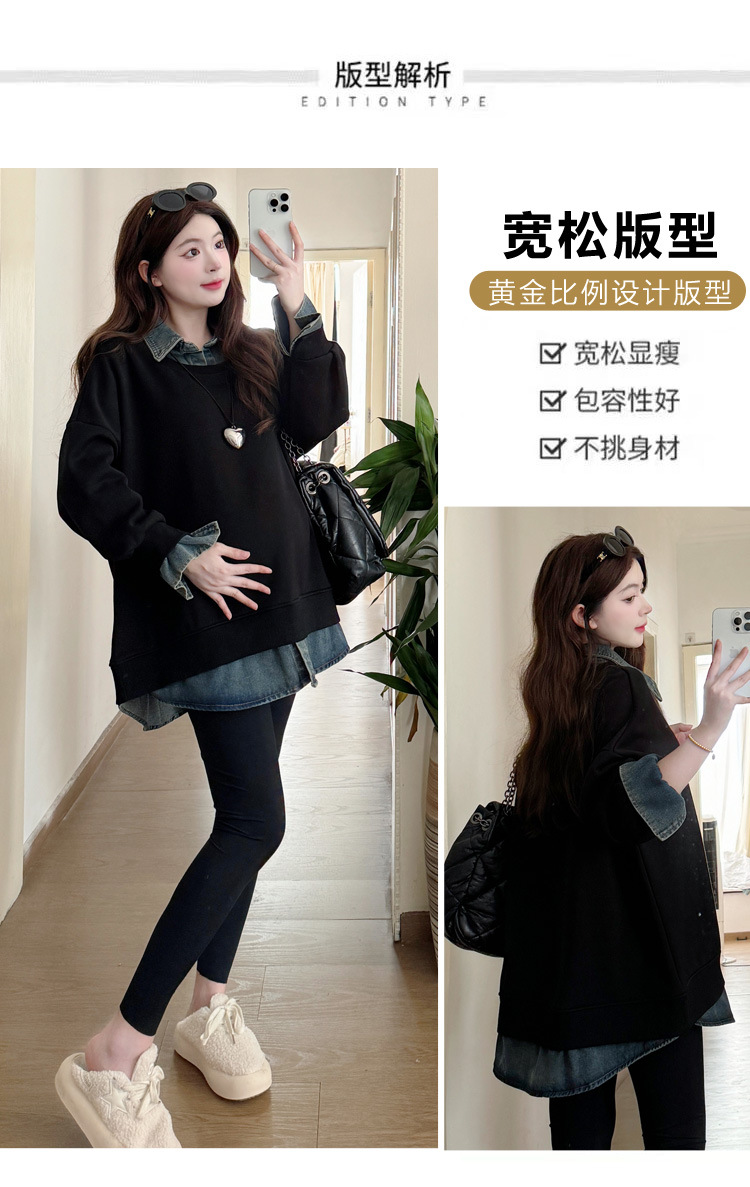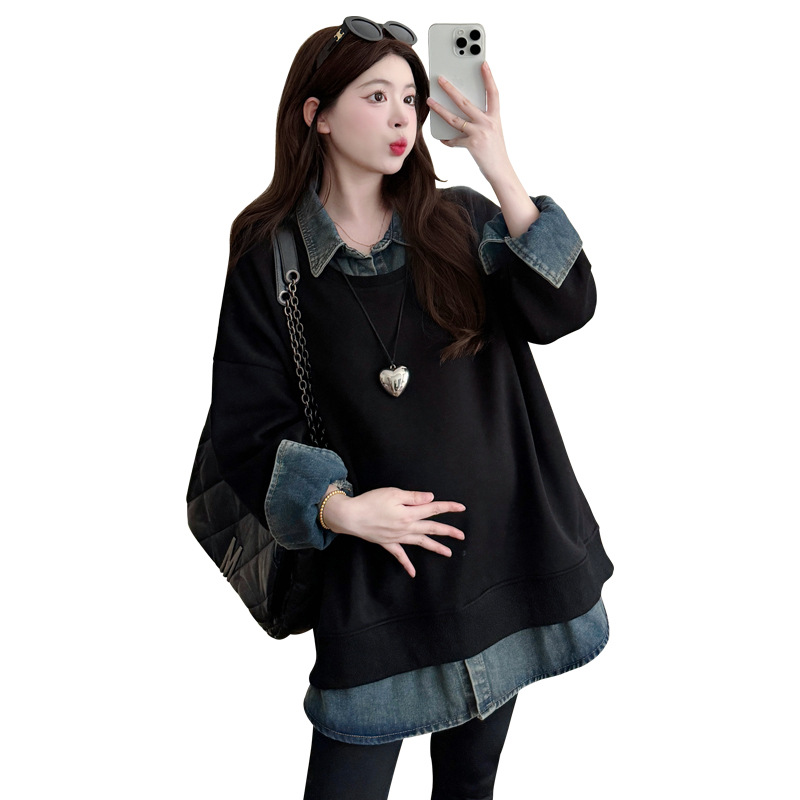 2024 новый осенний и зимний сращивание беременных женщин поддельные две рубашки больших размеров воротник для беременных толстый